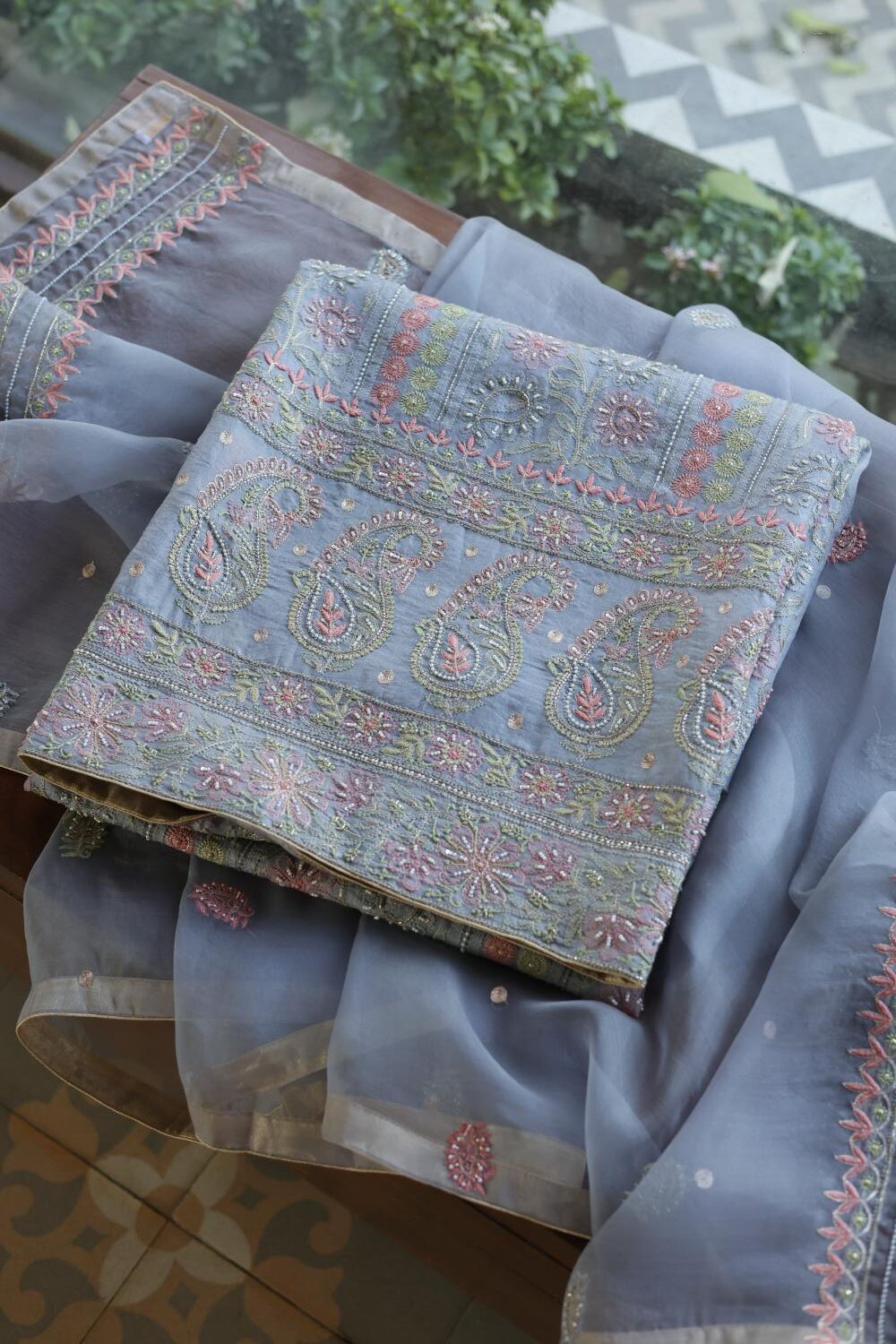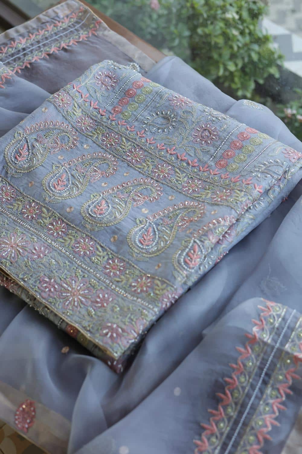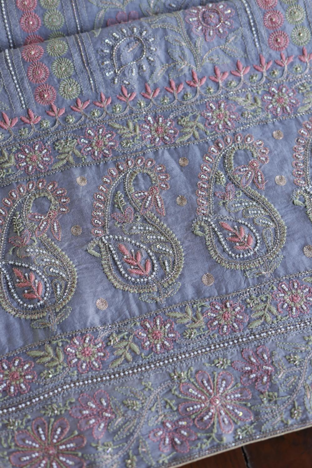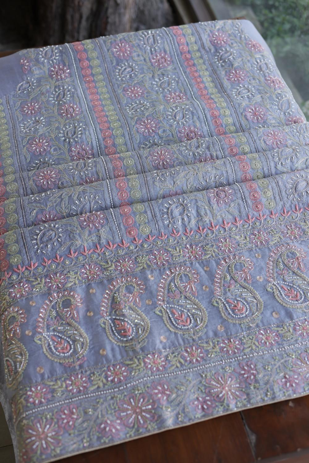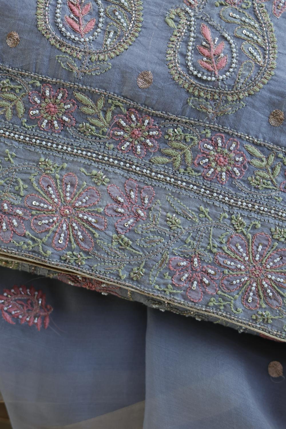 Organza's in our pastel shades are a dreamy affair done with intricate dual tone Chikankari embroideries and add on with our signature SAMAN's Ari and beads work.