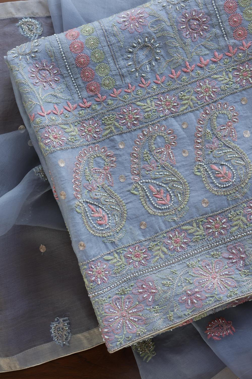 Blue Noor Banarasi Organza Chikankari Unstitched Fabrics