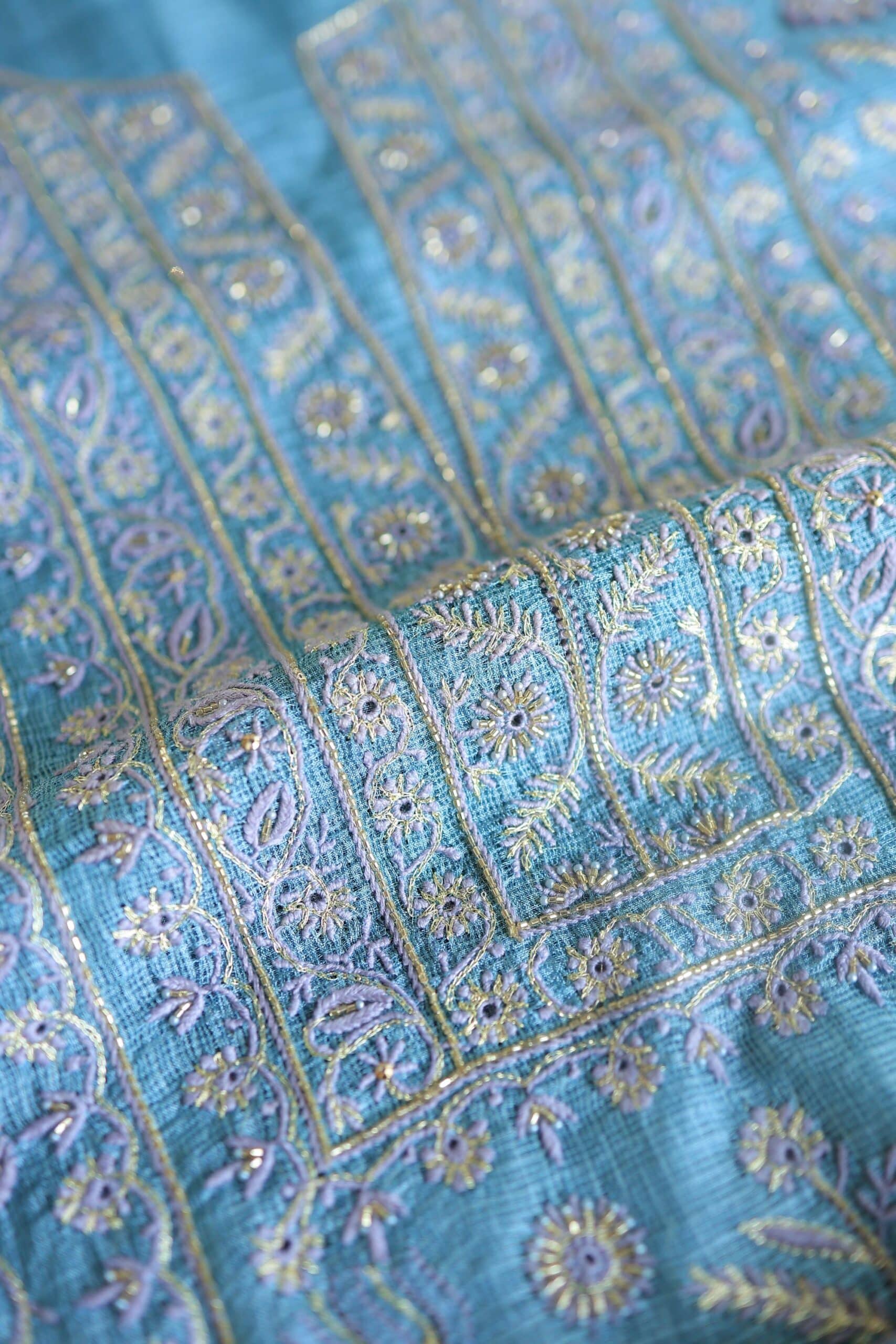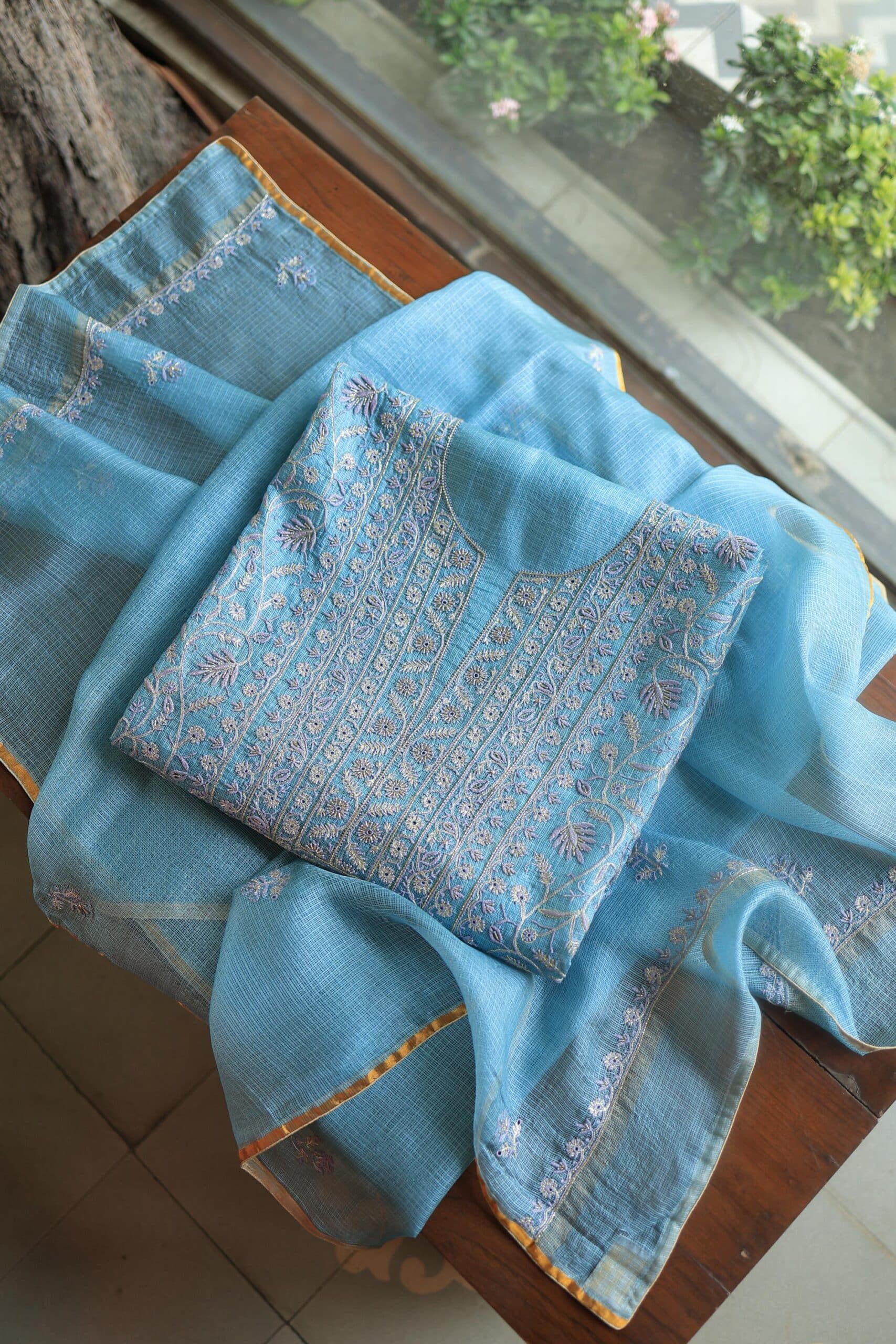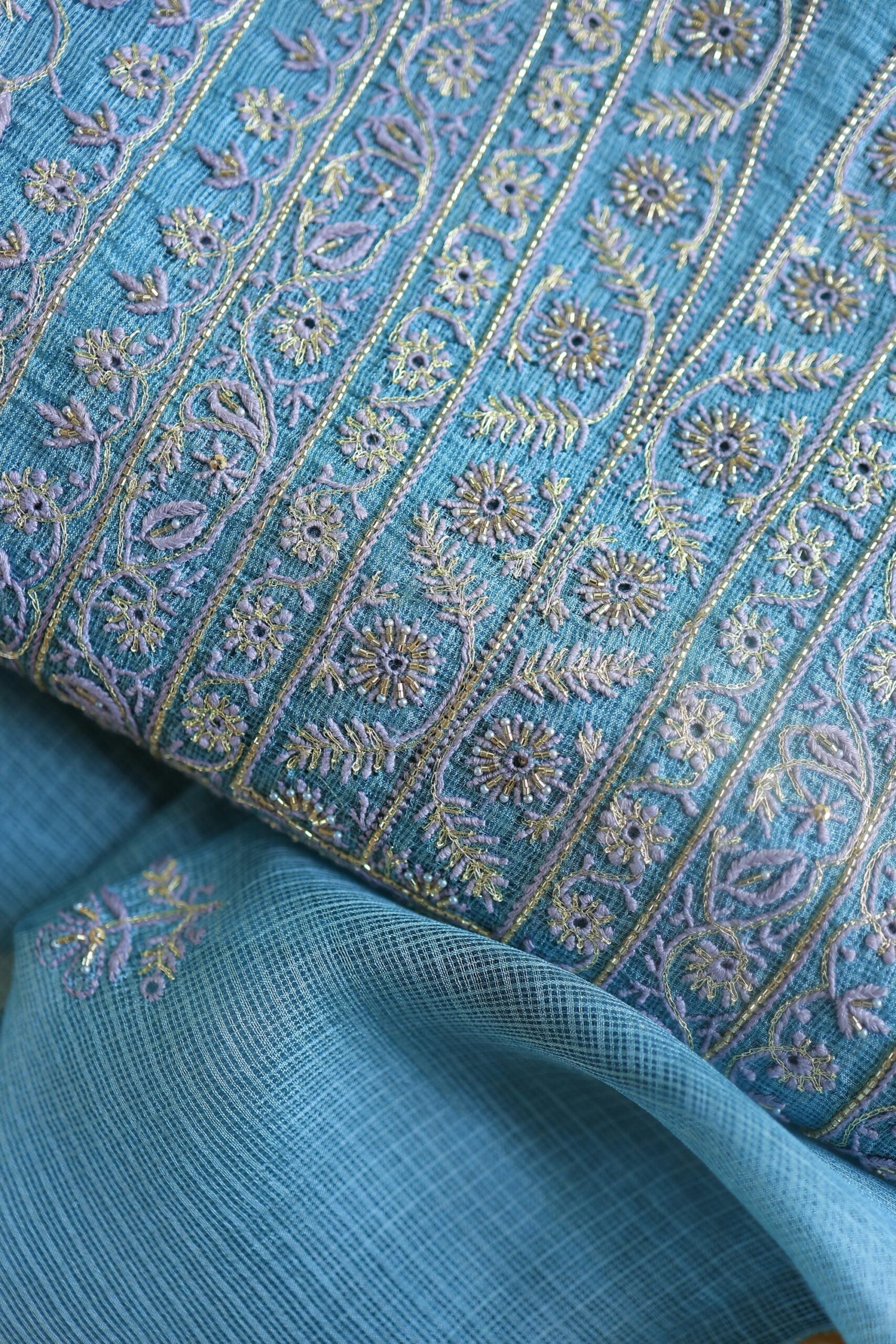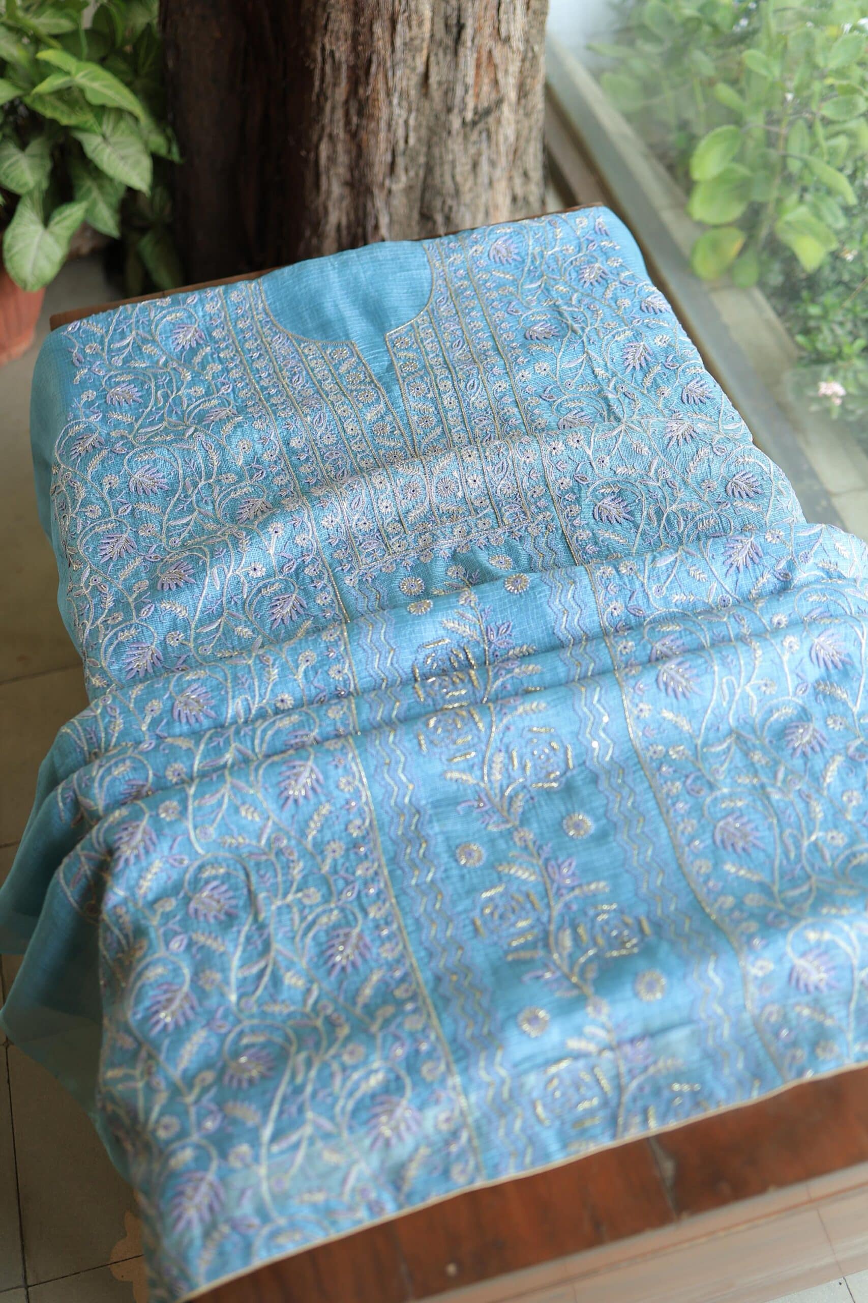 Blue Rasm Kota Tussar Chikankari Unstitched Chikankari Fabrics