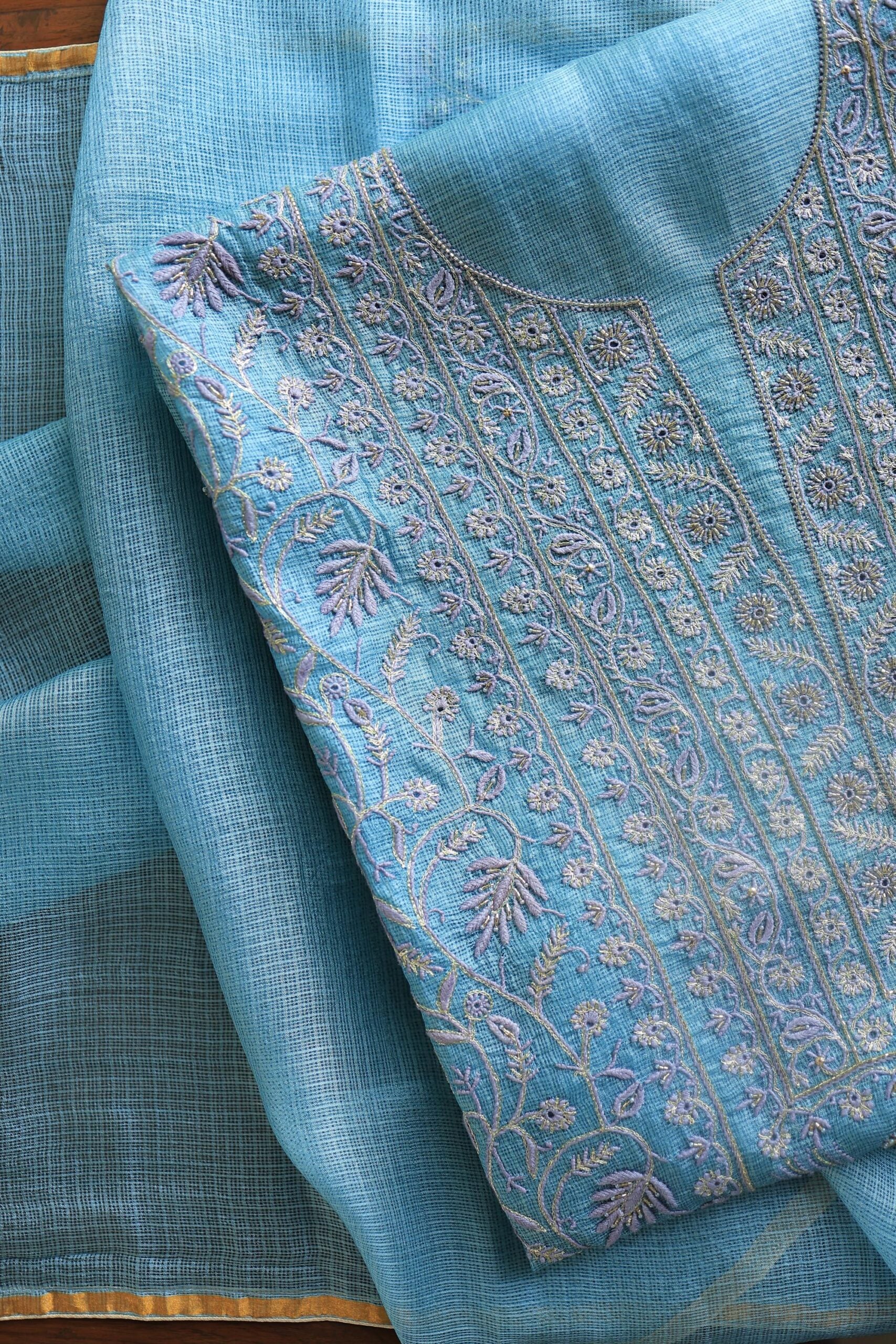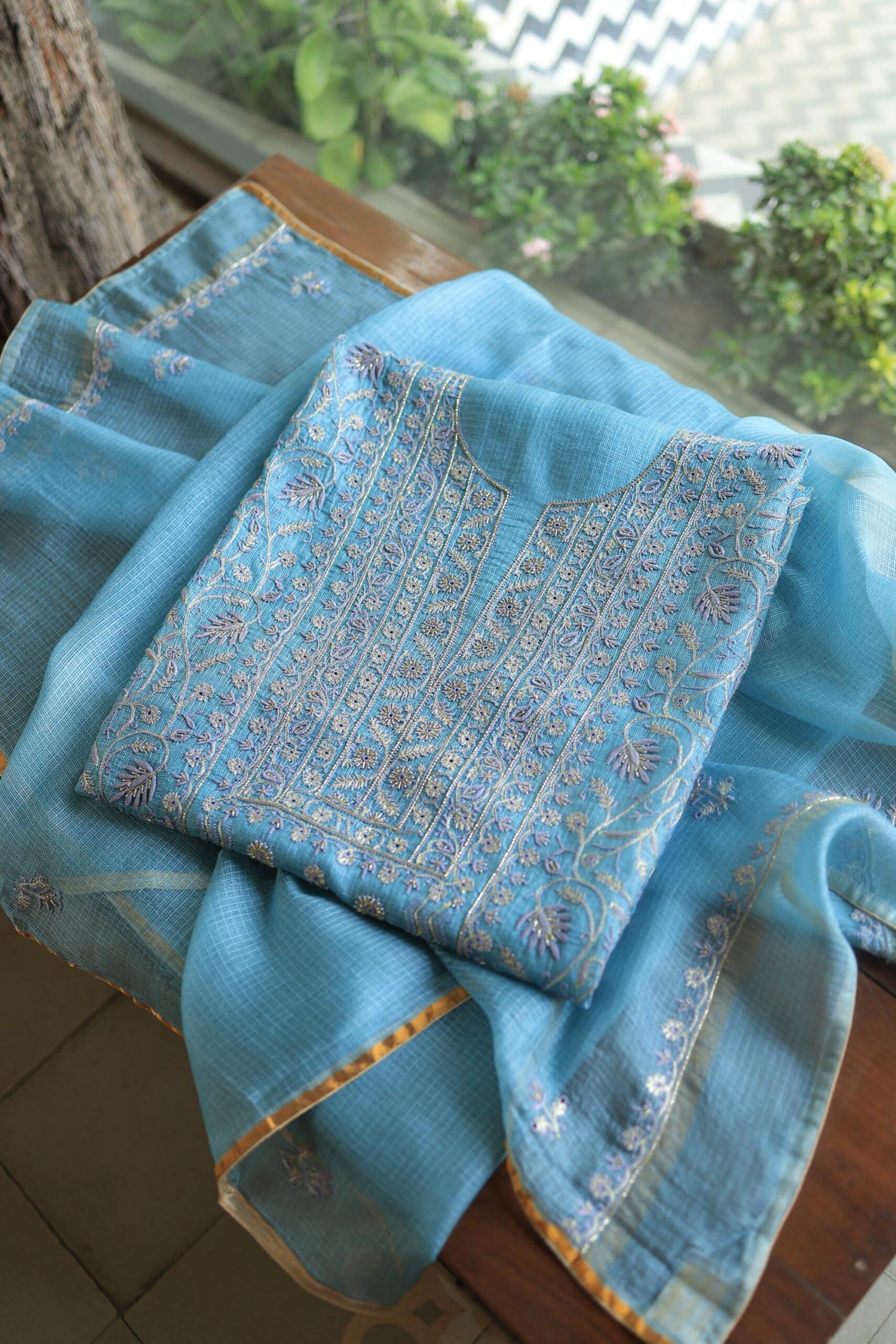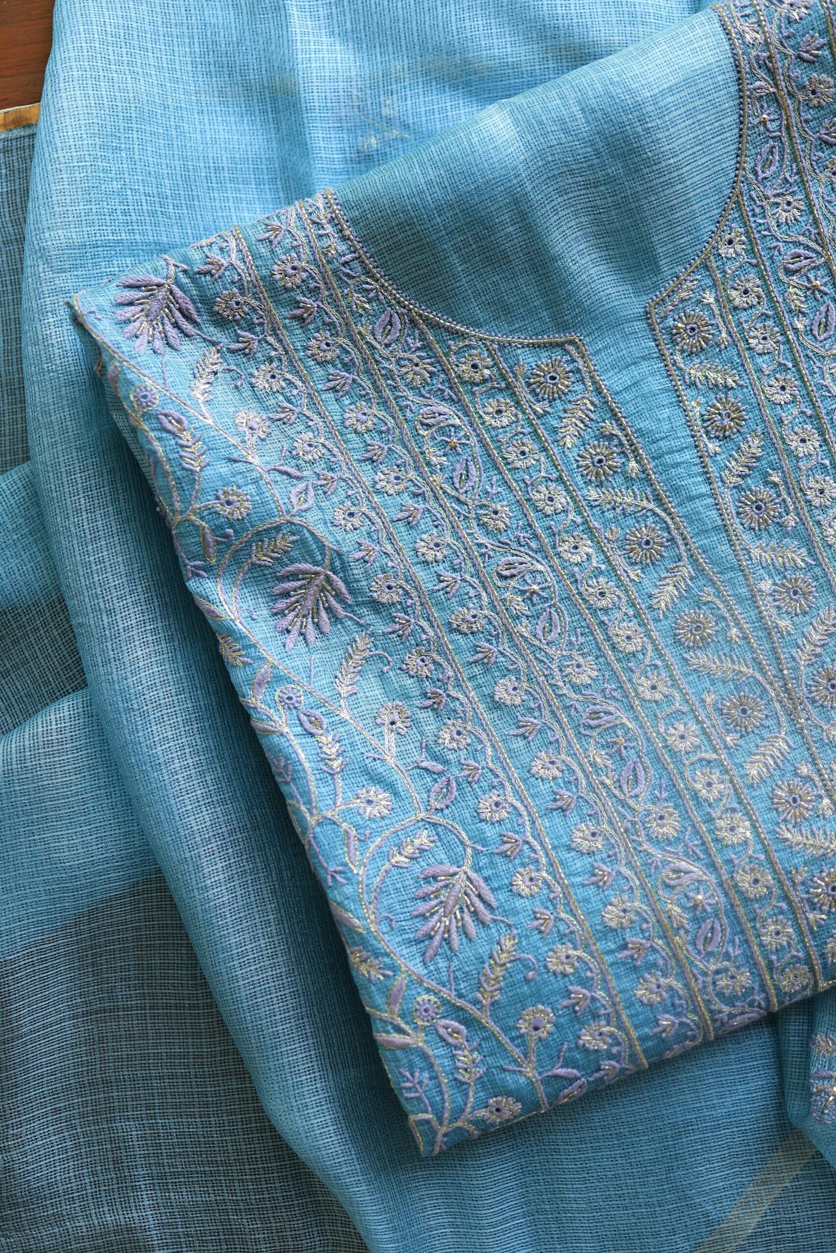 Blue Rasm Kota Tussar Chikankari Unstitched Chikankari Fabrics