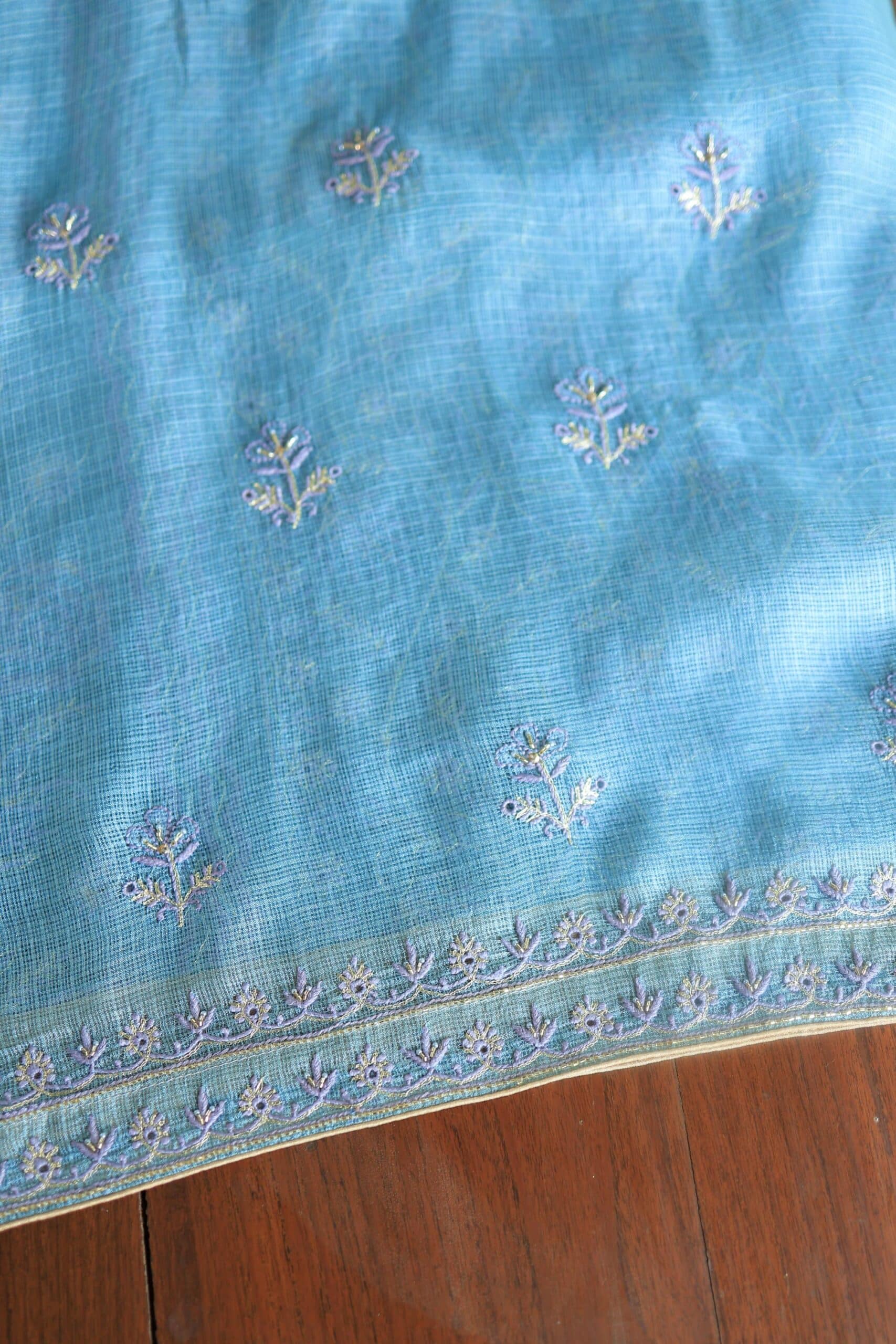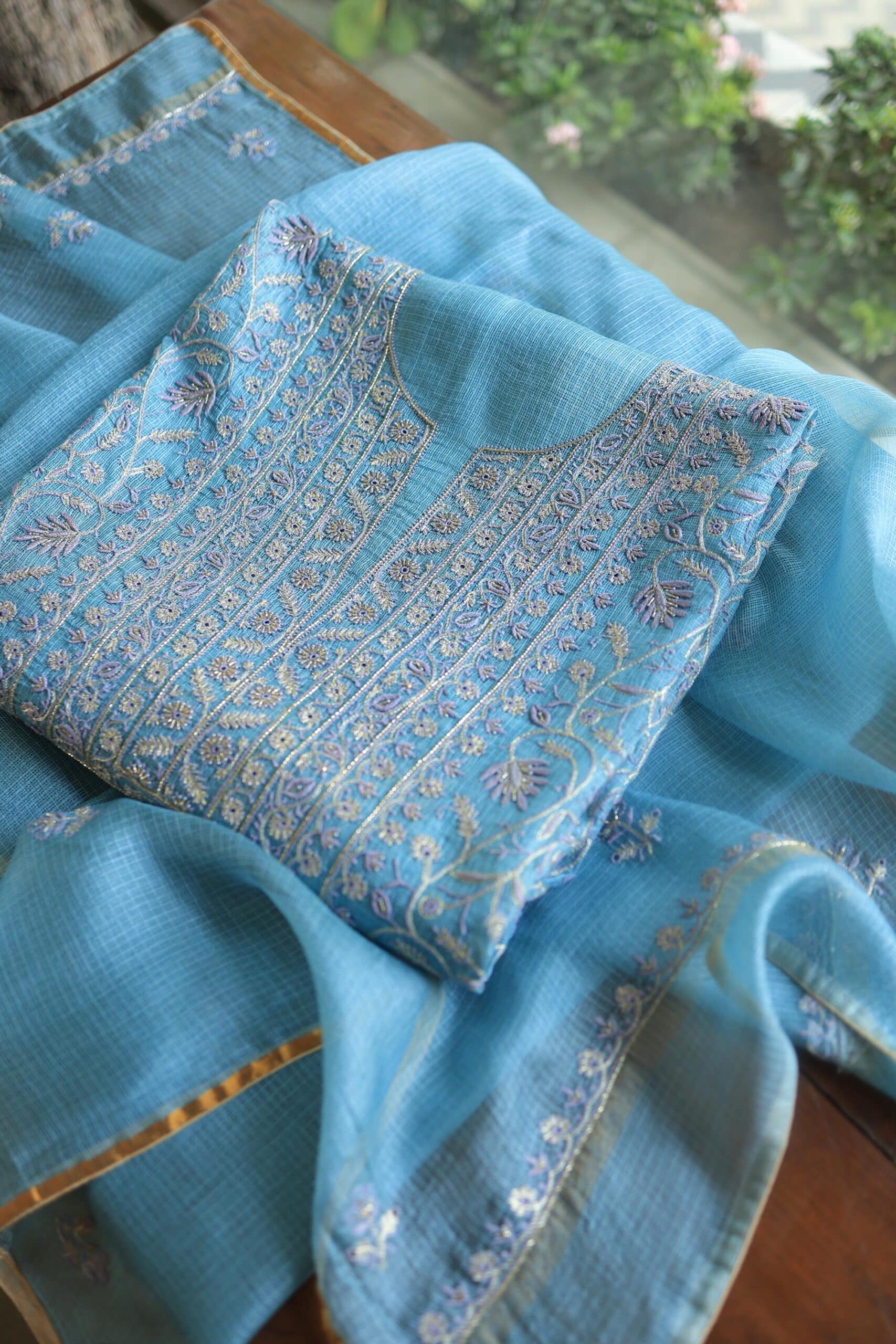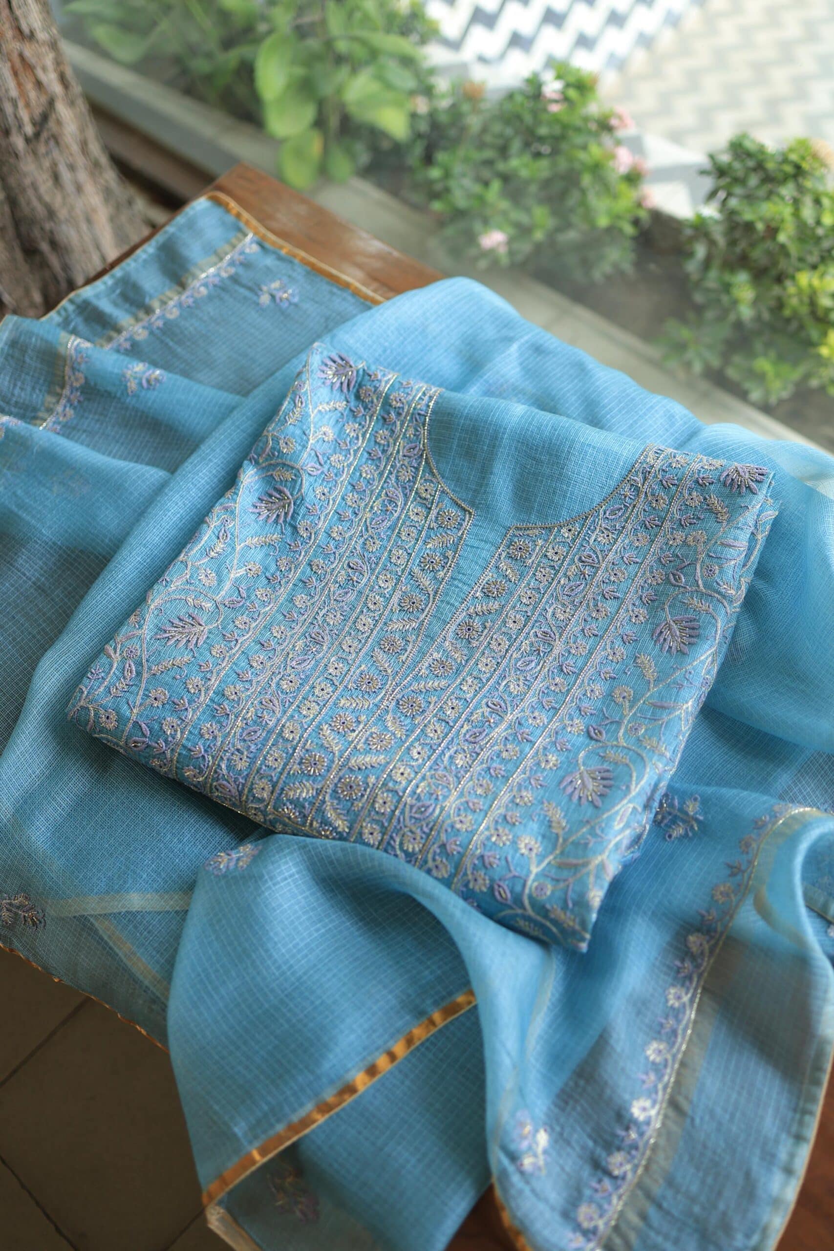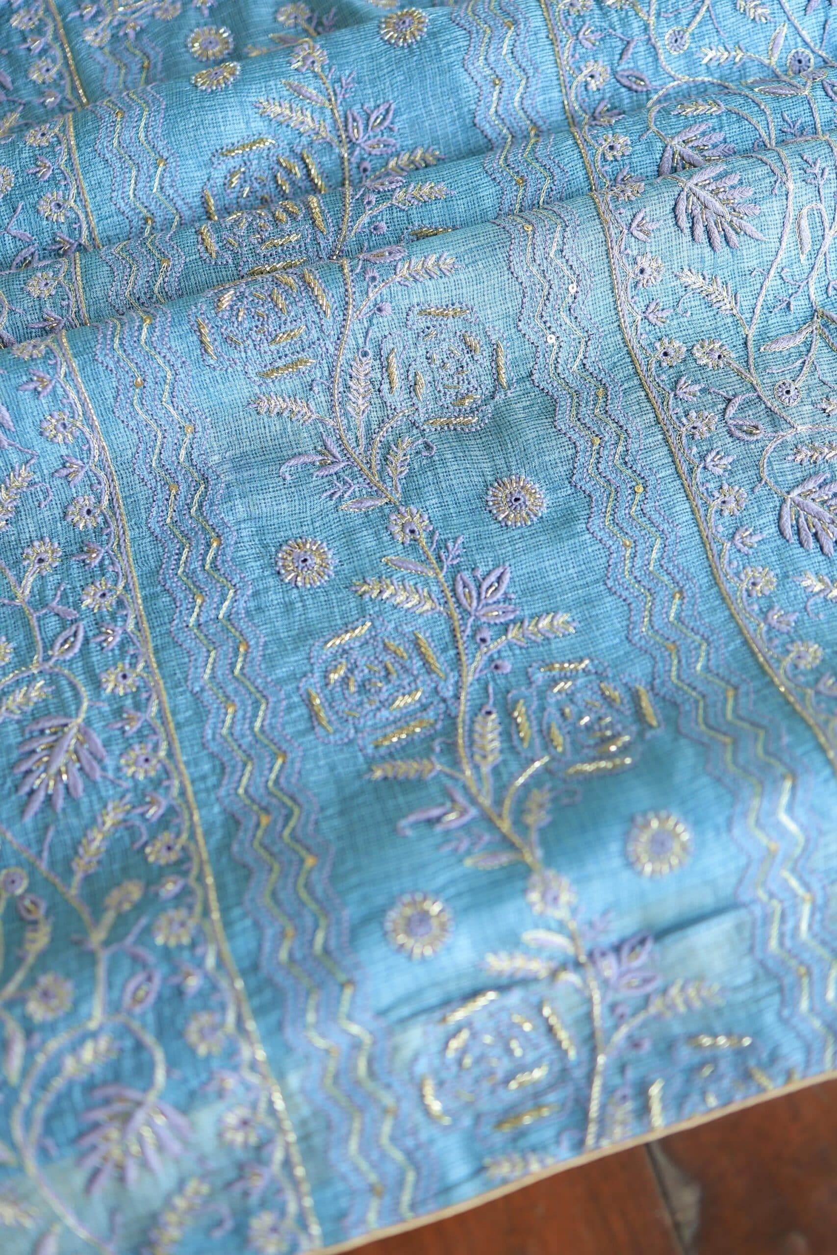 Blue Rasm Kota Tussar Chikankari Unstitched Chikankari Fabrics