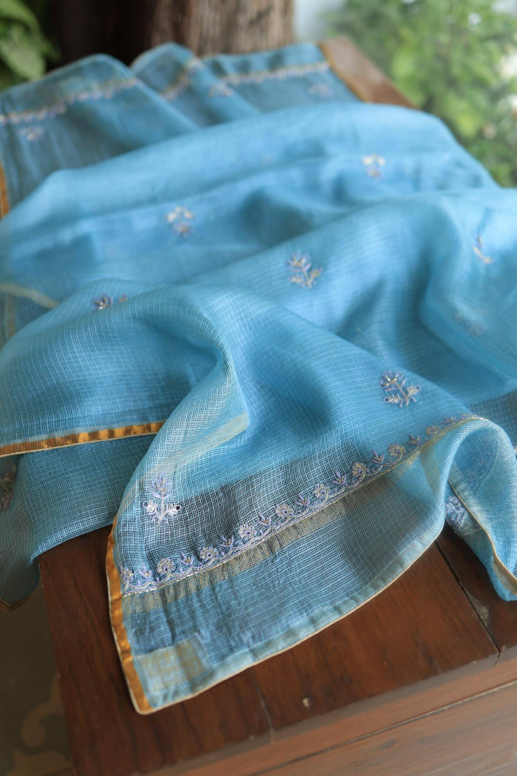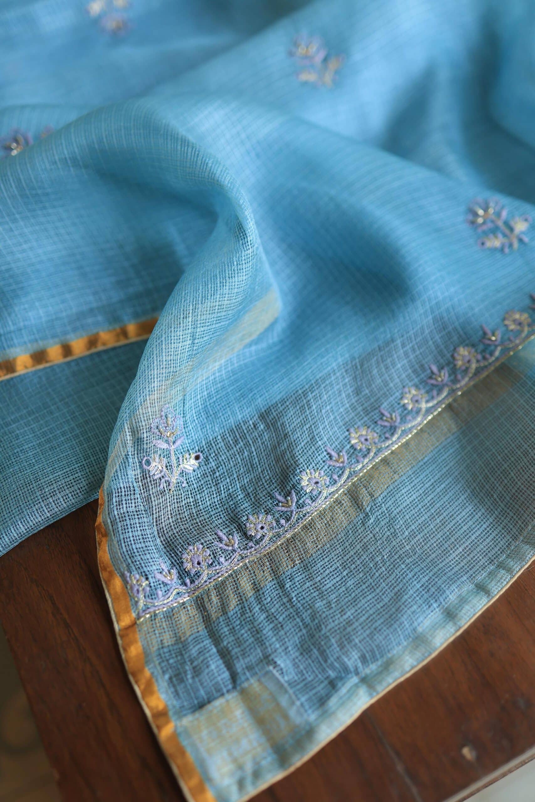 This beautiful kurta and dupatta set in a soft blue shade is made from fine Silk Kota fabric—light, airy, and perfect for any time of day. What makes it truly special is the delicate hand-done Chikankari embroidery, something not easily done on this fabric. At Saman, we’ve spent years perfecting this craft, and we’ve even added our signature pitta work to make it even more unique.