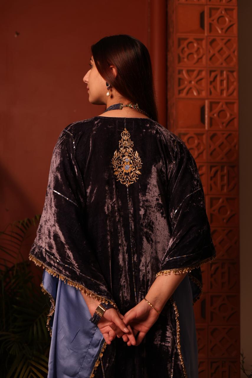Blue Shade | Silk Velvet Zardozi Kaftans