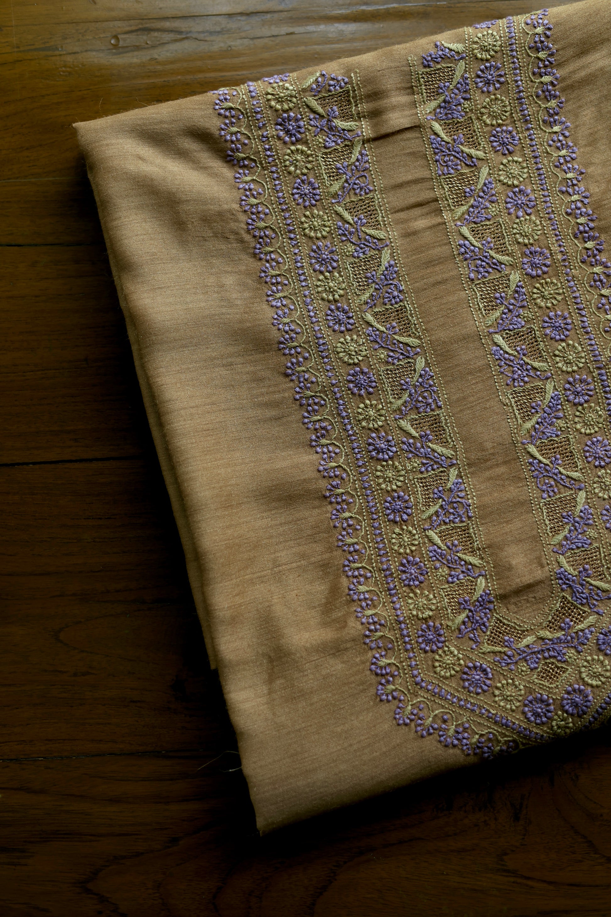 Brown & Lavender Shade Moonga Silk Chikankari Men’s Kurta Fabric