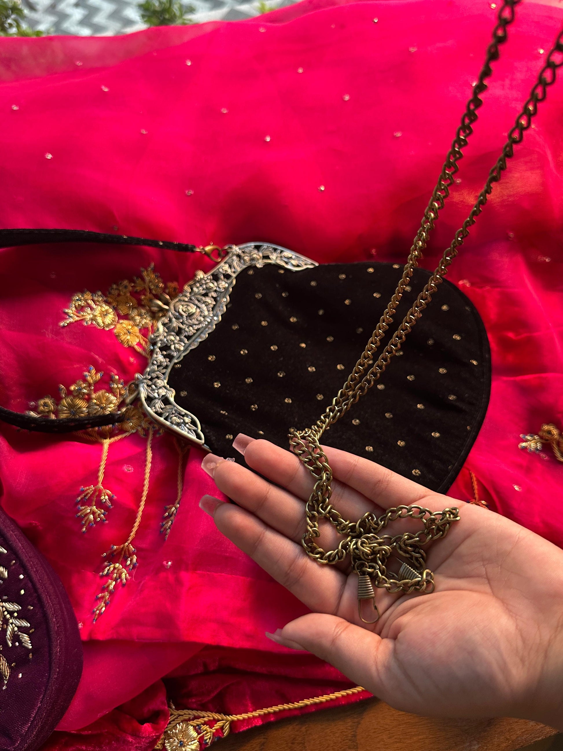 Burgundy Shade Velvet Ari Mukaish Zardosi Sling Bag