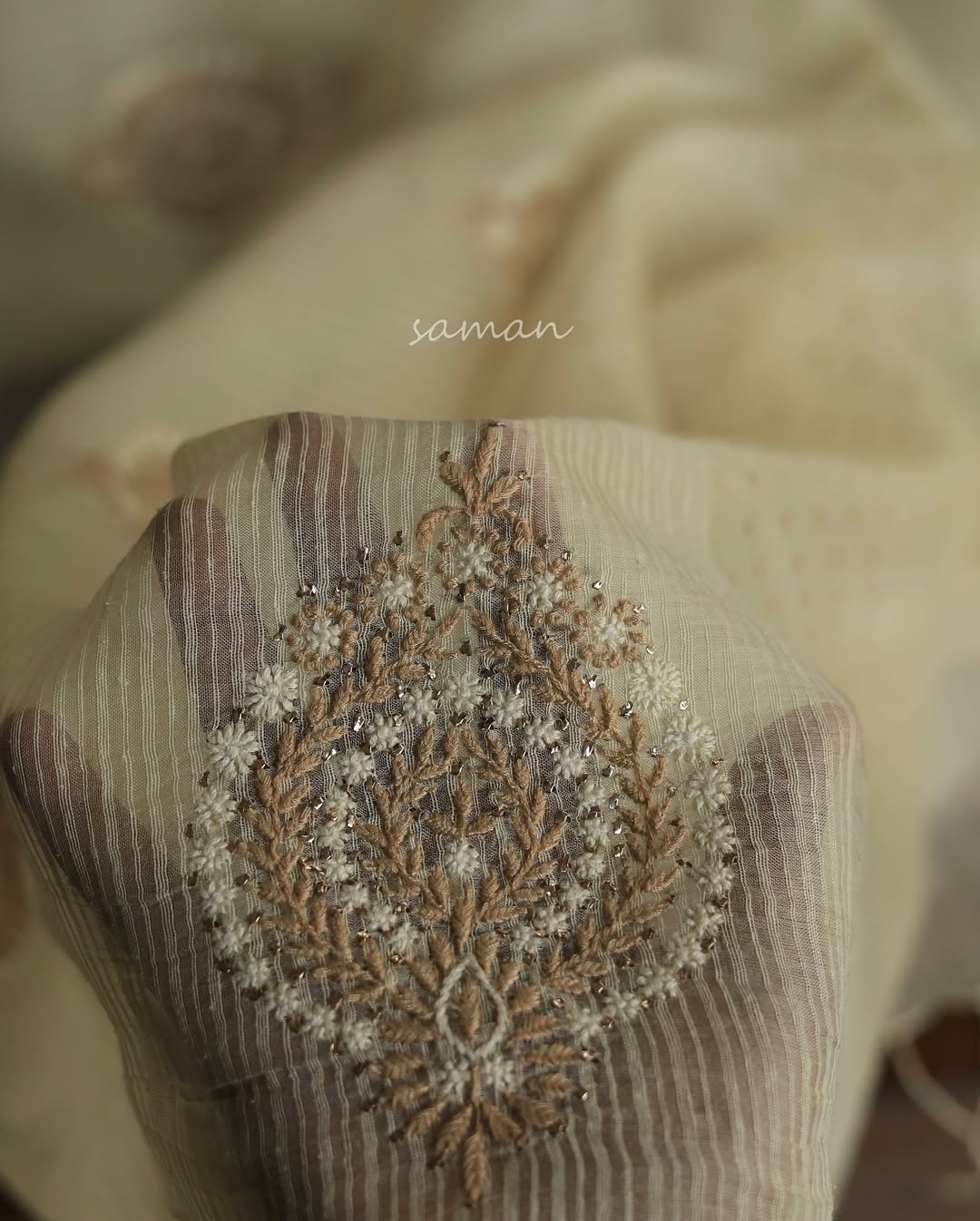 Each piece is crafted with intricate hand-embroidered Chikankari, featuring different traditional embellishments: