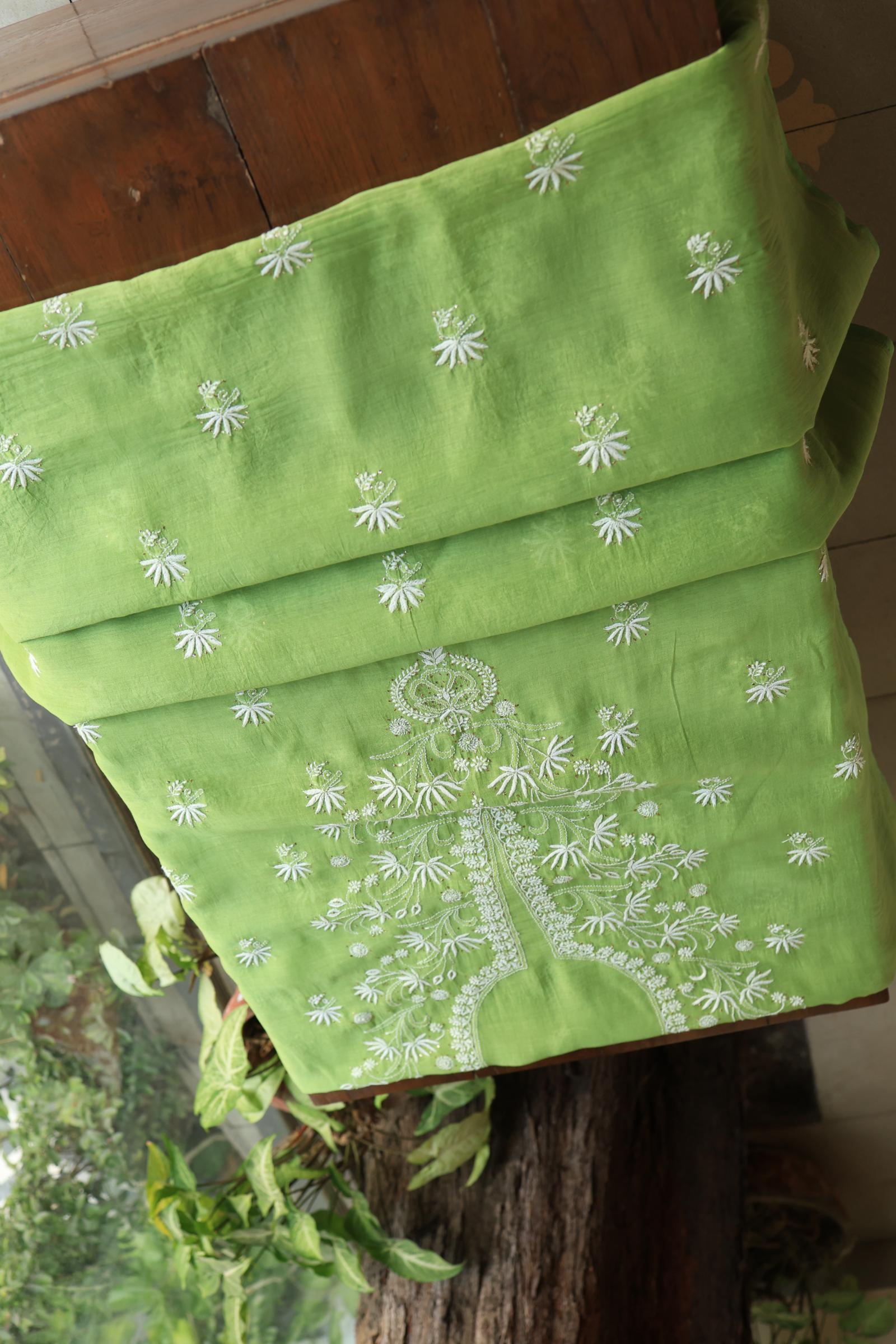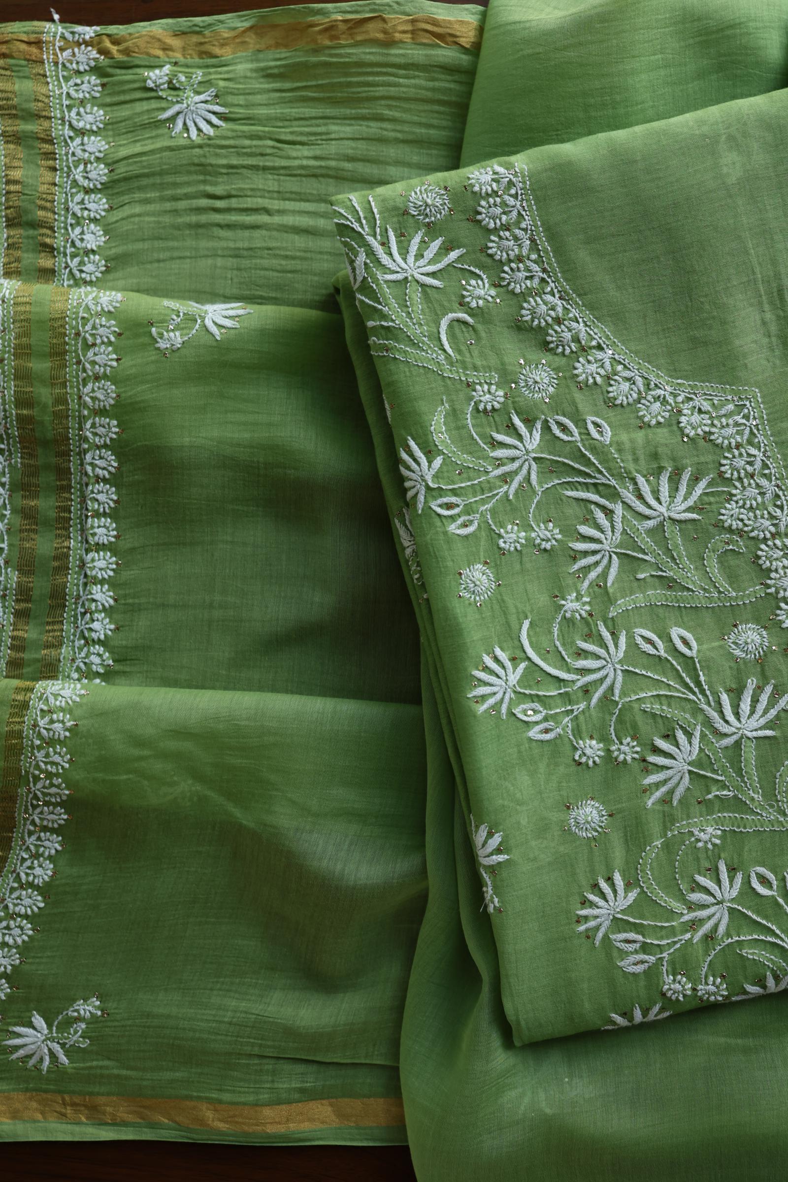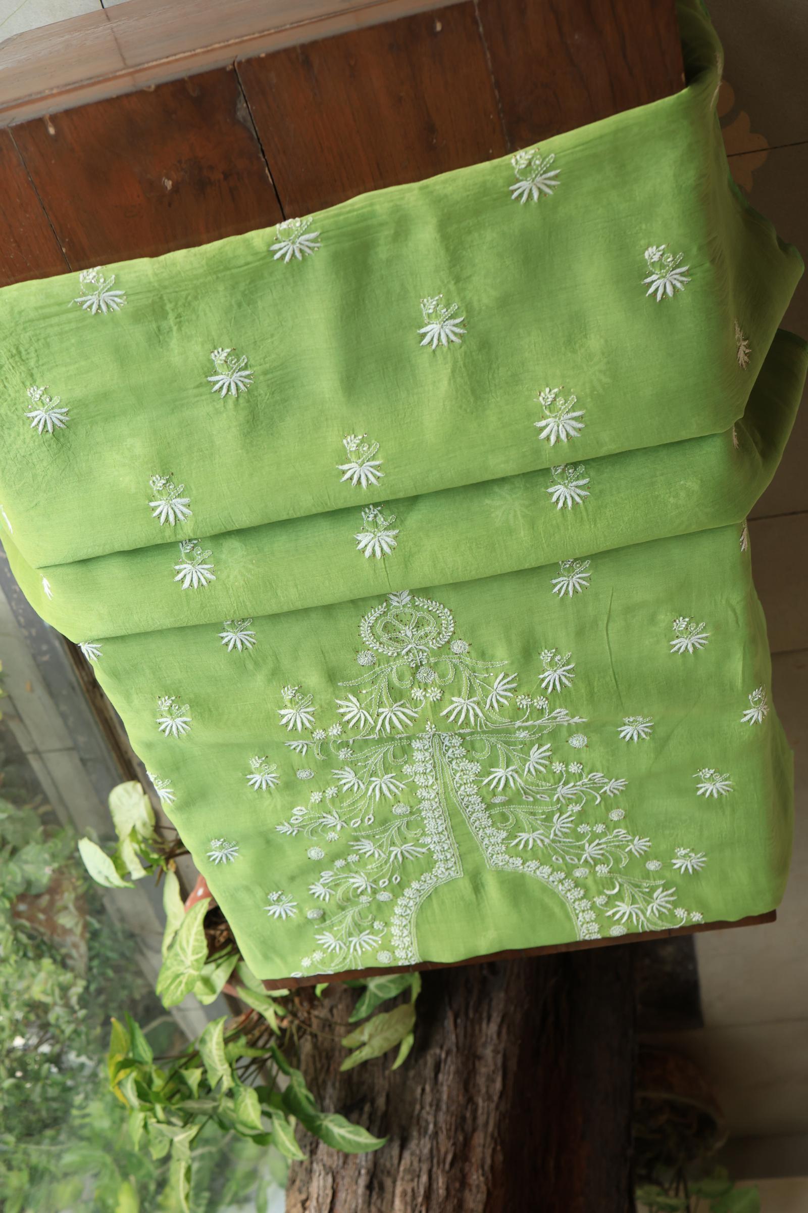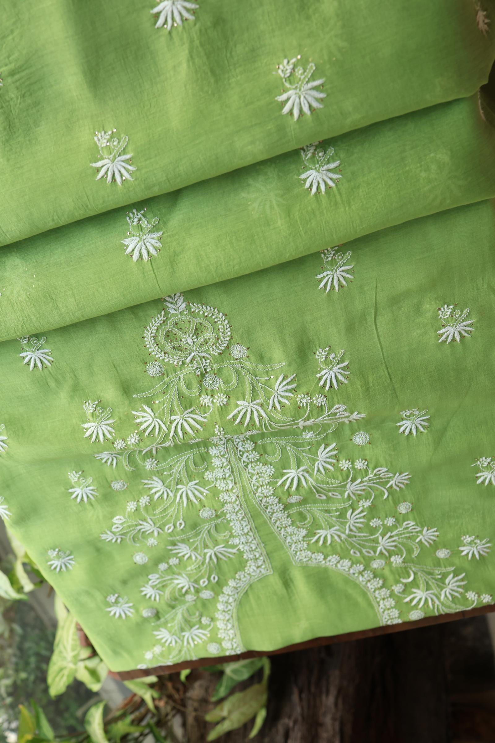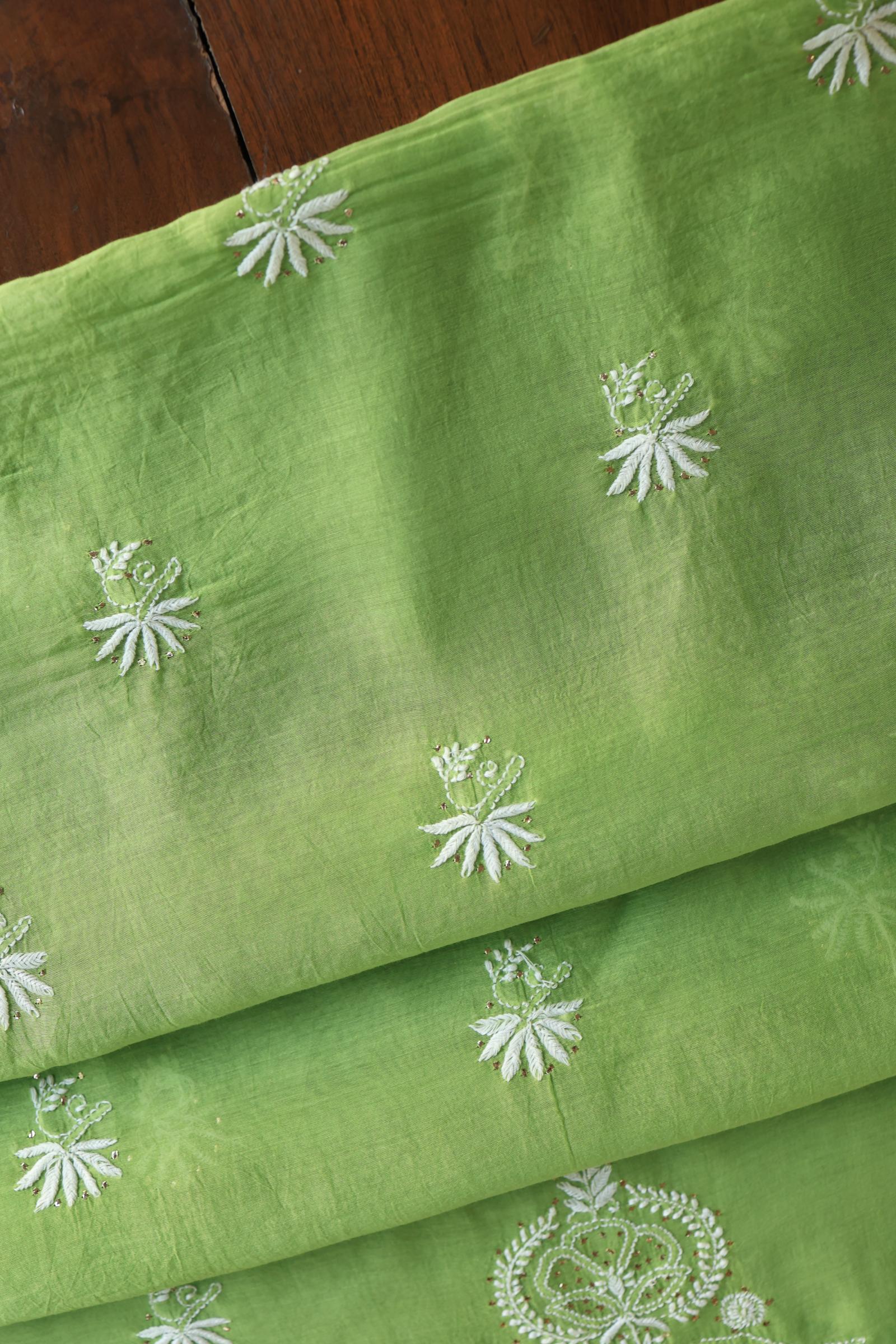 Cactus Green Shade Mal Cotton Fine Chikankari Unstitched Fabric