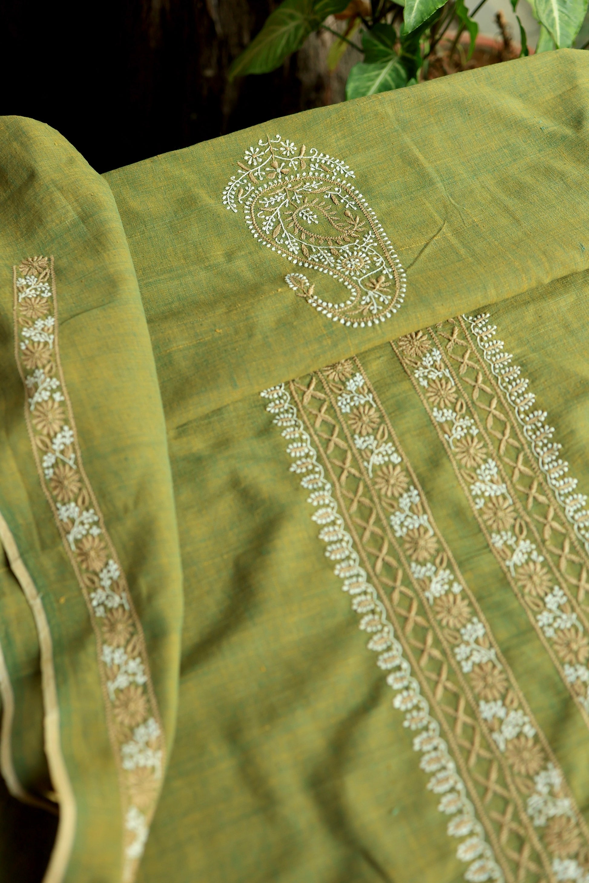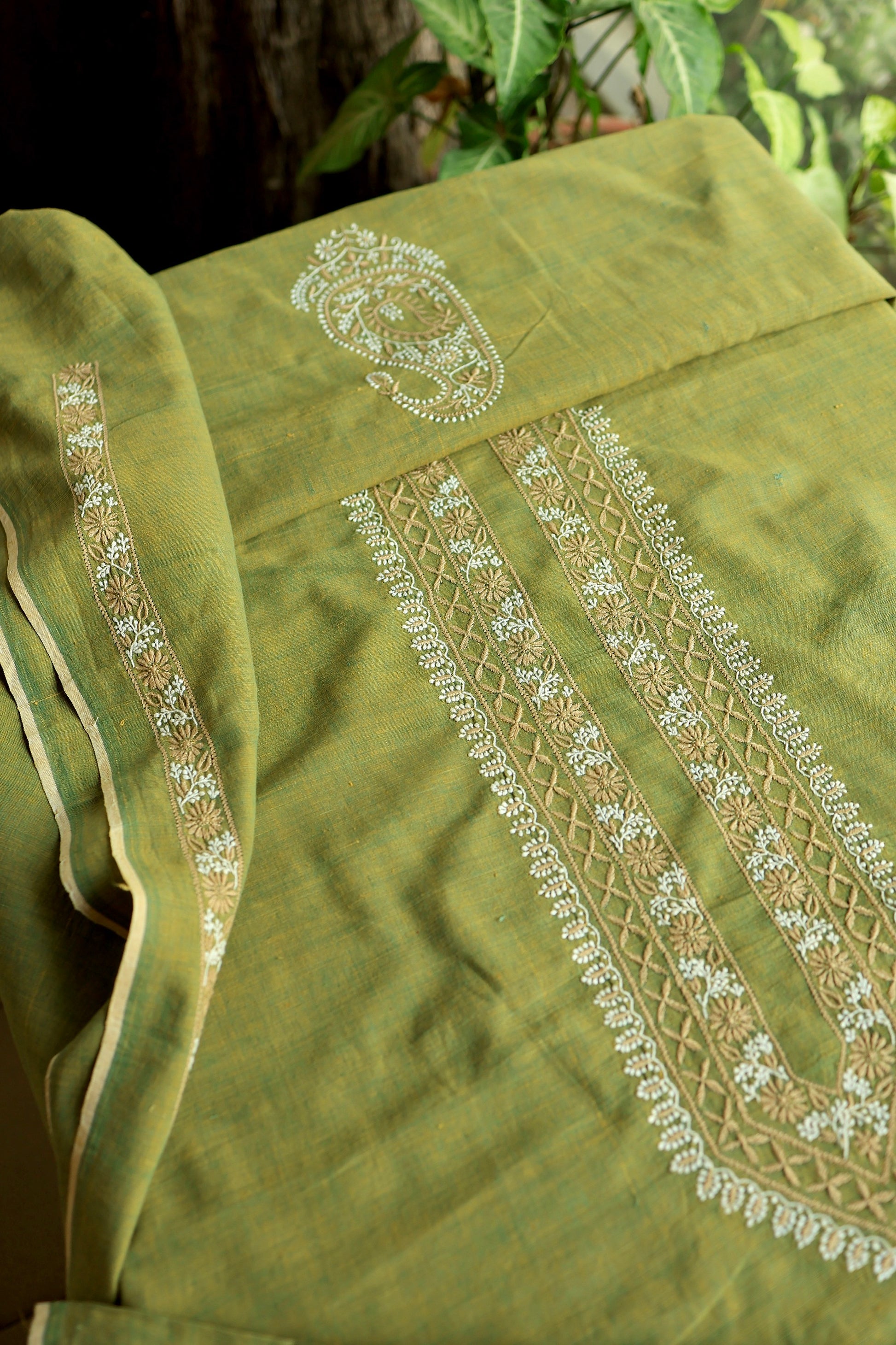 Cactus Green Shade Malkha Handspun Khadi Kurtas Unisex Fabric
