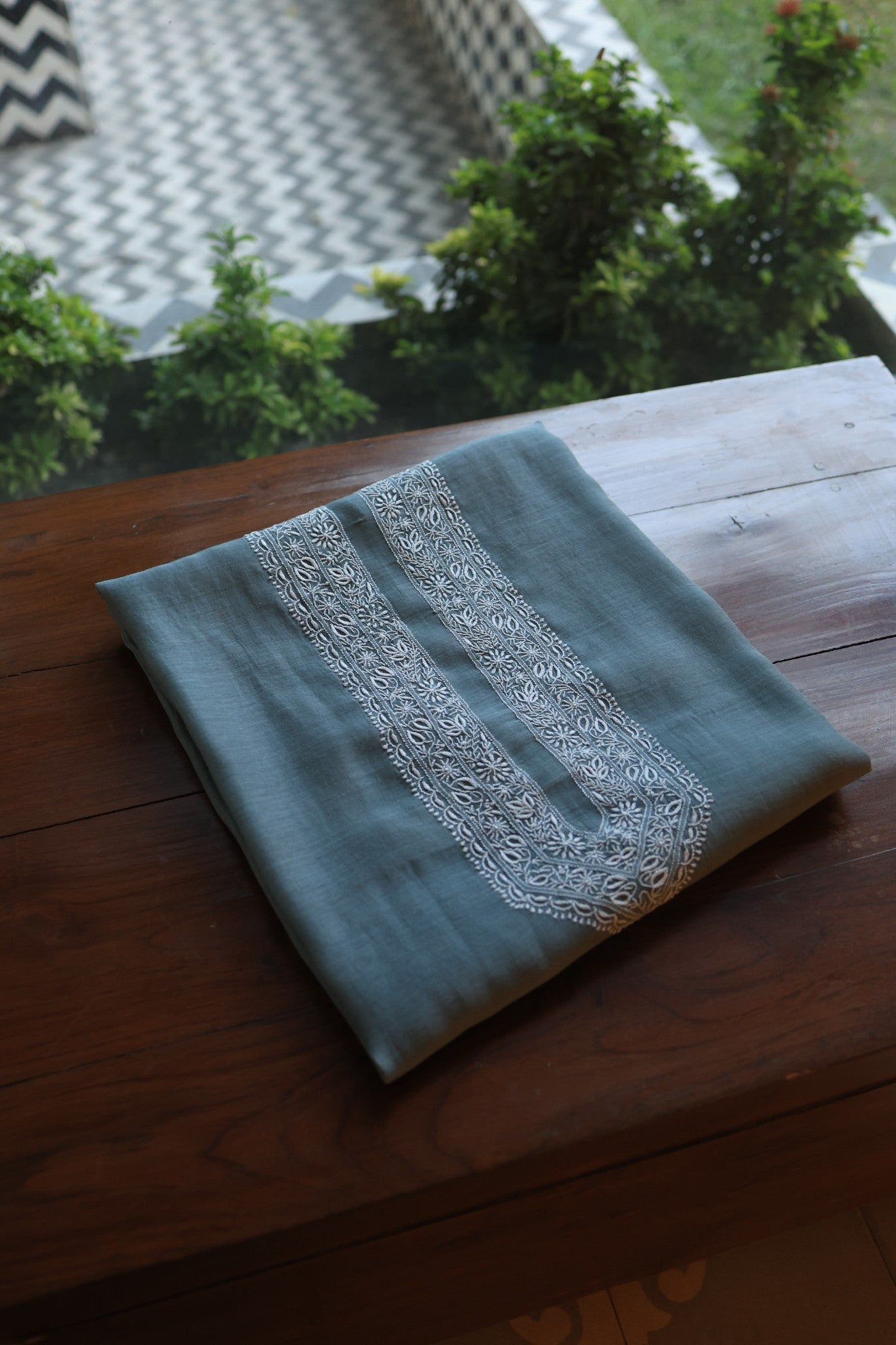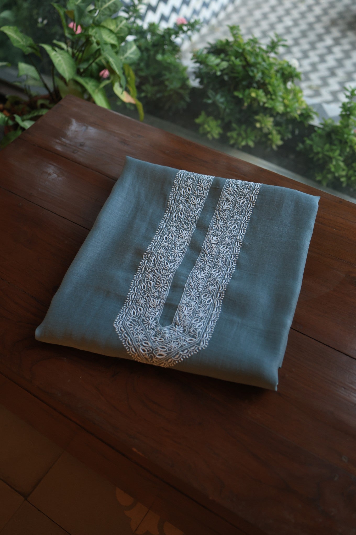 Charcoal Grey Shade Mulmul Chikankari Unstitched Men's Kurtas Fabric