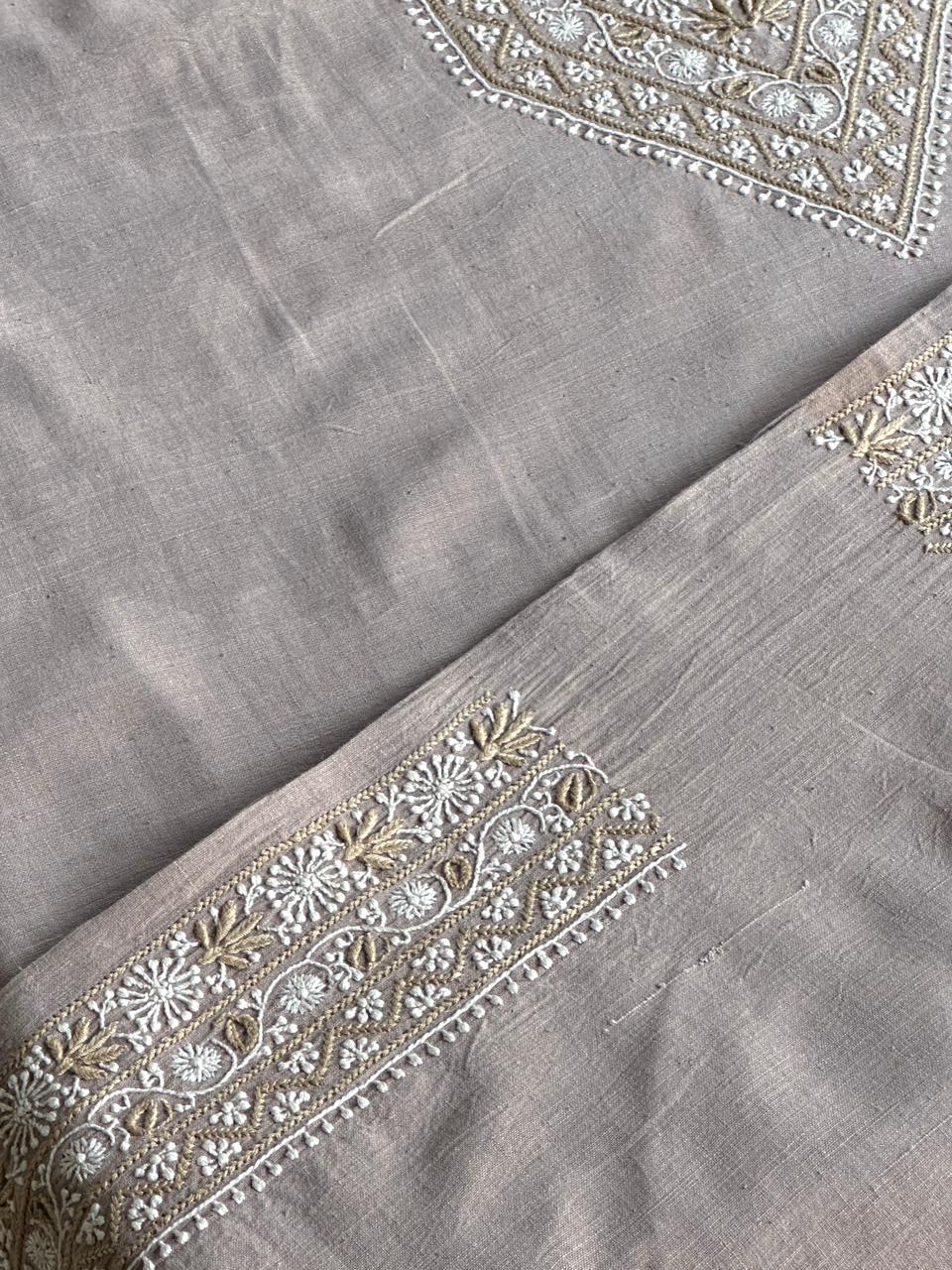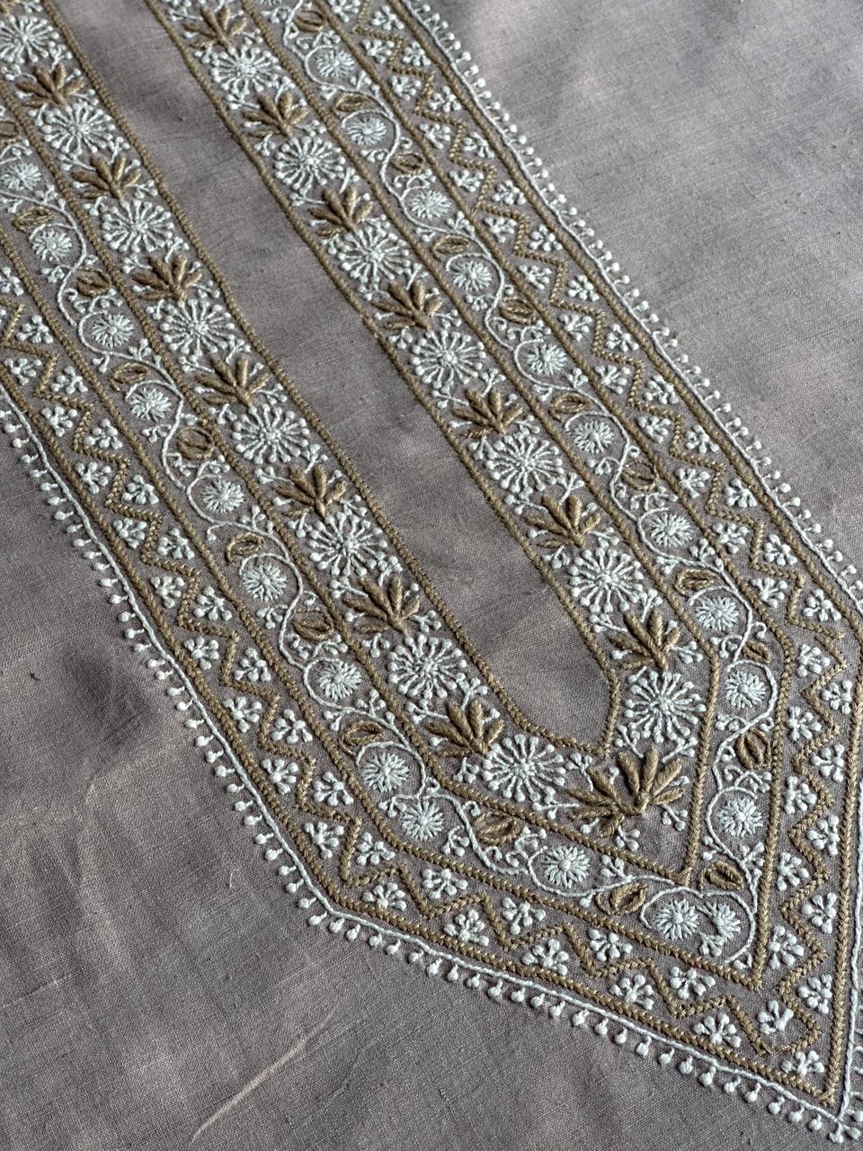Our Men’s Chikankari Kurta, crafted from hand-spun khadi cotton. With a 3.5-meter fabric length, it features delicate pastel embroidery, perfect for all-year-round comfort and elegance.