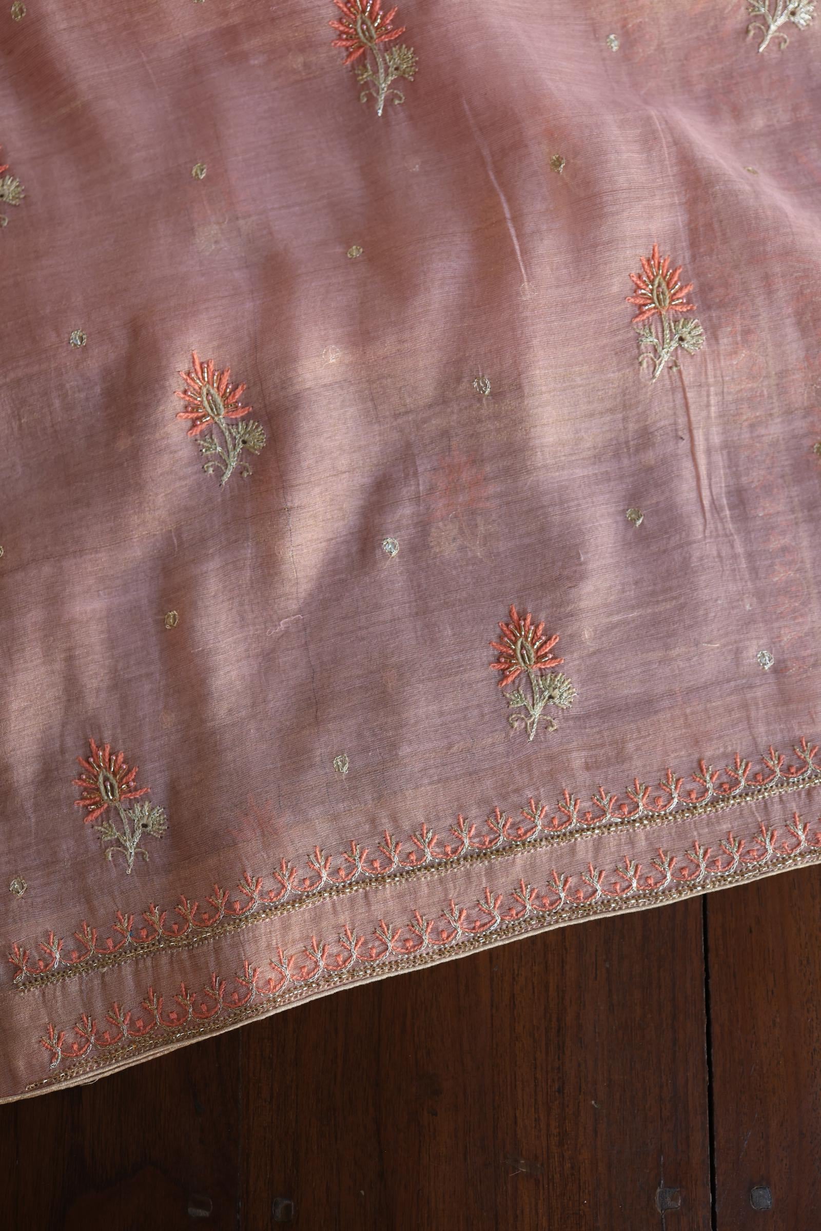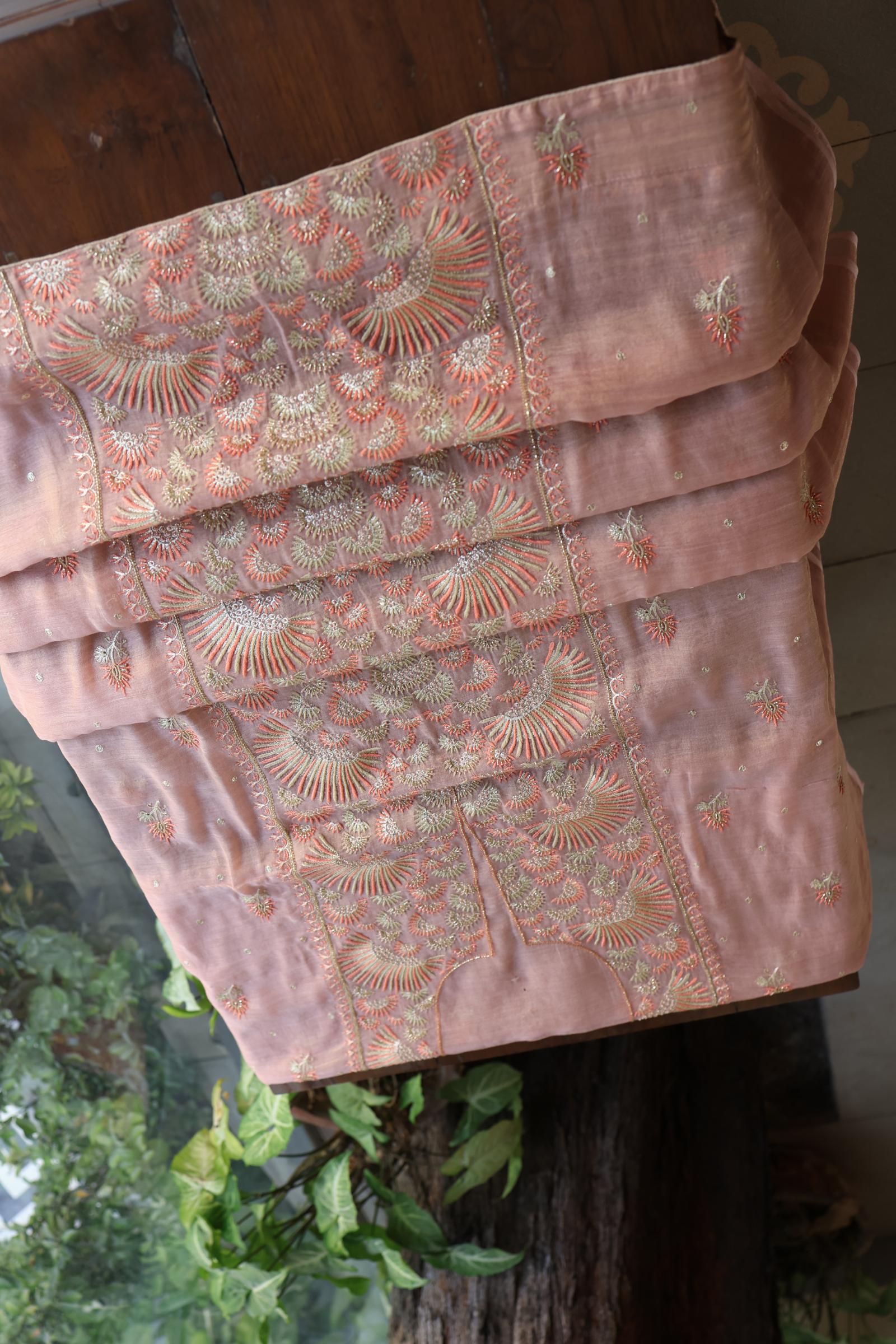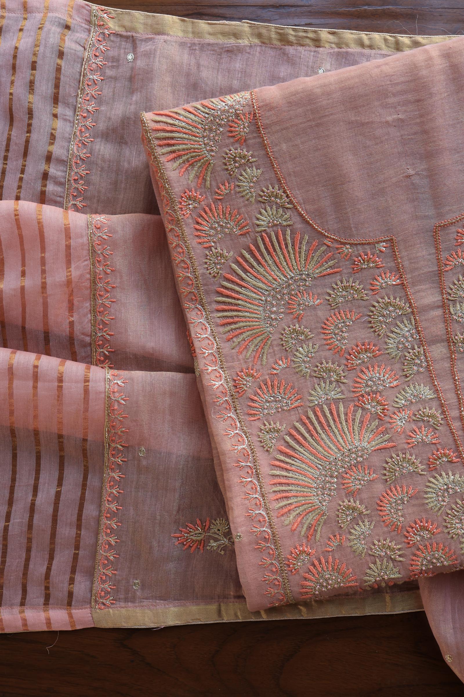 Copper Rose Shade Tissue Silk Chikankari Unstitched Fabric