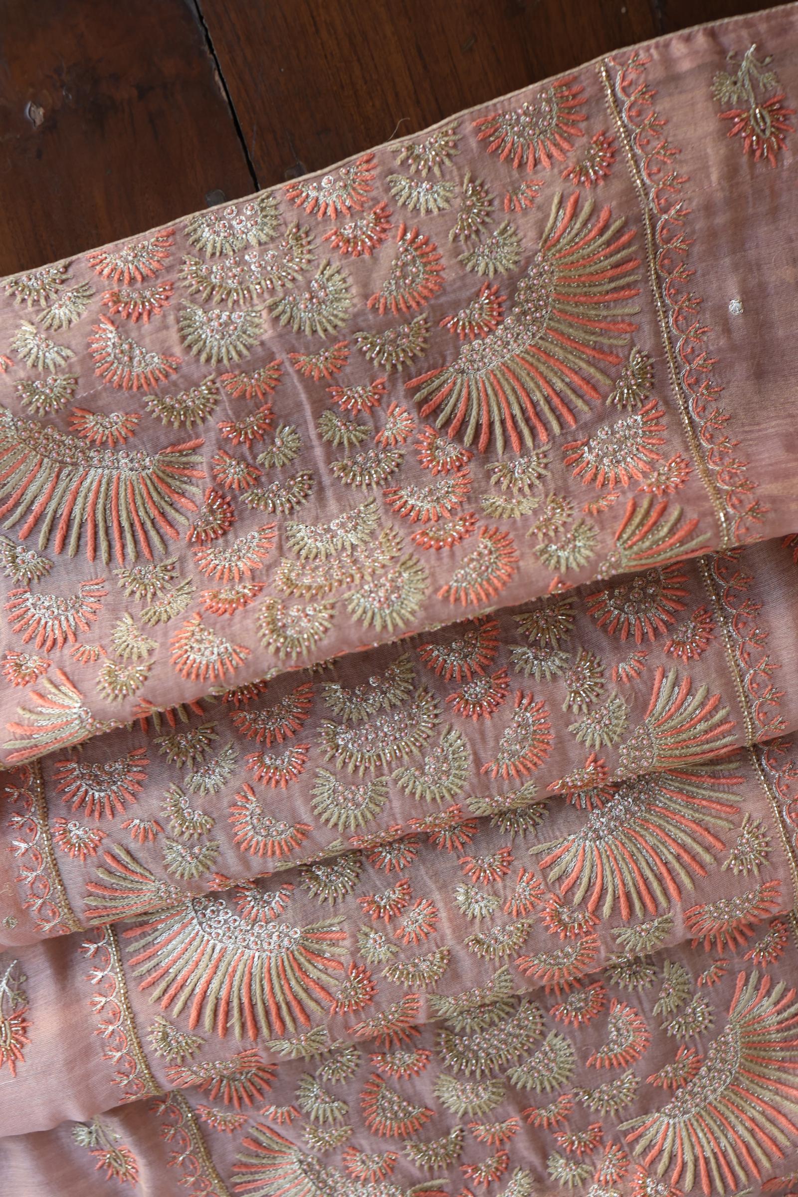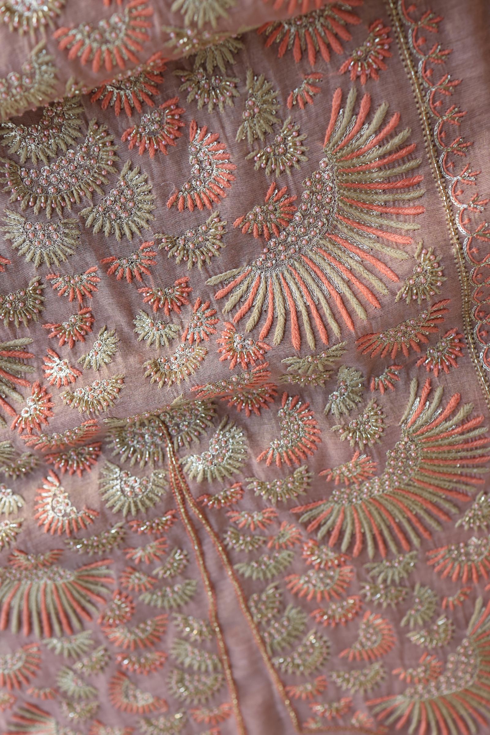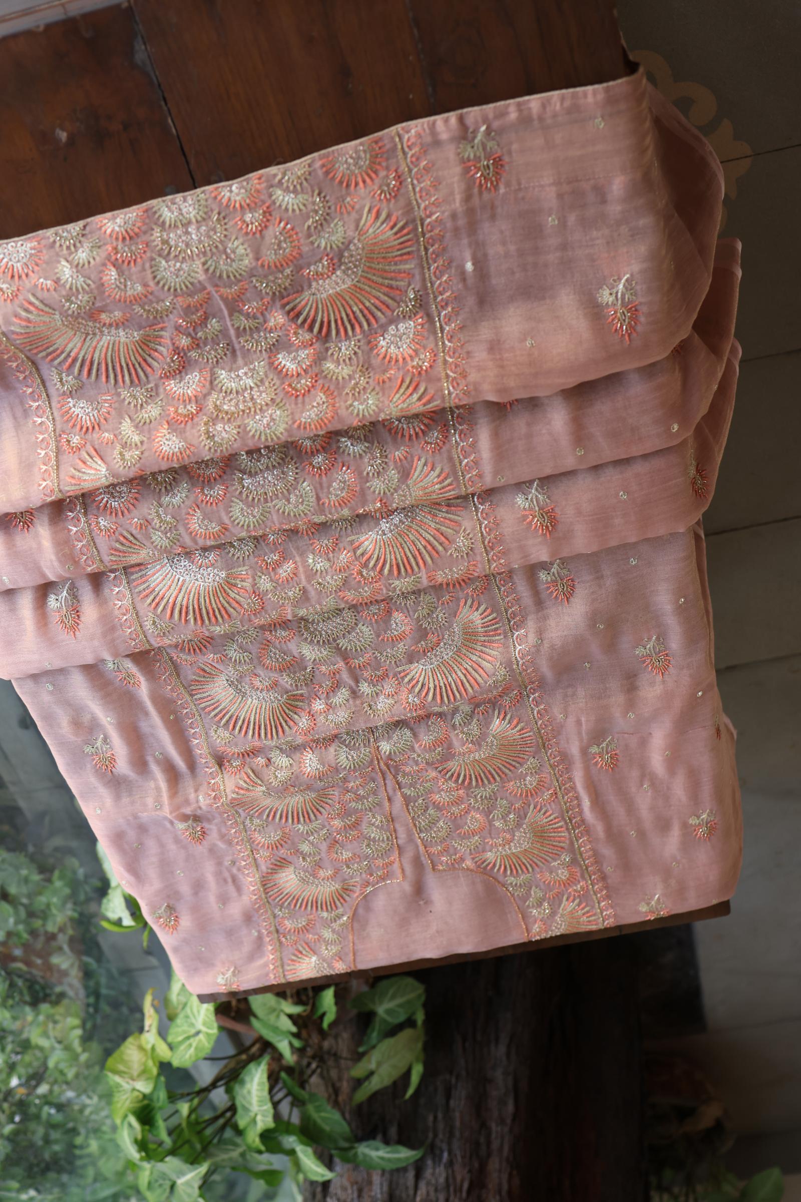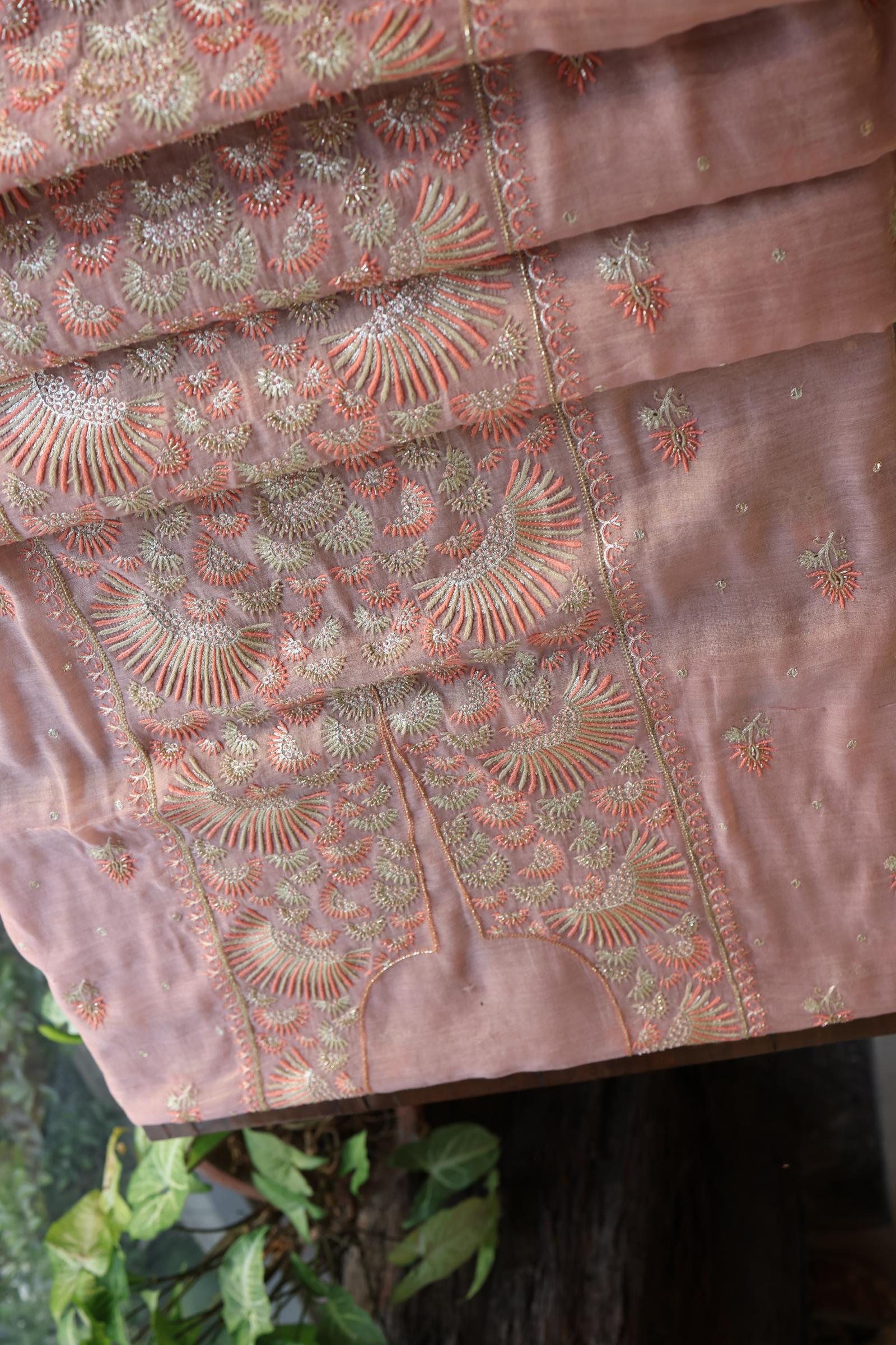 Copper Rose Shade Tissue Silk Chikankari Unstitched Fabric