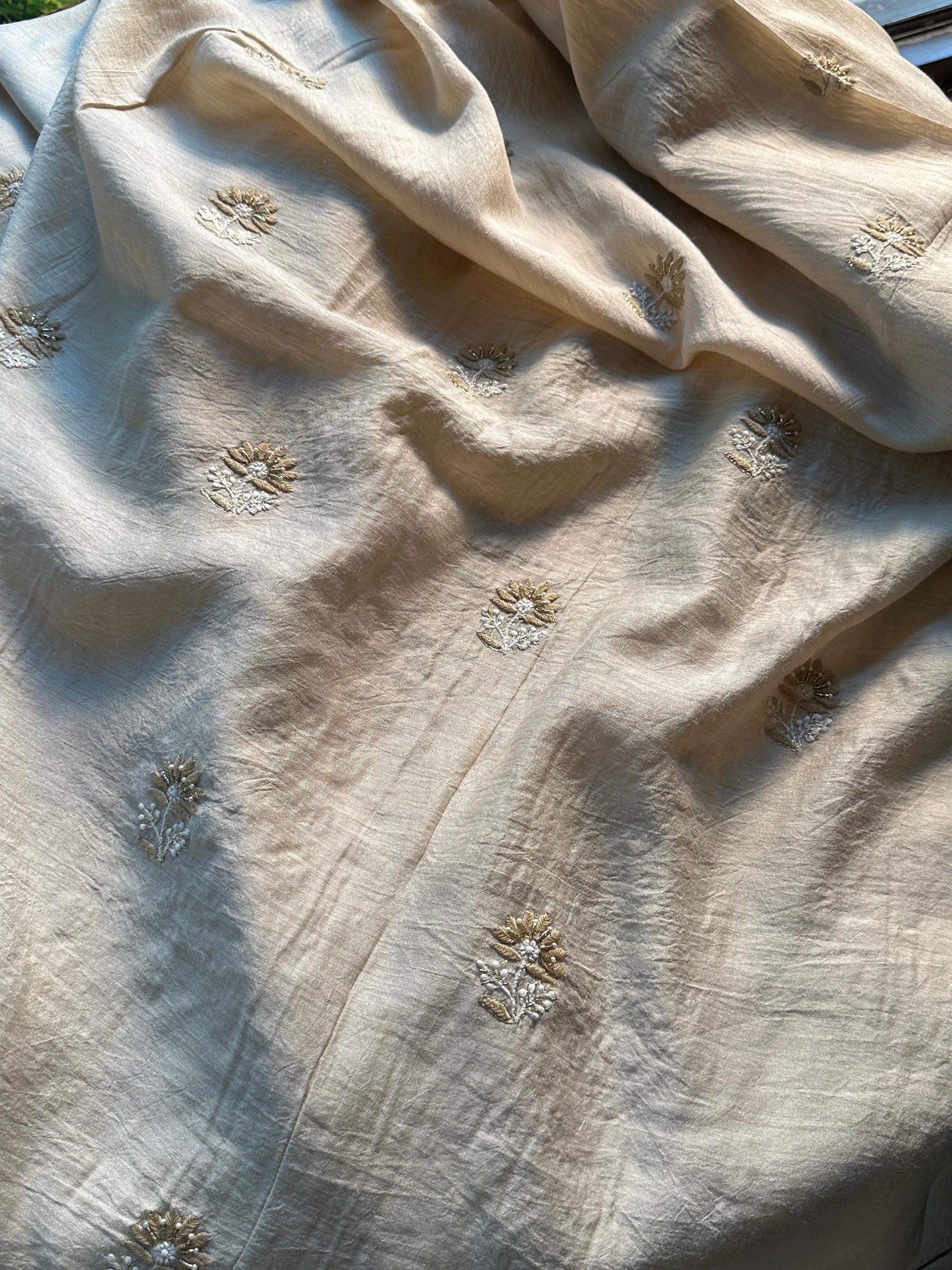 Natural Moonga Silk Chikankari Unstitched Fabric