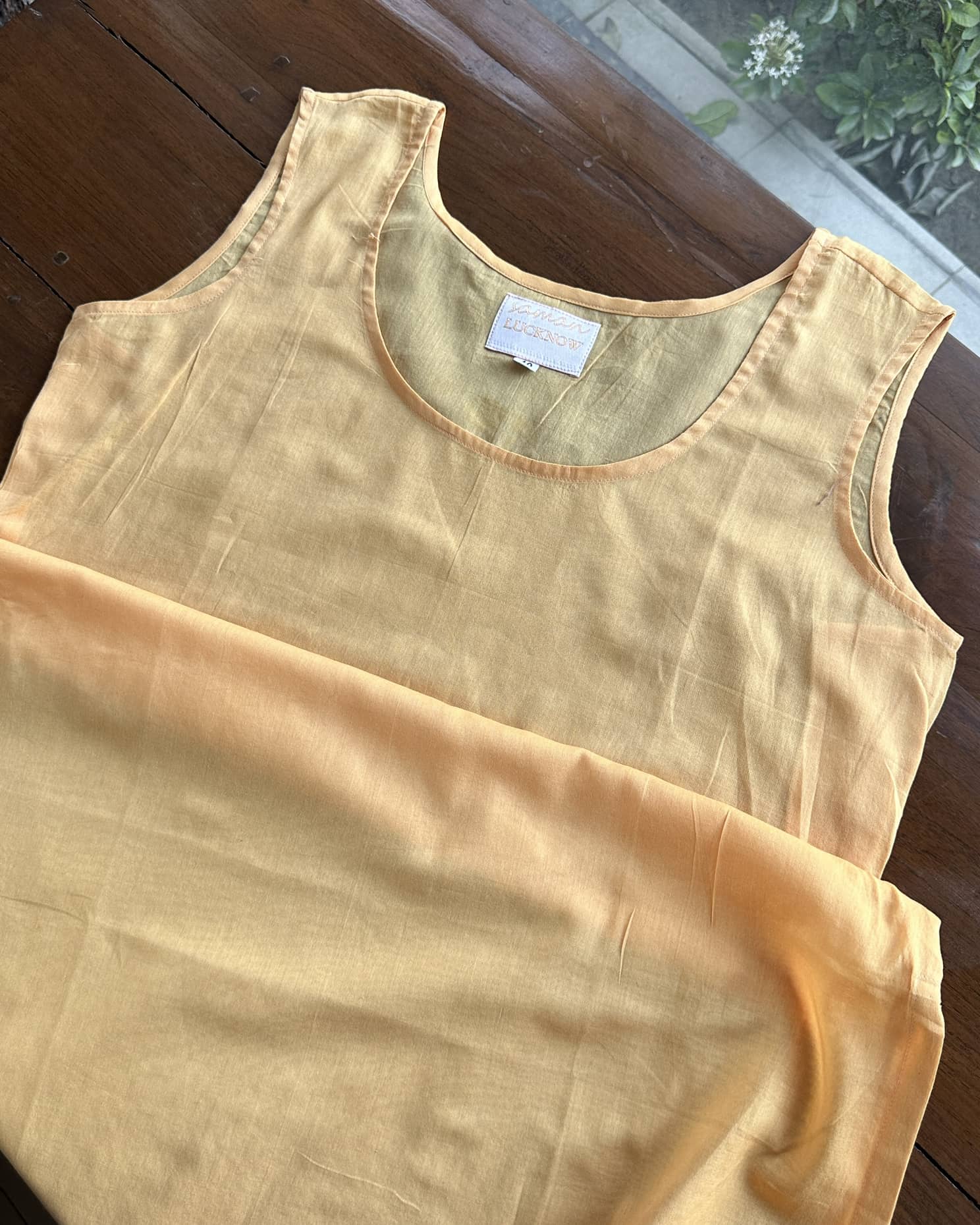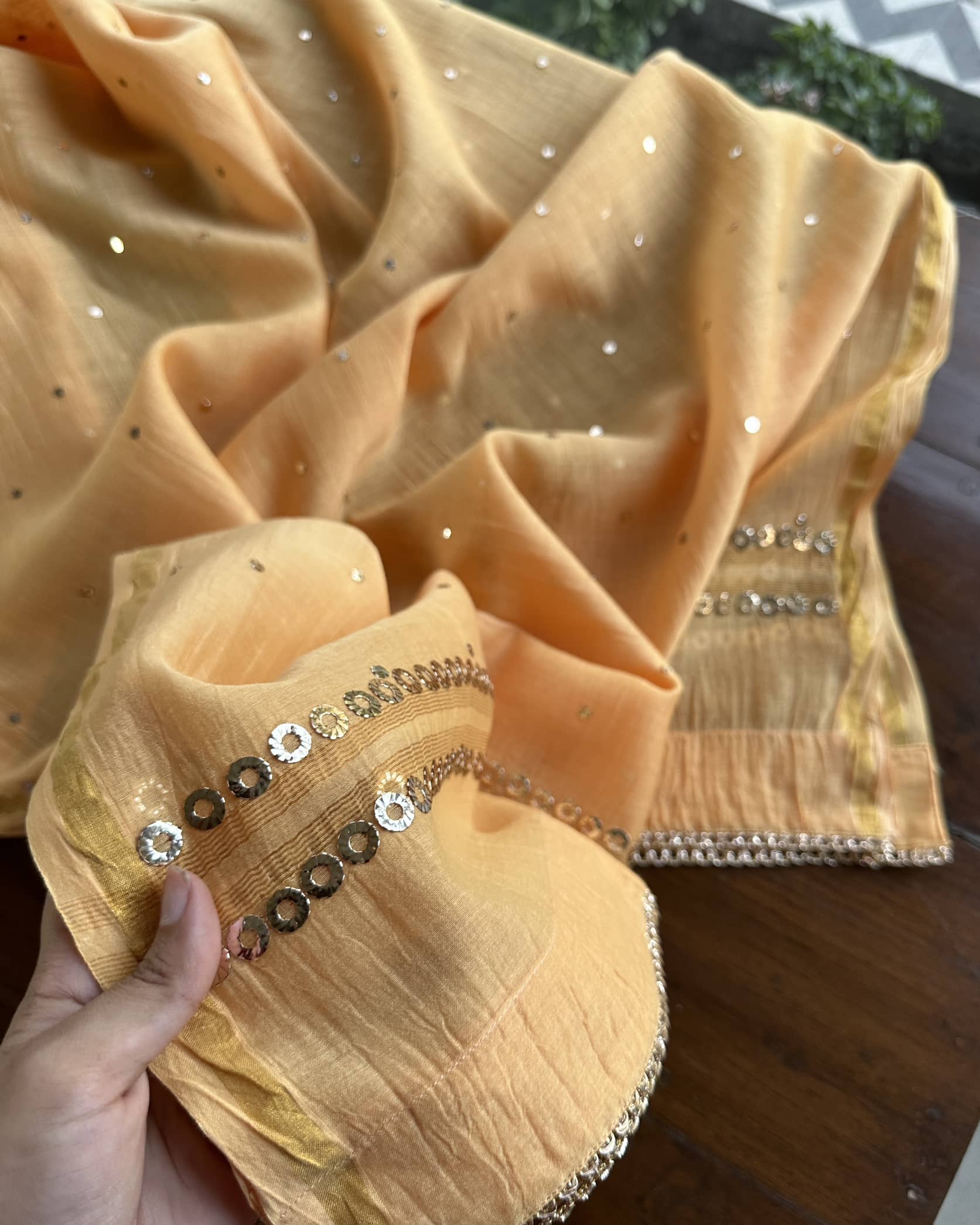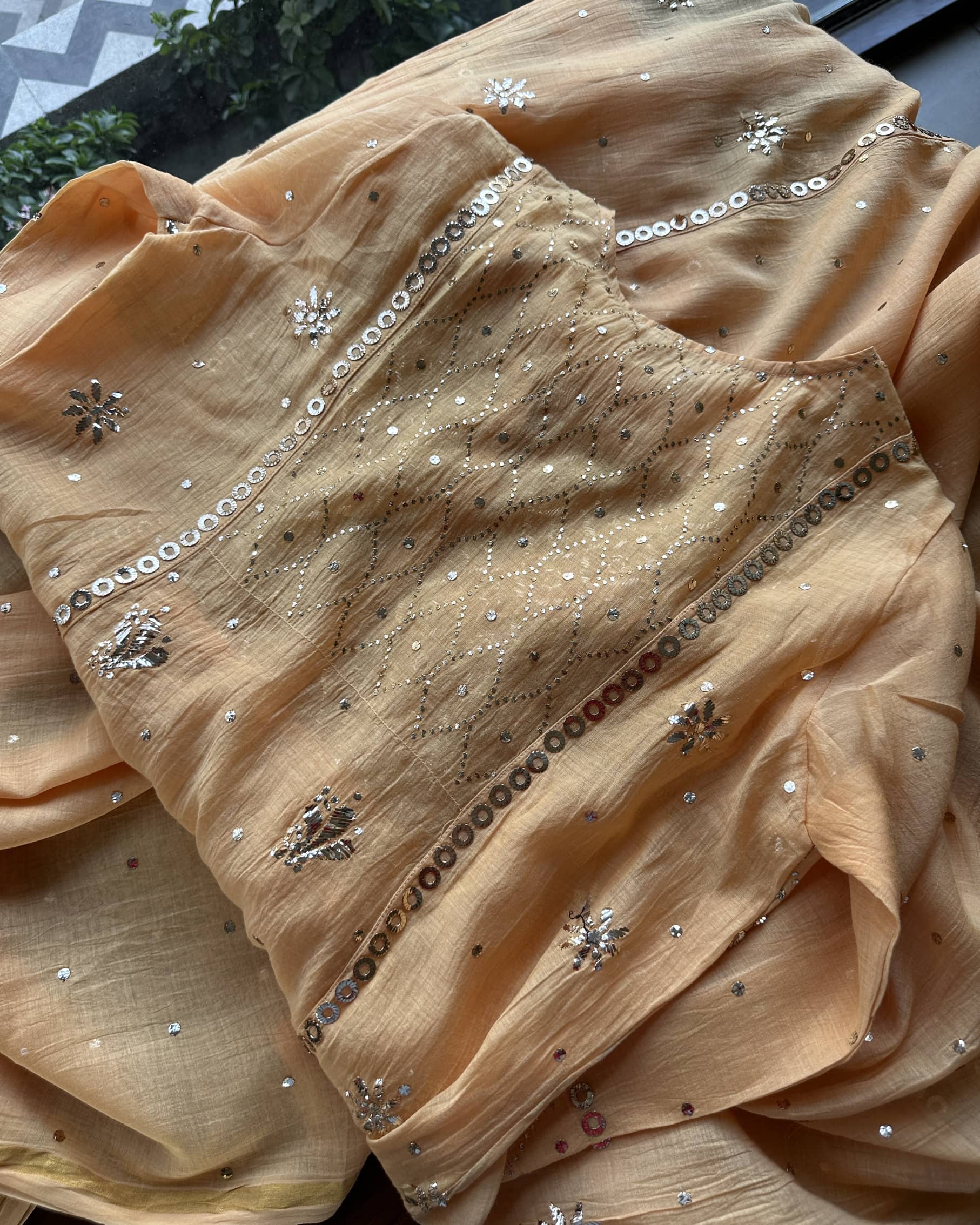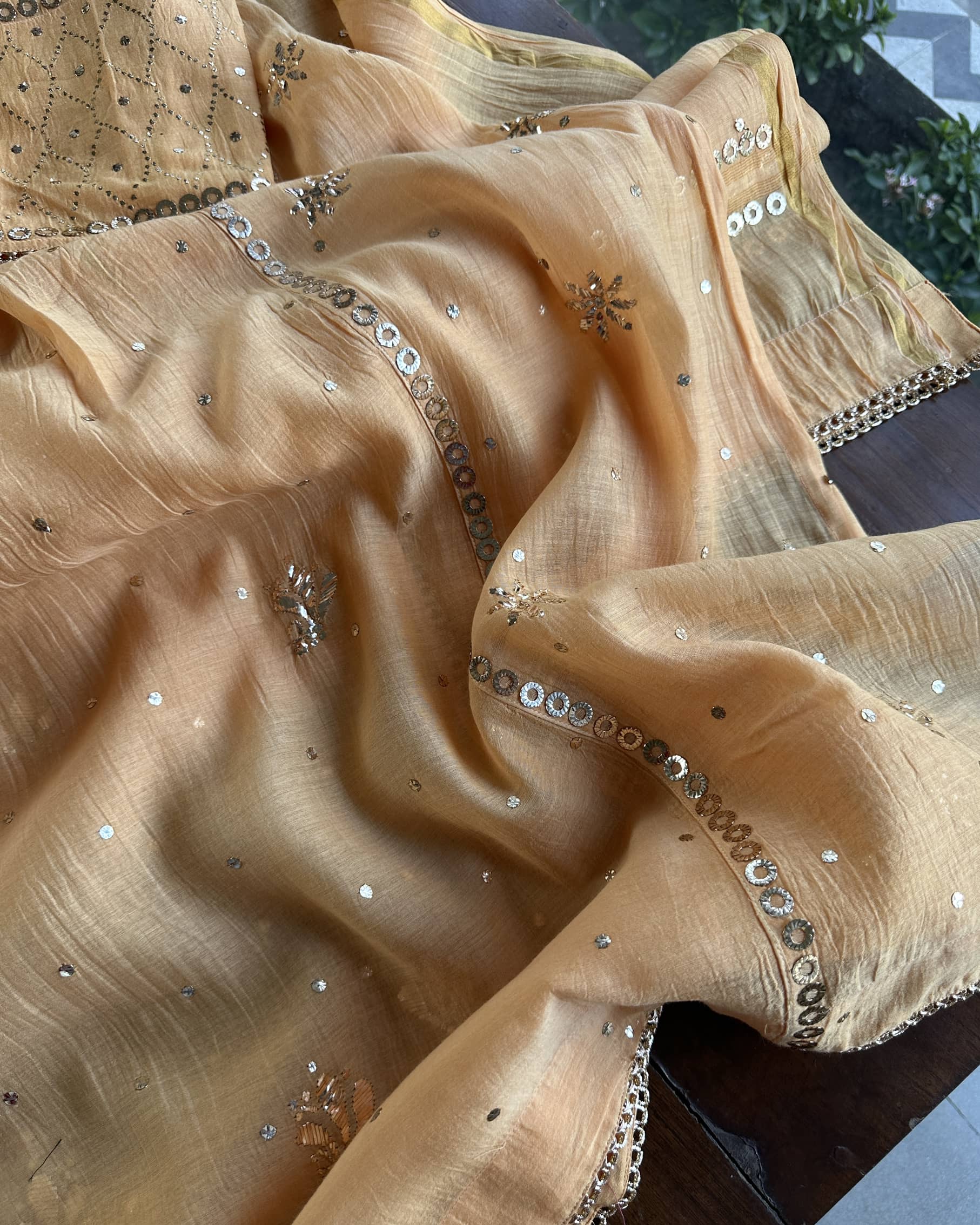 Coral Peach Mukaish Mul Chanderi Silk Dress