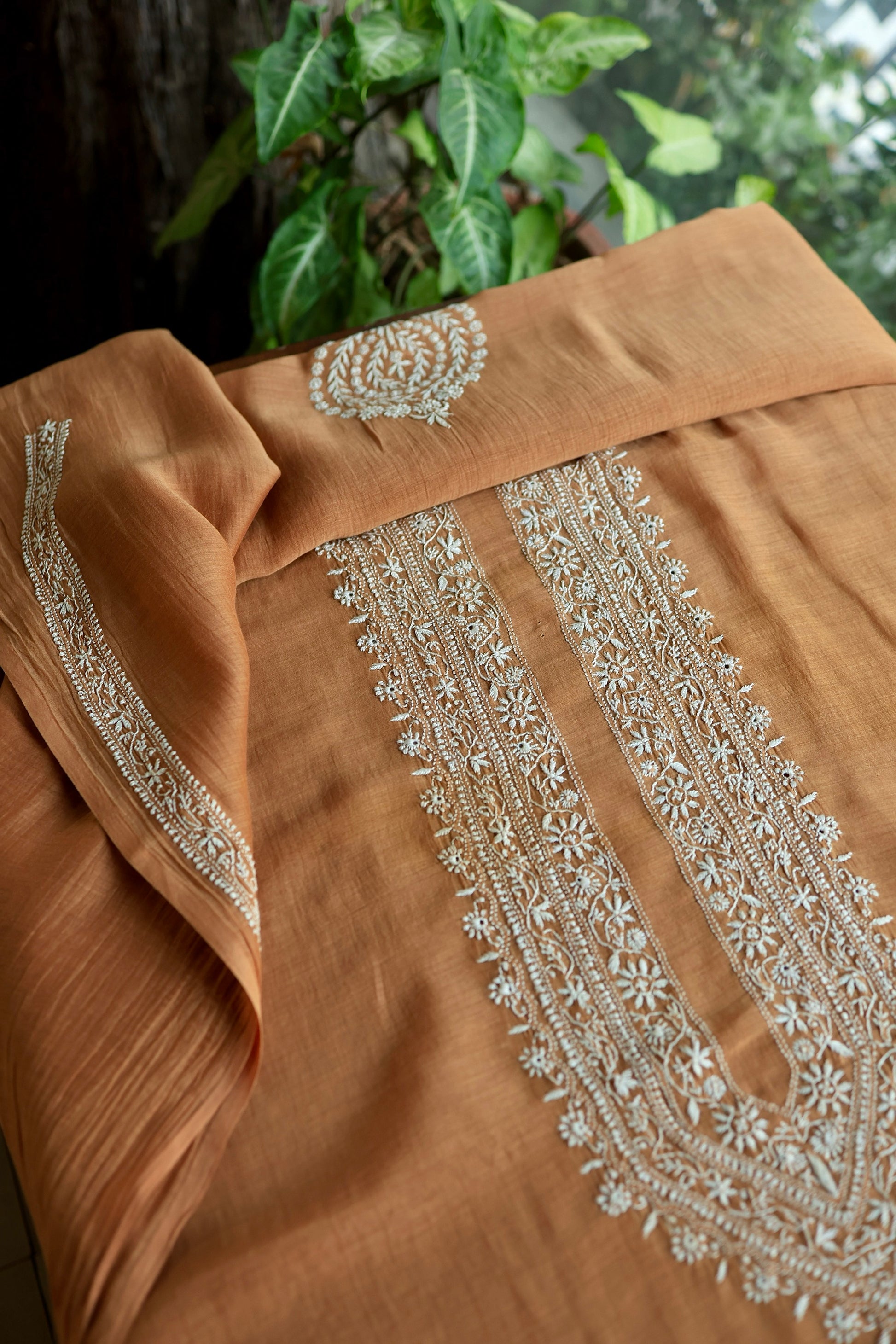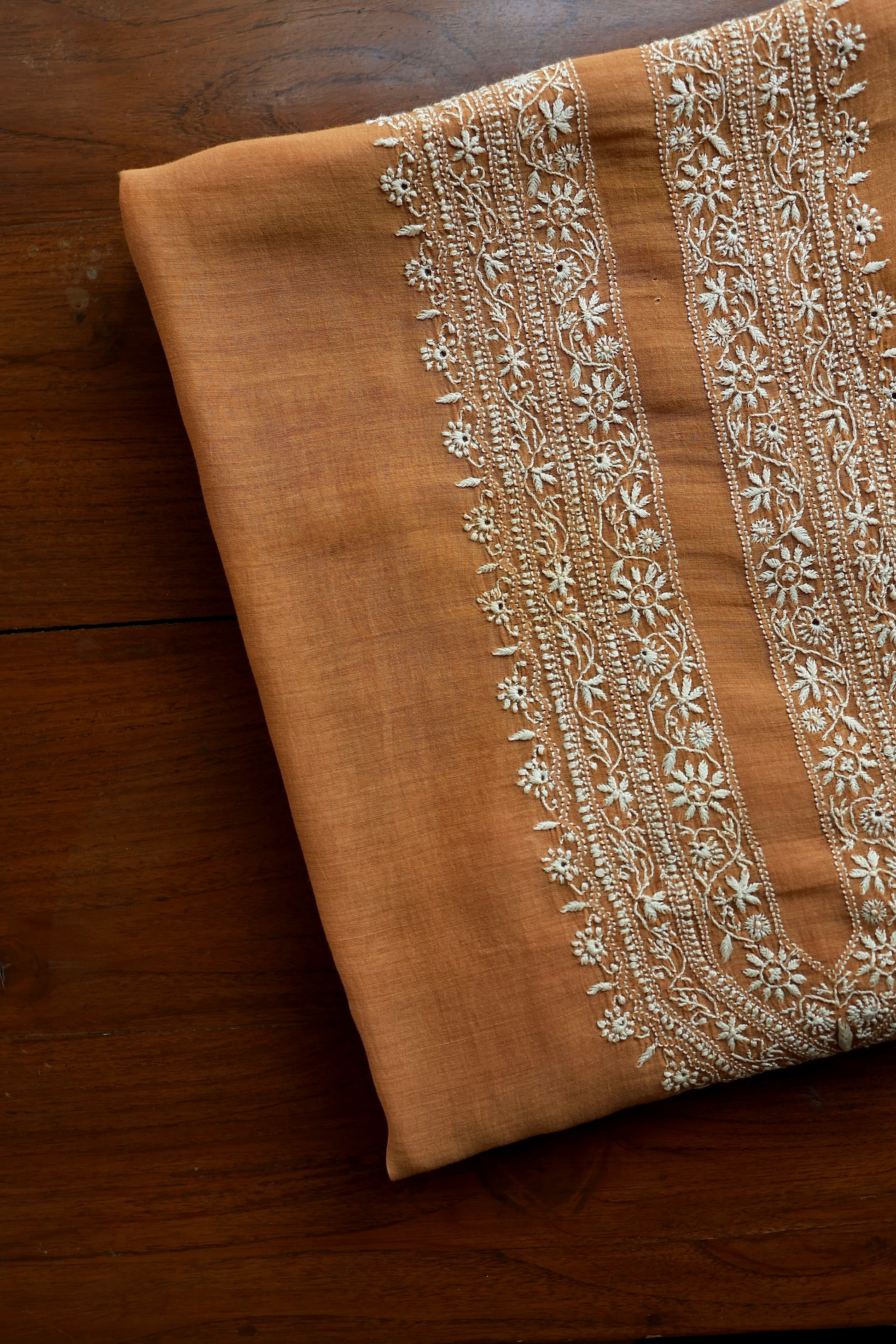 Rust Shade Mulmul Chikankari Unstitched Men's Kurtas Fabric