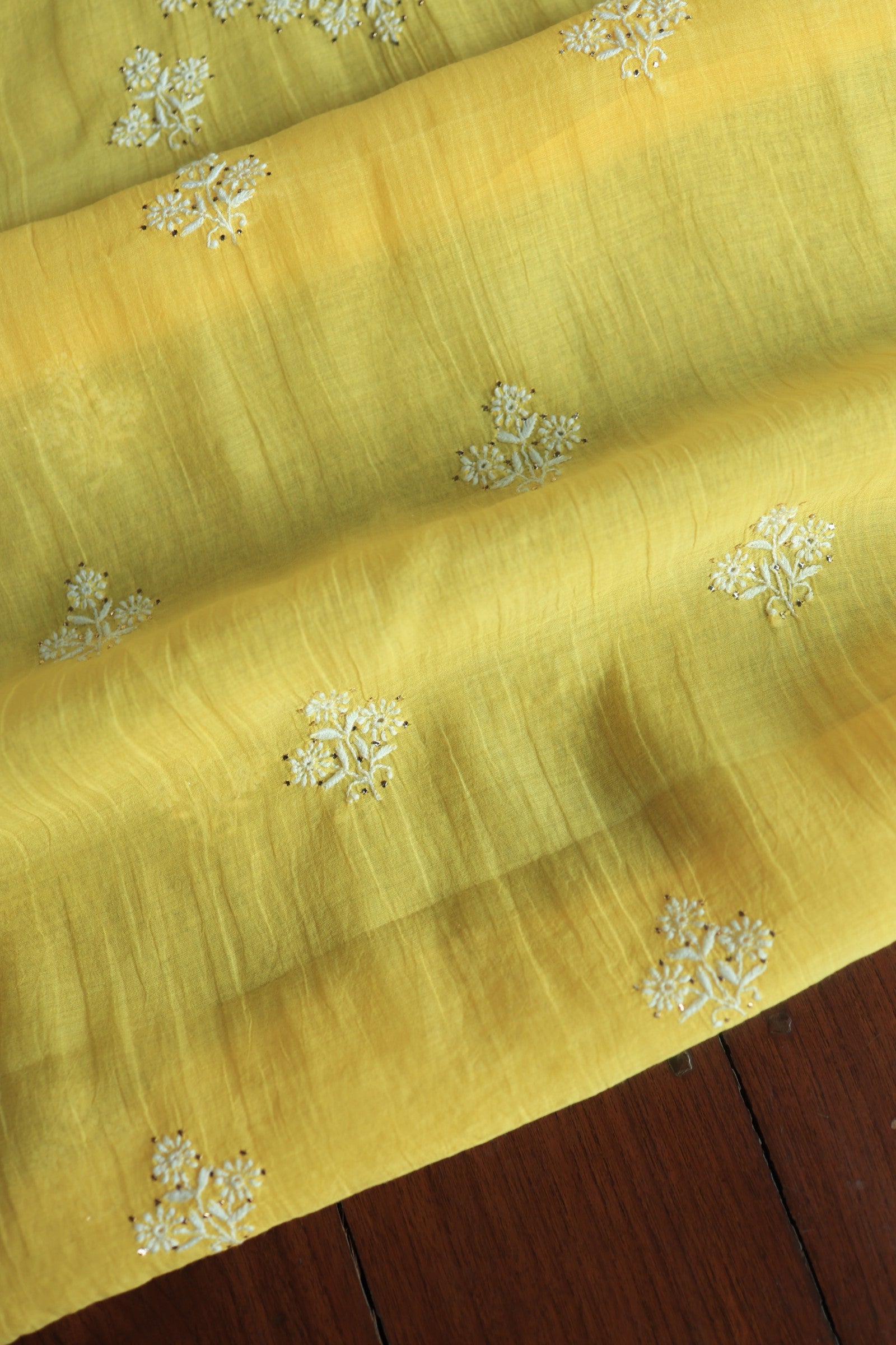 Corn Yellow Shade Mal Cotton Chikankari Unstitched Fabrics With Kamdani