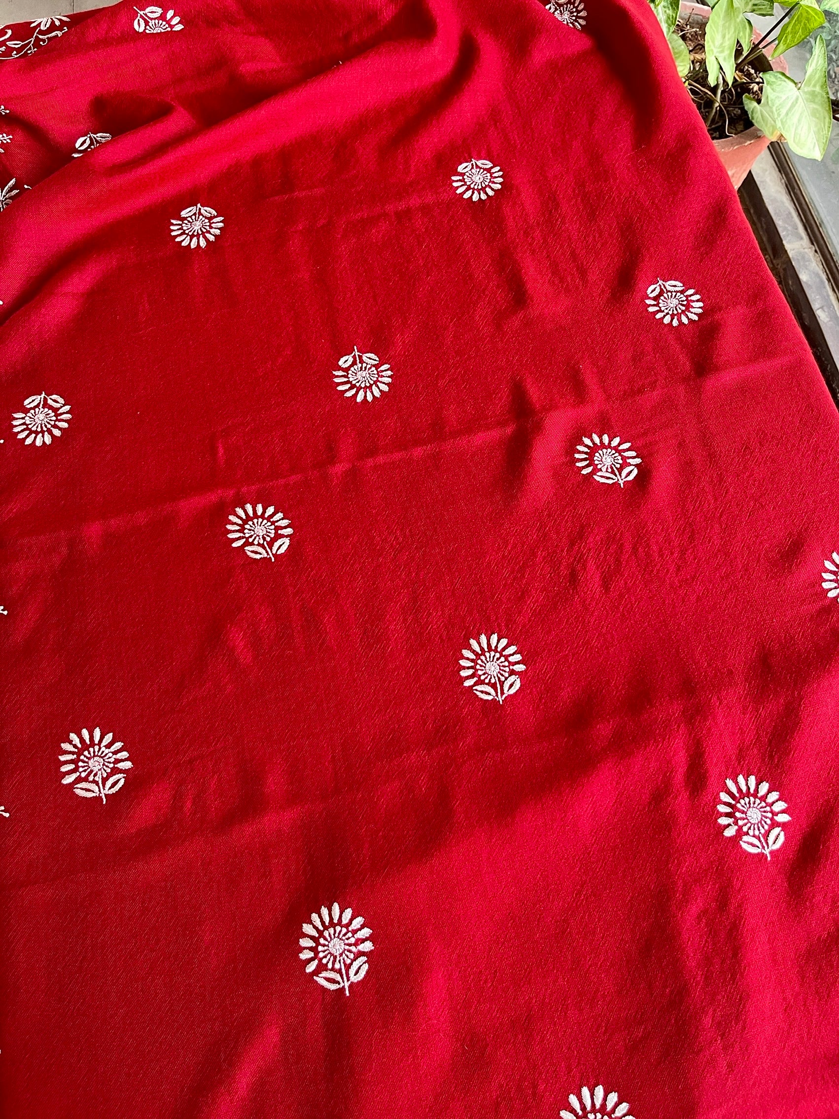 Crimson Red Shade Saman Pashmina Resham Thread Chikankari Shawl