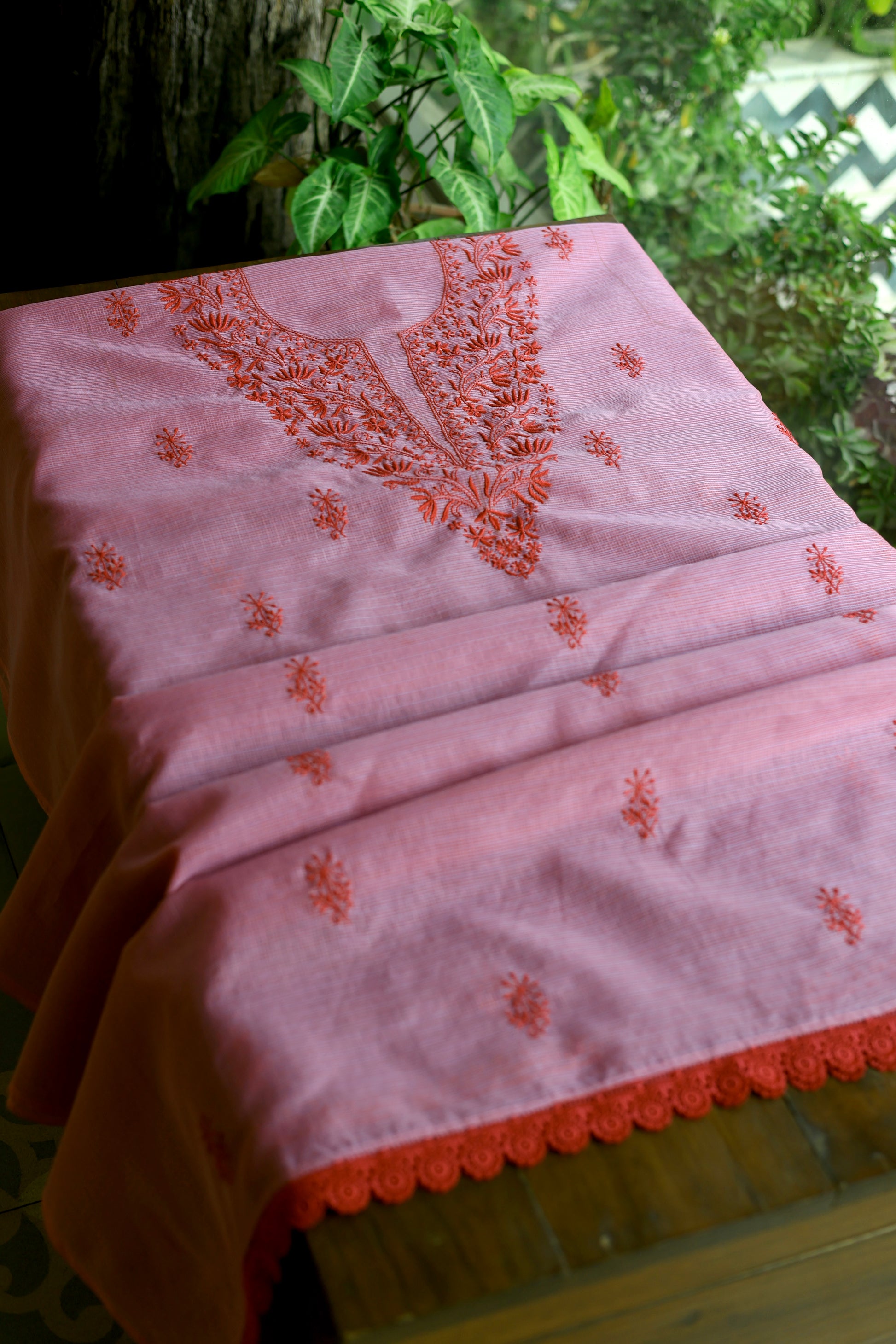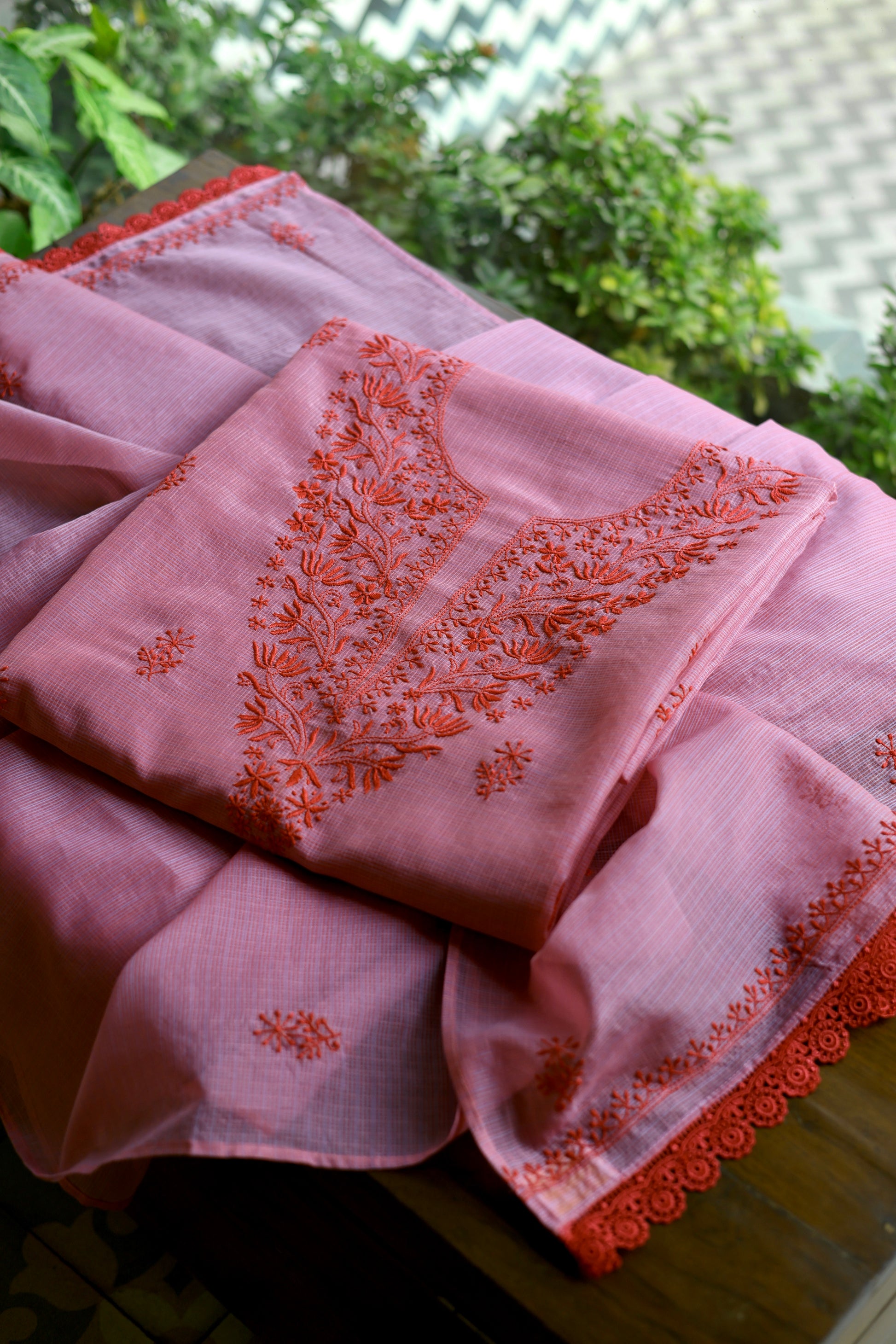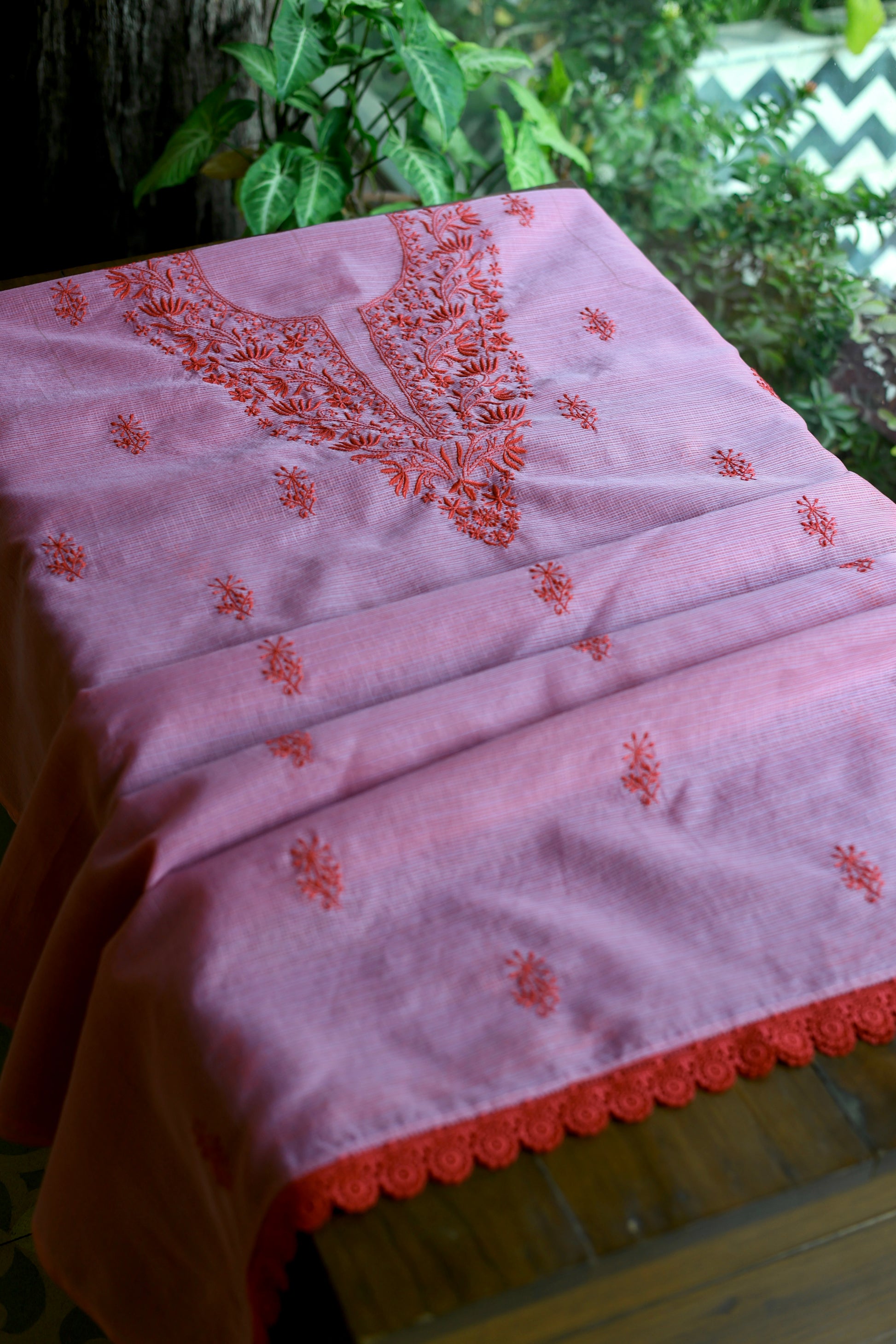 Dark Pink Kota Chikankari Unstitched Fabrics