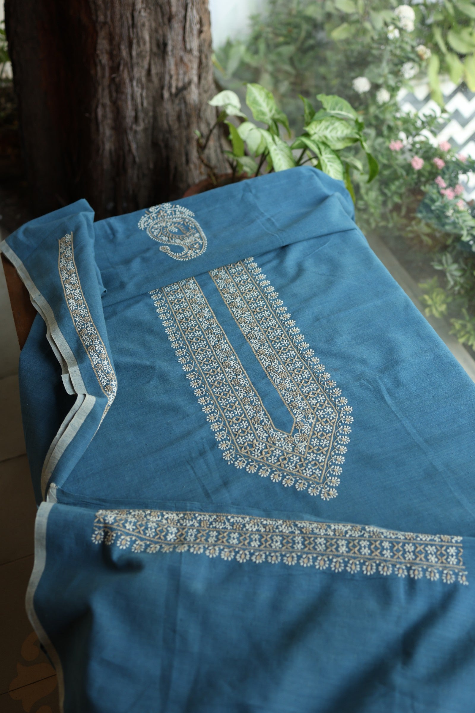 Dull Blue Shade Malkha Handspun Khadi Kurtas Unisex Fabric