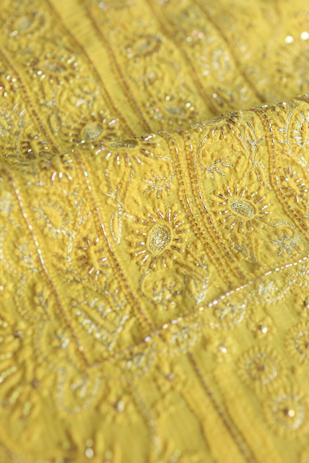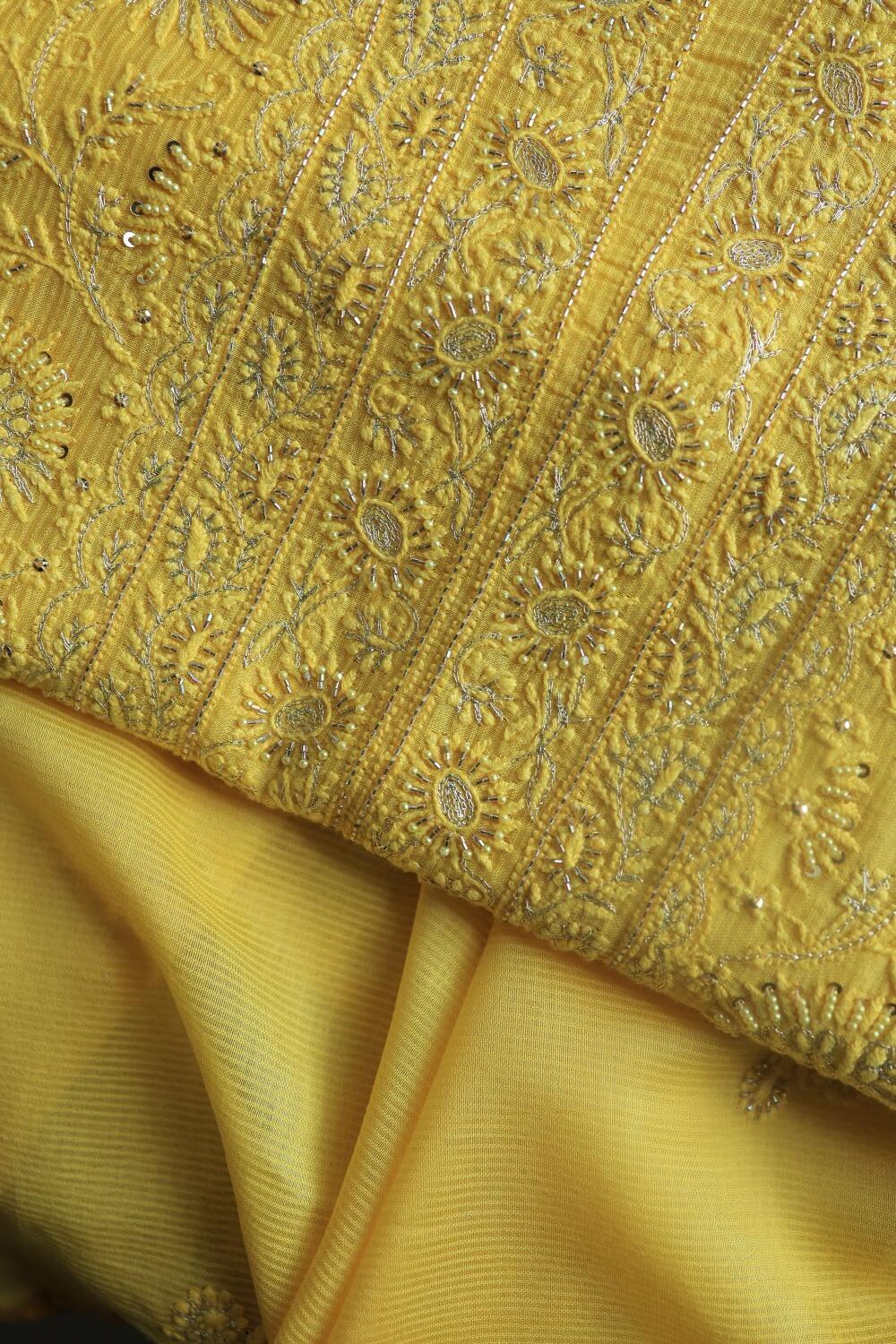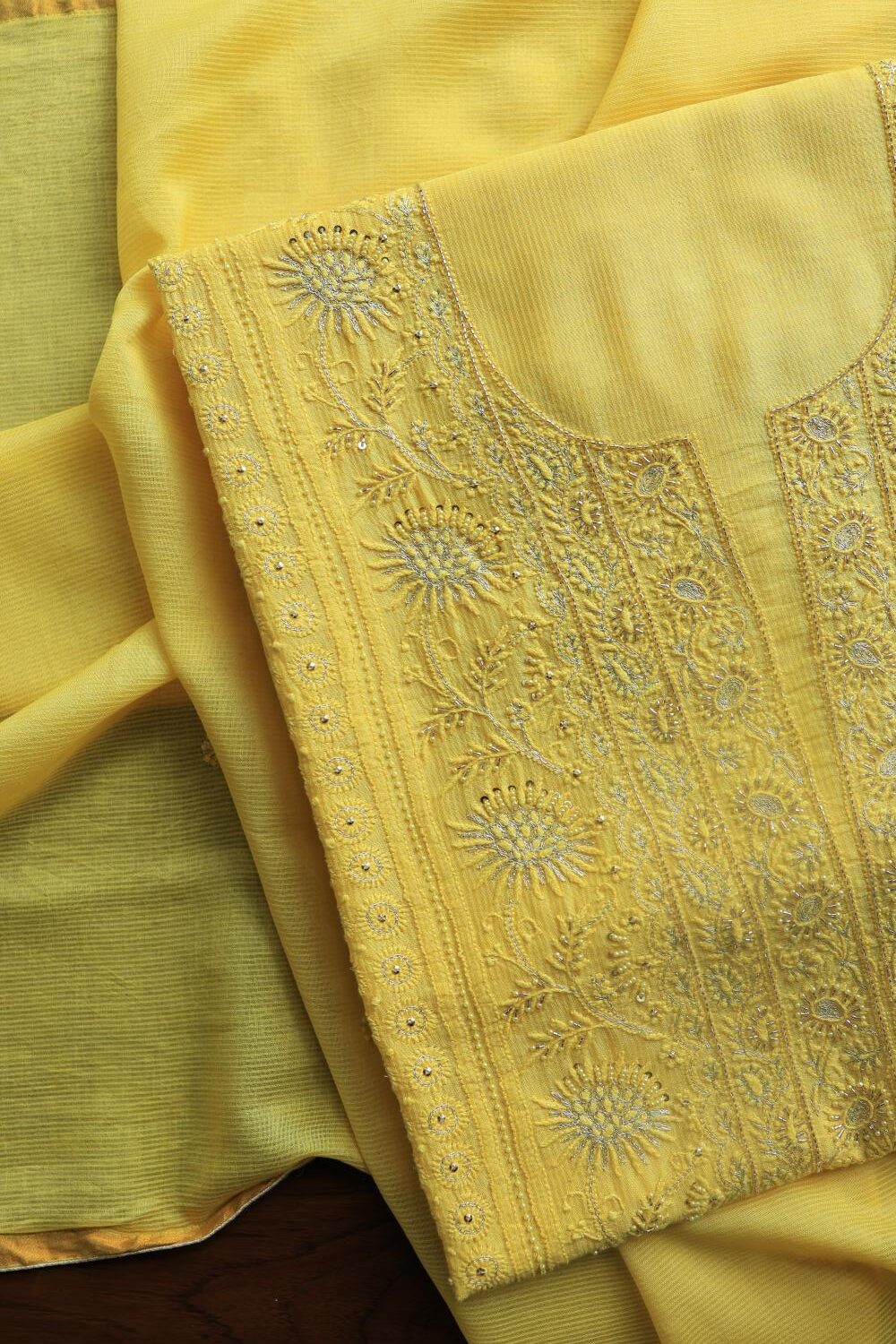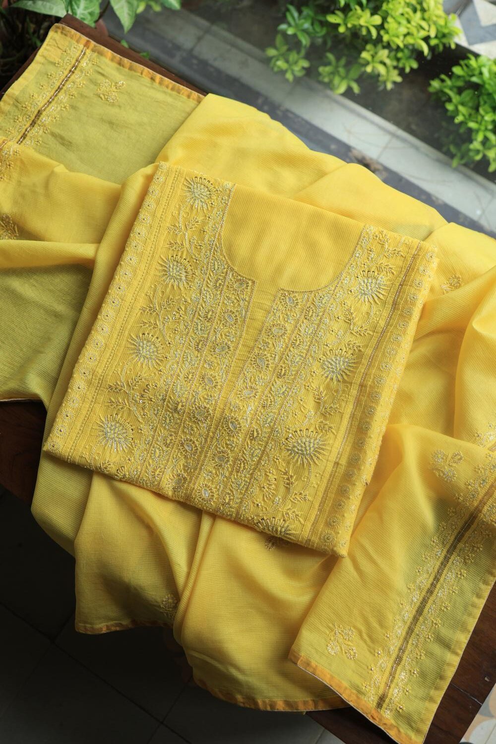 Dull Yellow Maheshwari Chikankari Unstitched Fabric