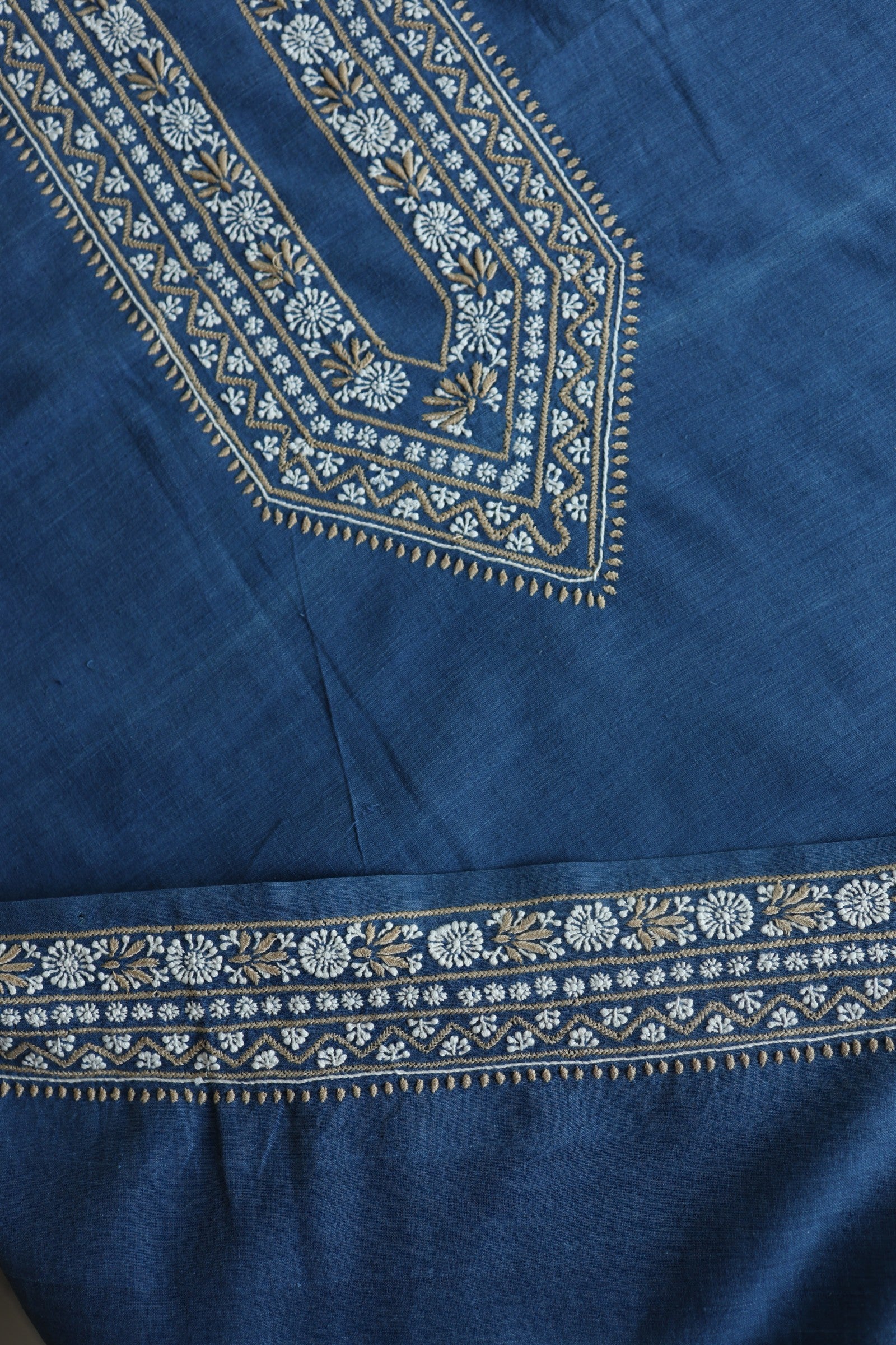 Our Men’s Chikankari Kurta, crafted from hand-spun khadi cotton. With a 3.5-meter fabric length, it features delicate pastel embroidery, perfect for all-year-round comfort and elegance.