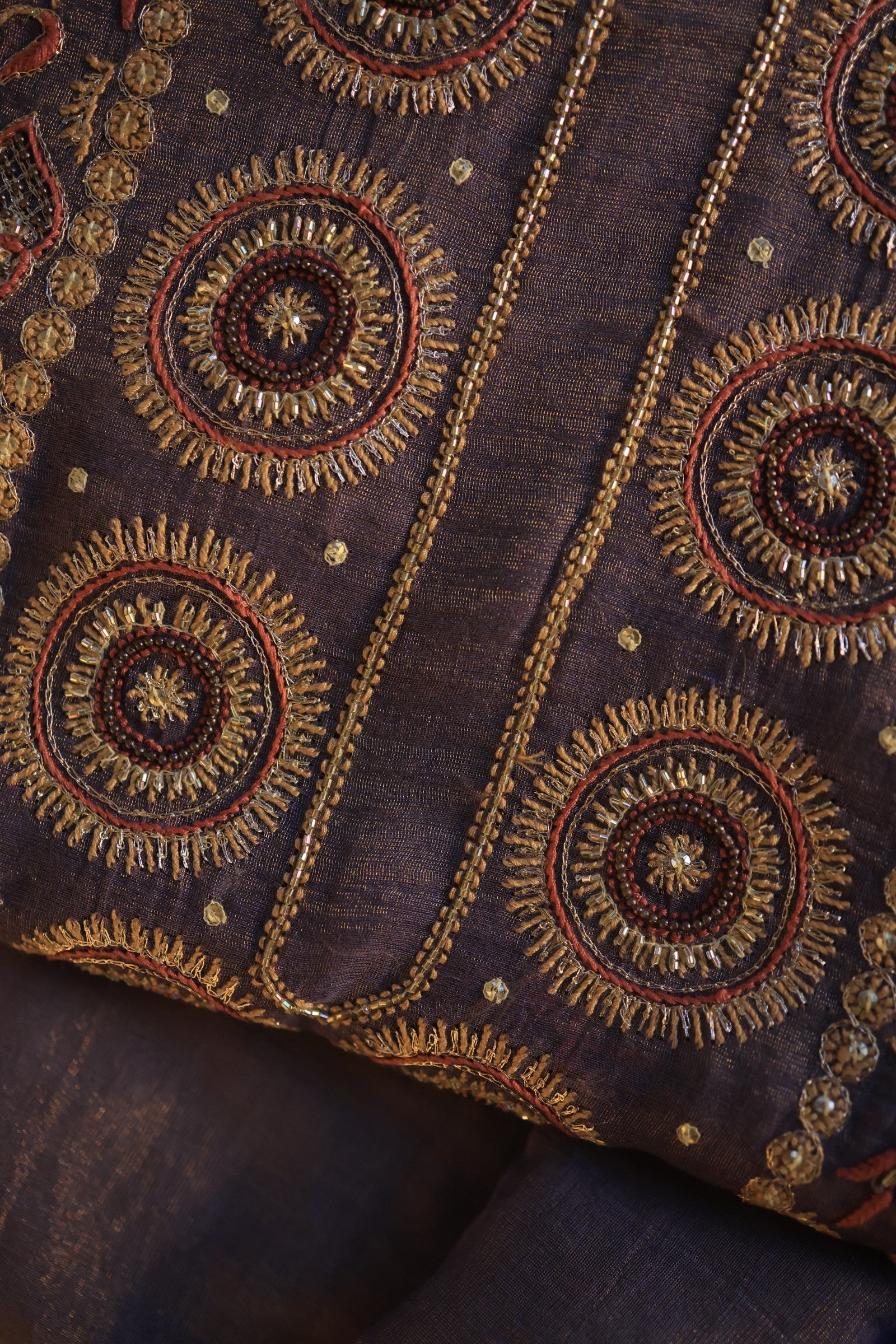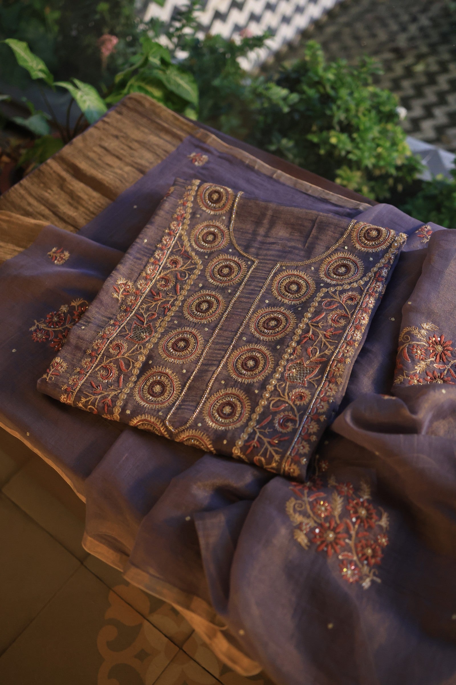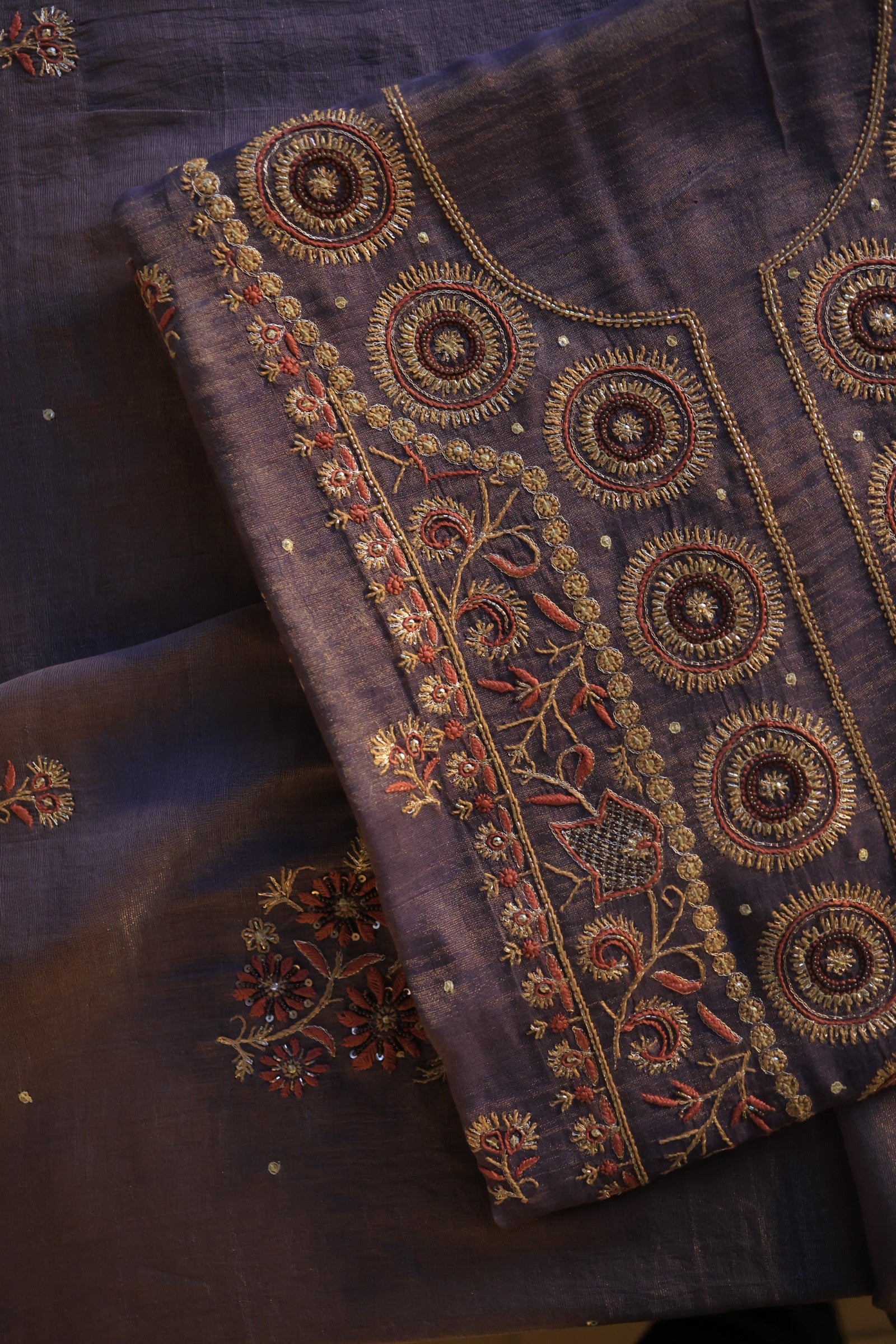 Dull Lavender Tissue Silk Chikankari Unstitched Fabric