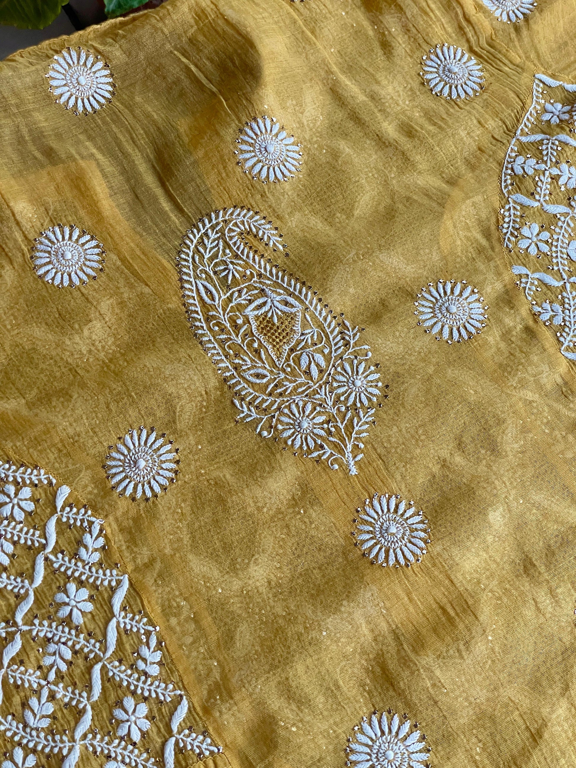 Each piece is crafted with intricate hand-embroidered Chikankari, featuring different traditional embellishments: