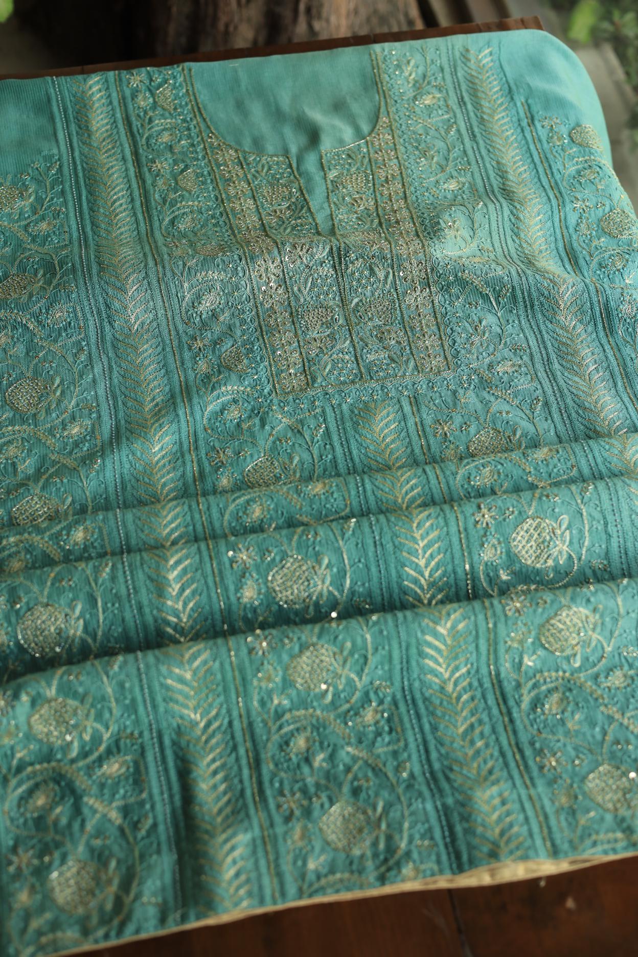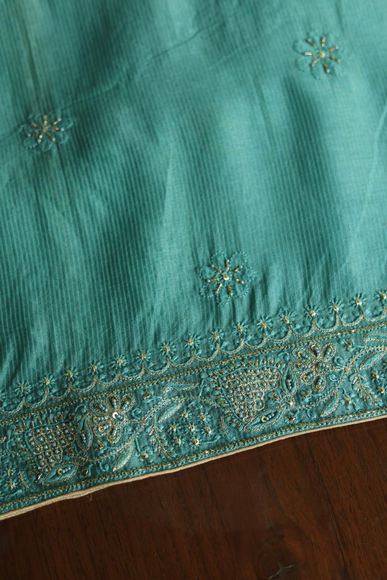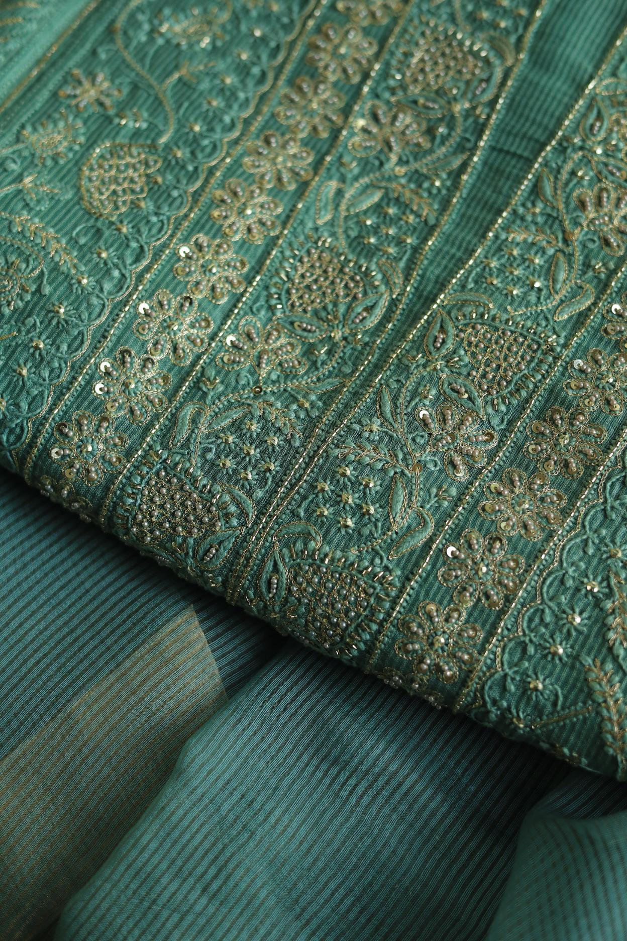 Green Maheshwari Chikankari With Ari Work Unstitched Kurta Dupatta Set