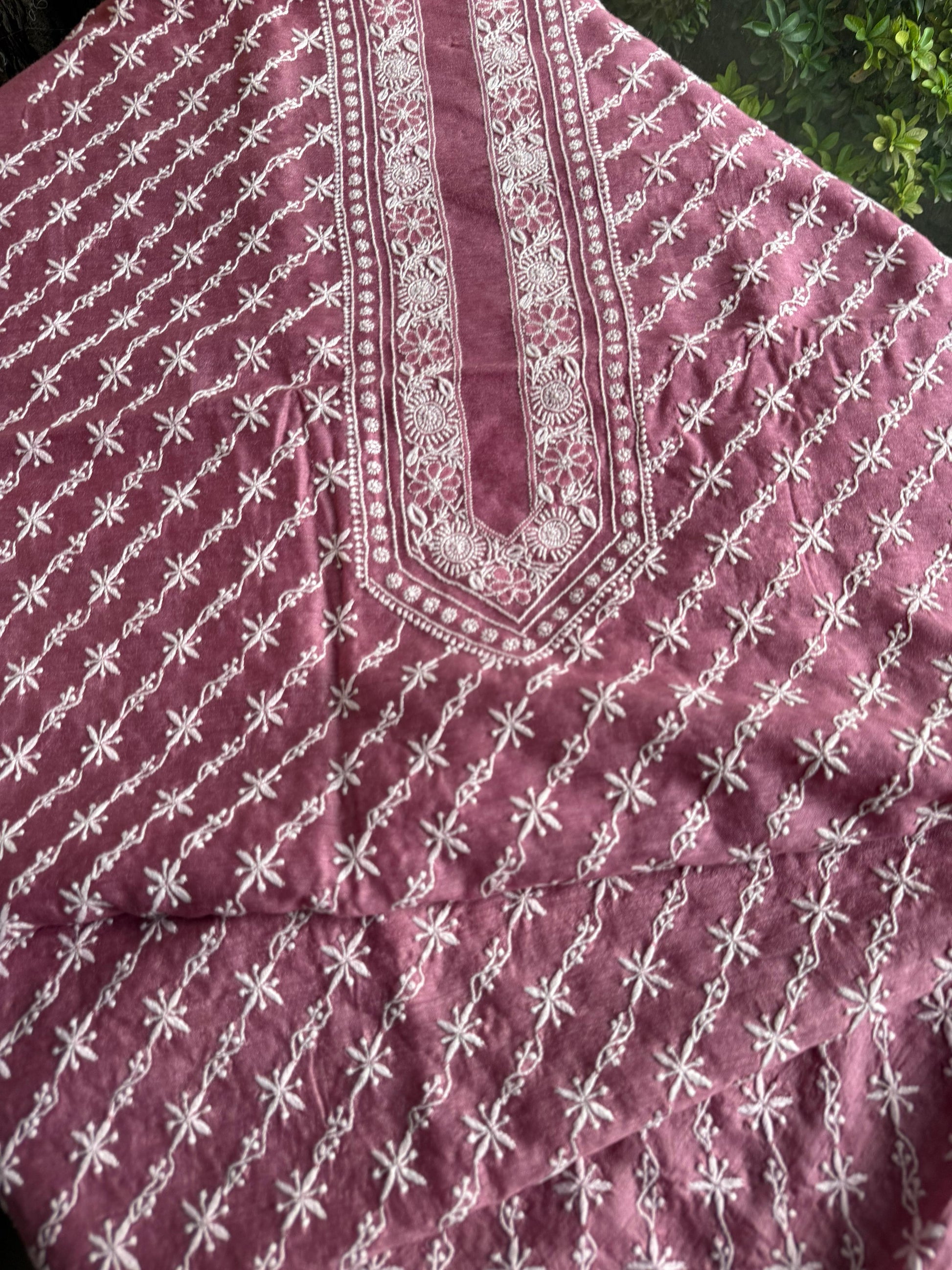 Pink Moonga Silk Chikankari Men’s Kurta Fabrics