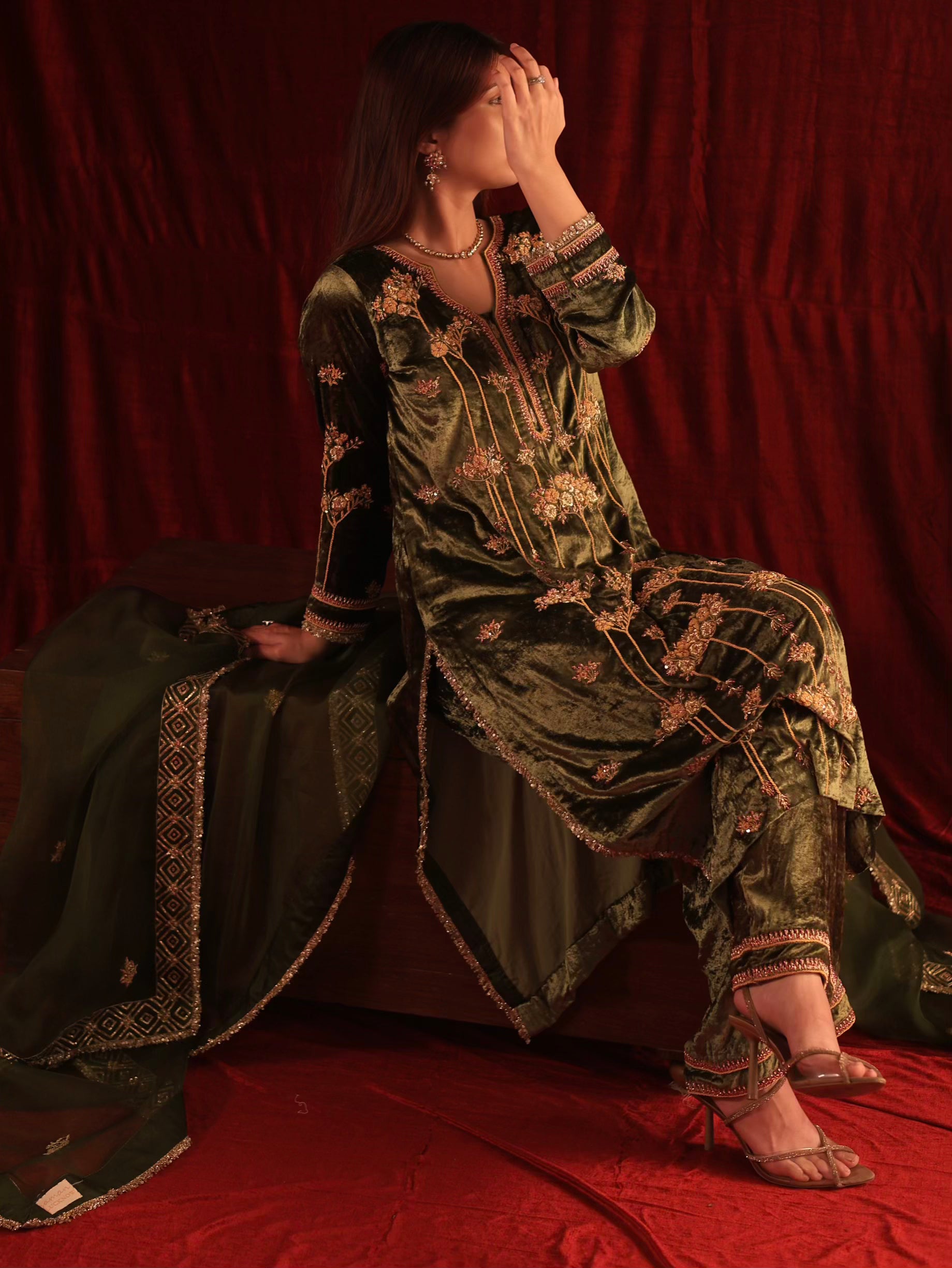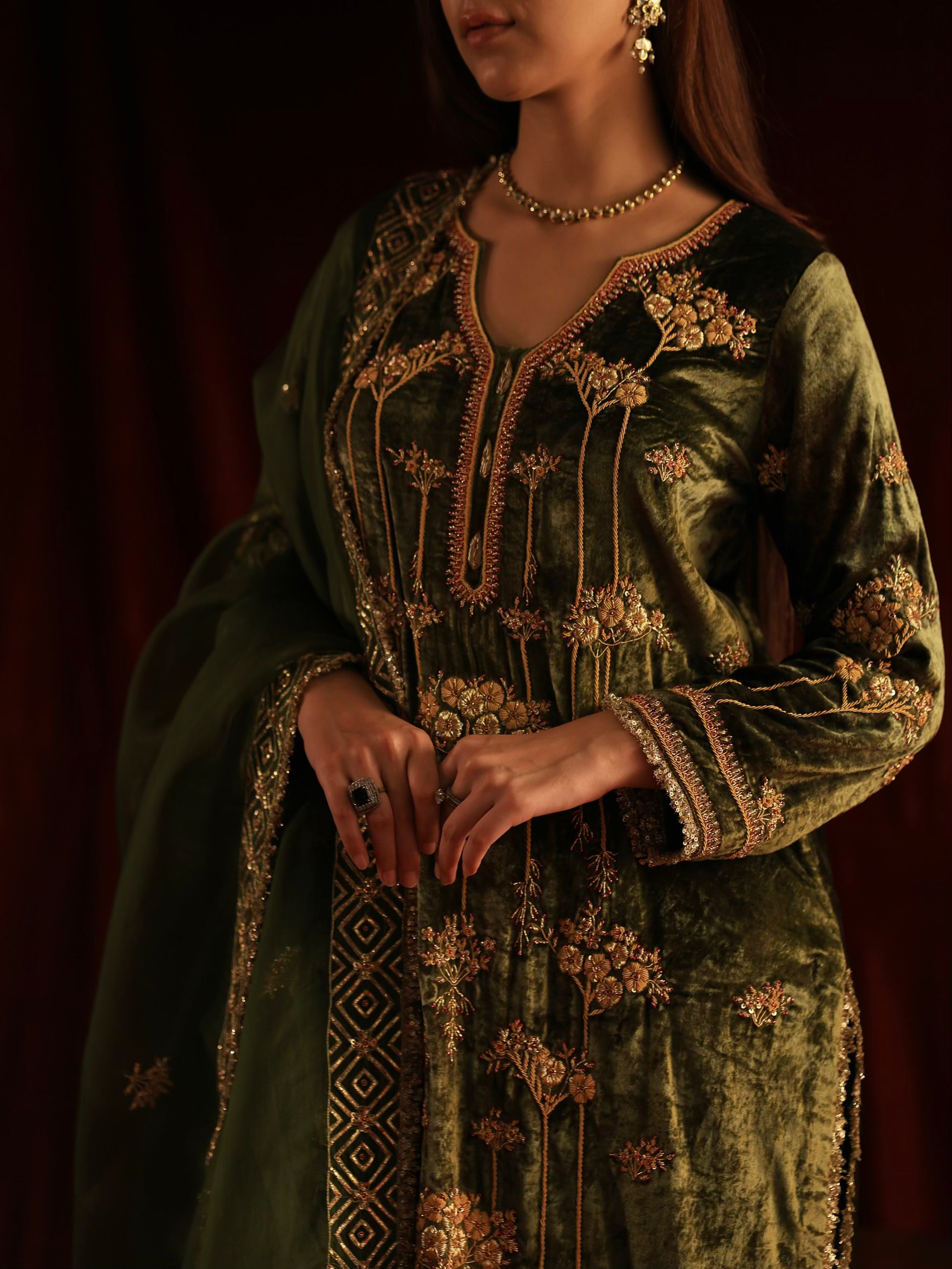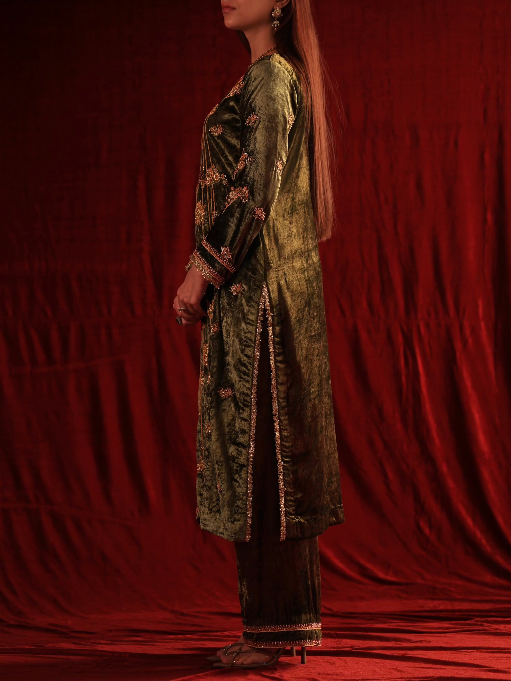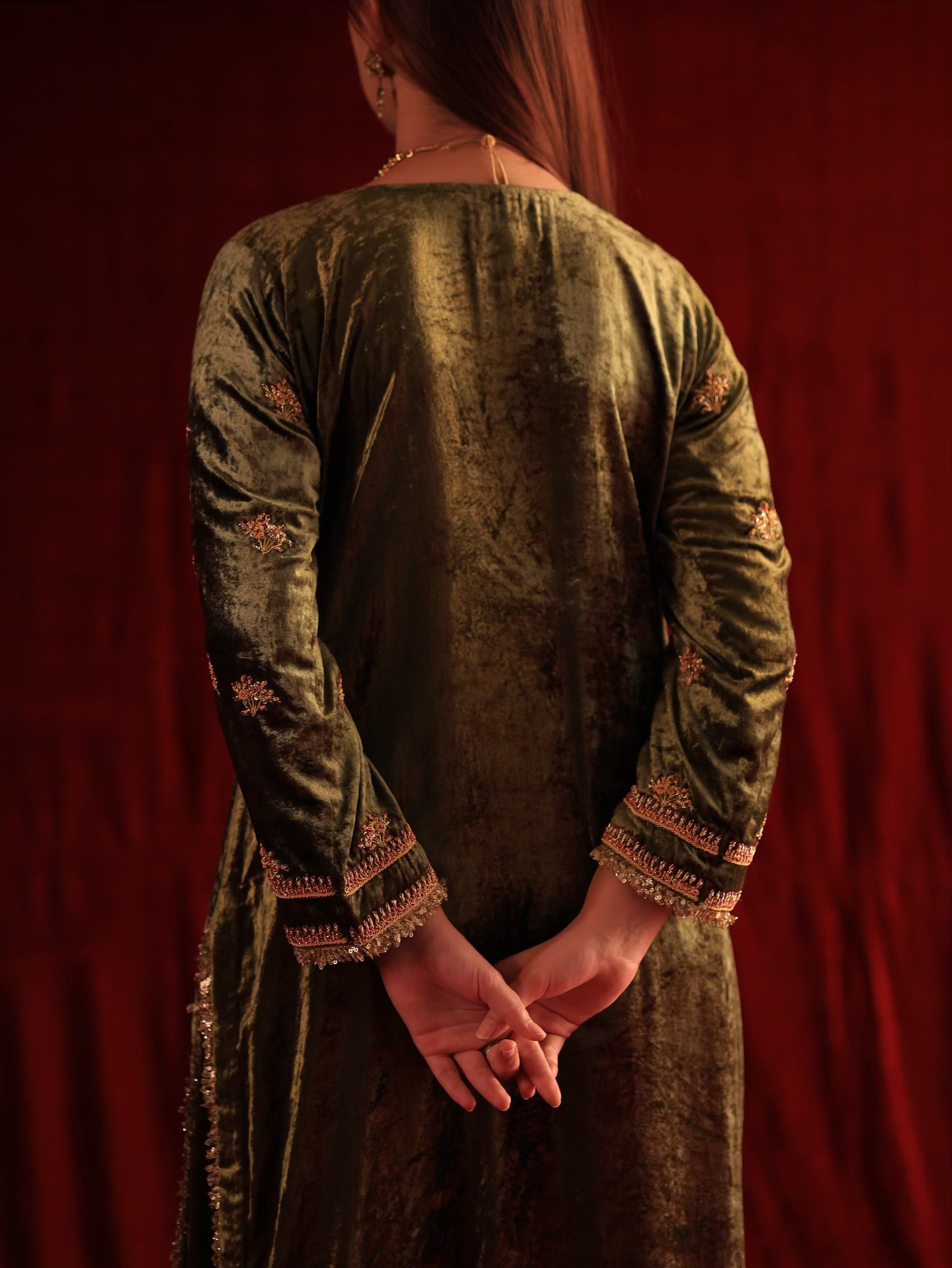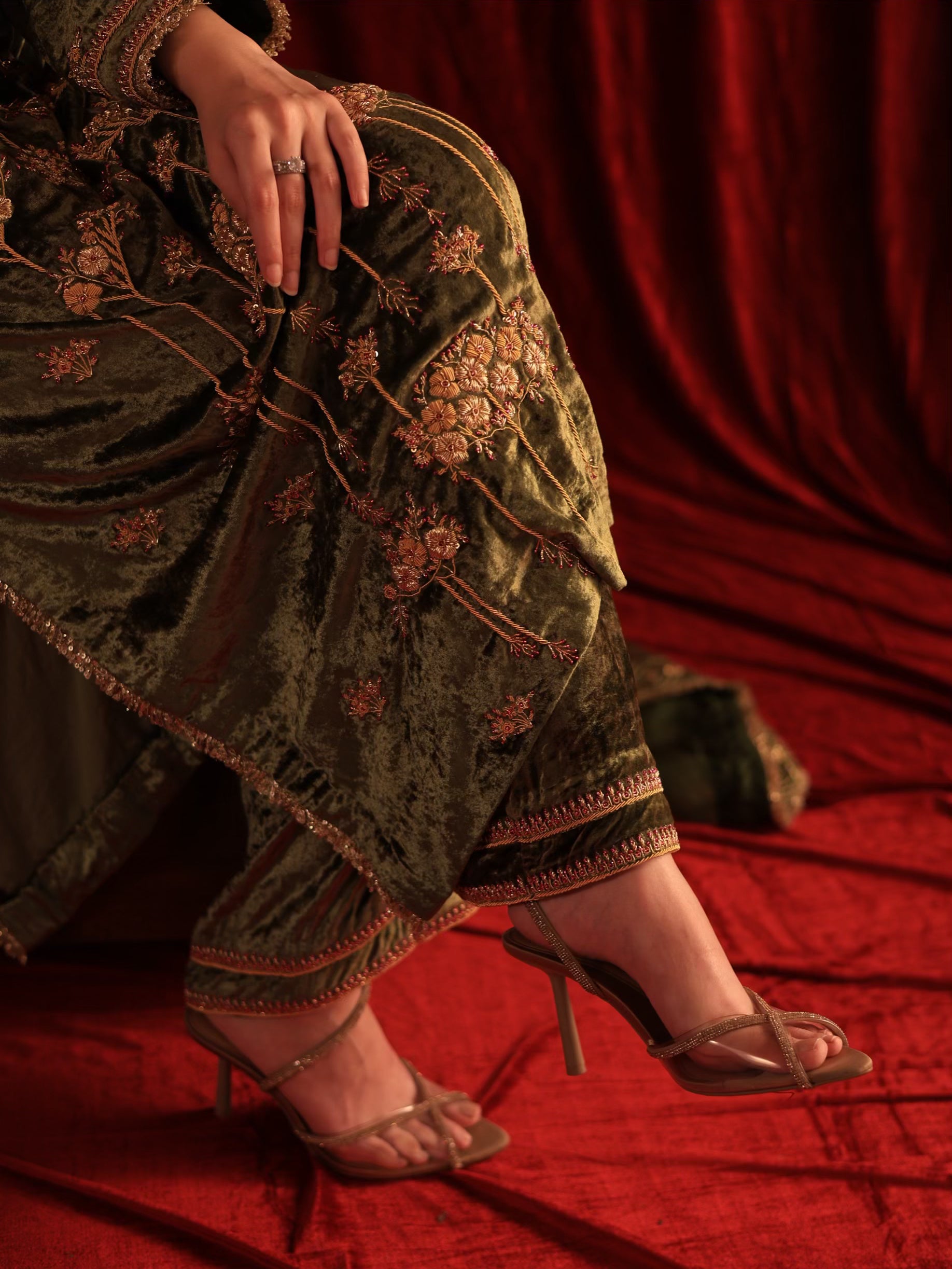 Greenish Brown | Saman Velvet Ready To Wear Kurta Set