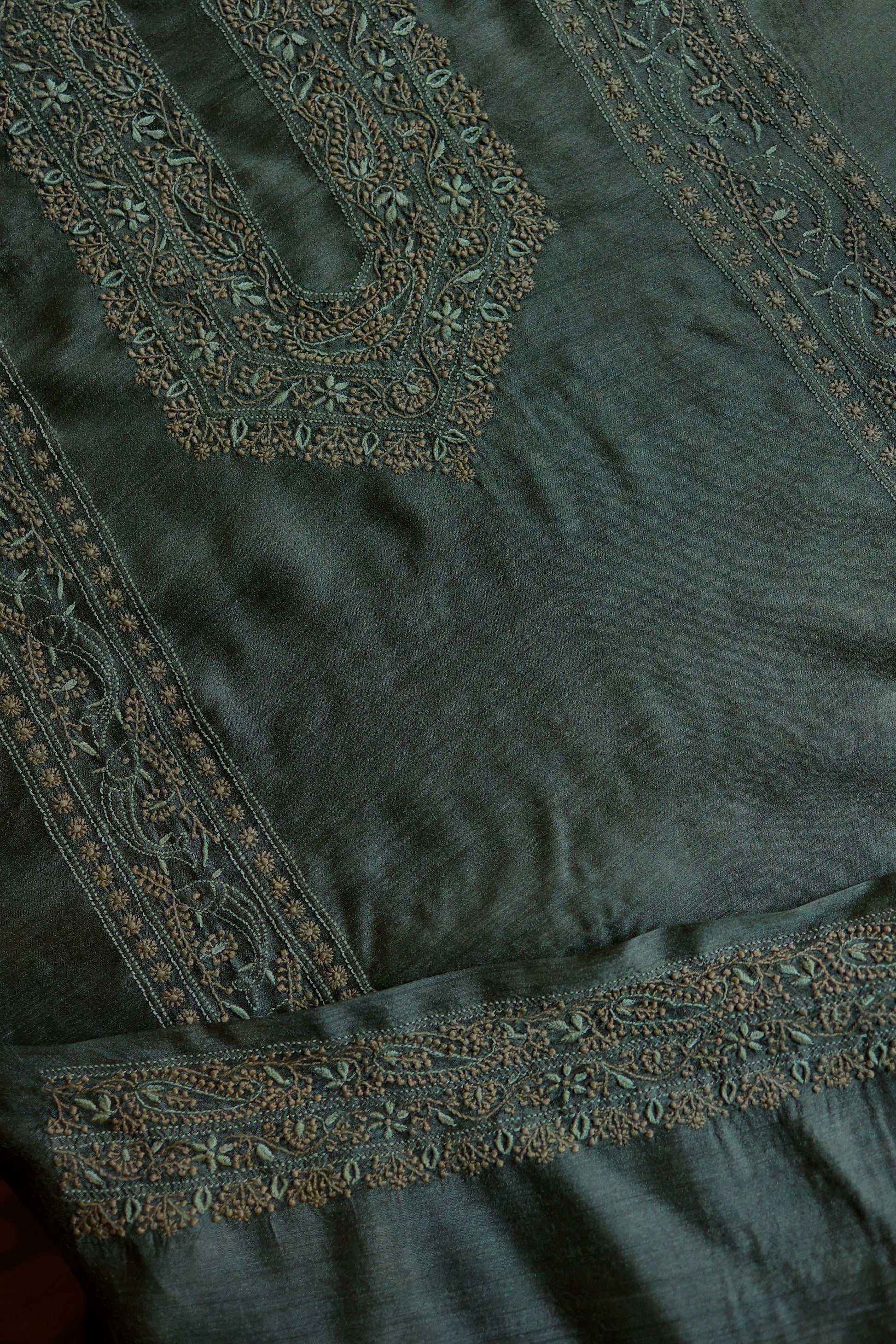 Green Moonga Silk Chikankari Men’s Kurta Fabric