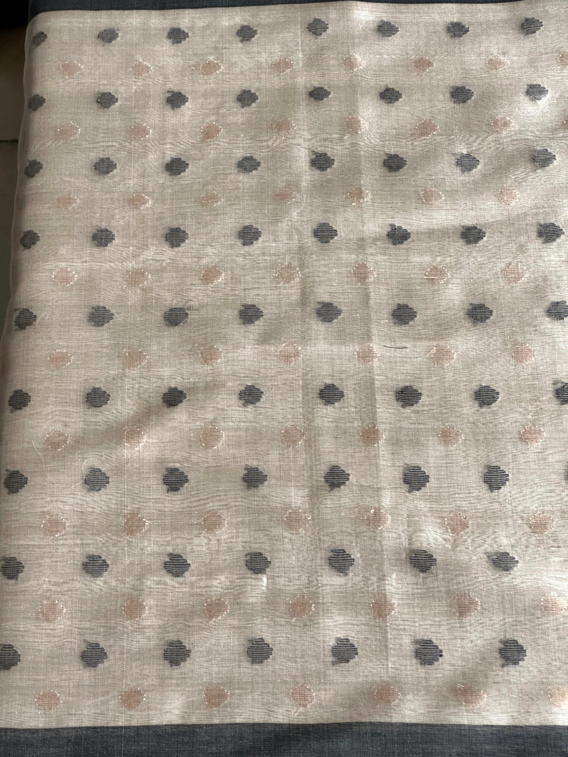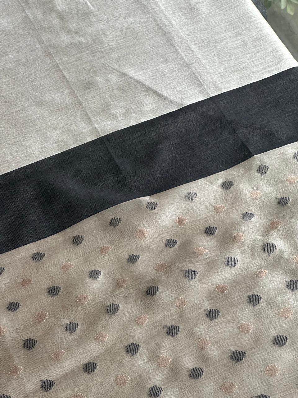 The saree is designed with a contrasting matte Black border that perfectly balances the brightness of the grey, making it suitable for both festive and semi-formal occasions. The overall weave pattern offers a traditional charm while still keeping the saree lightweight and comfortable to drape.