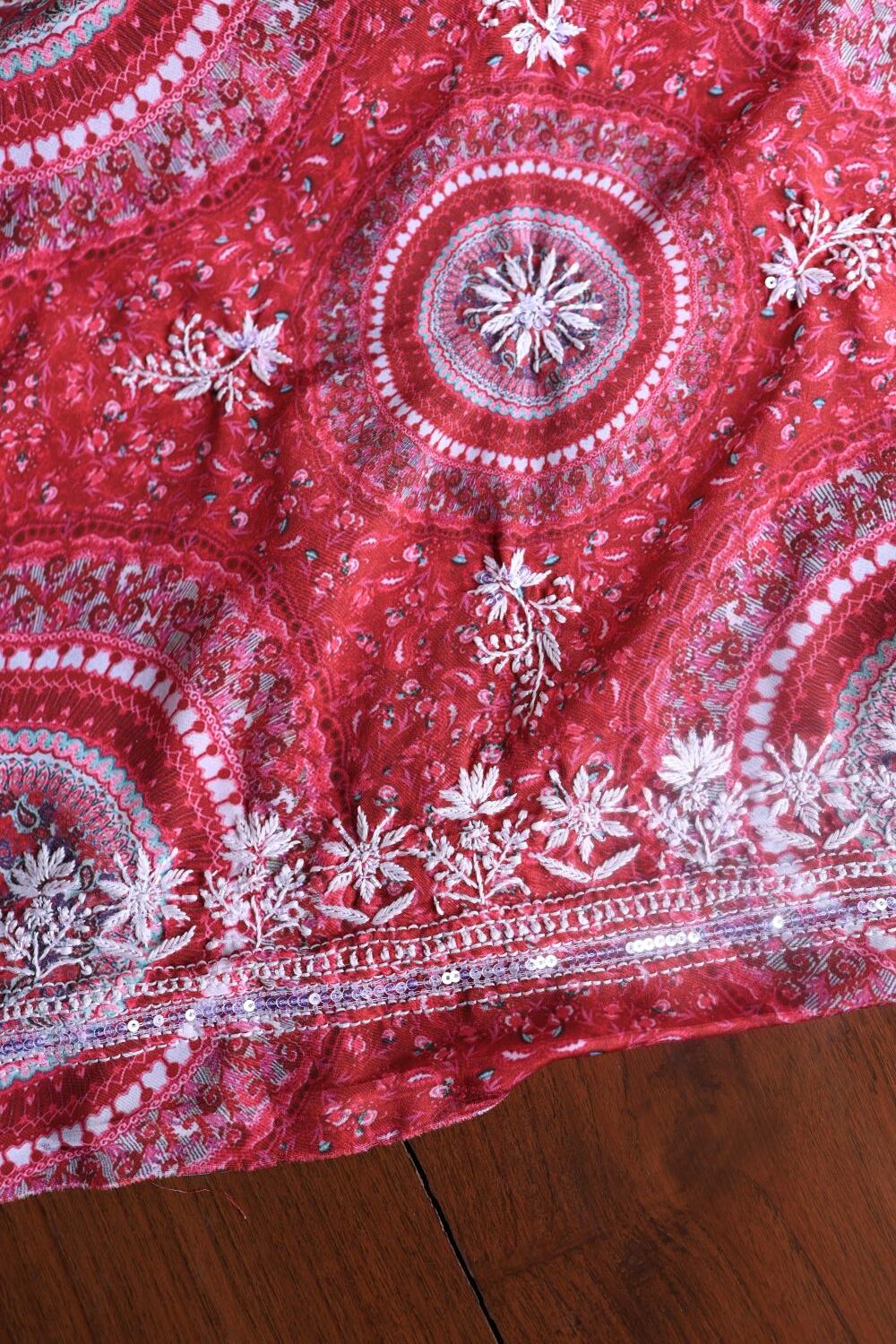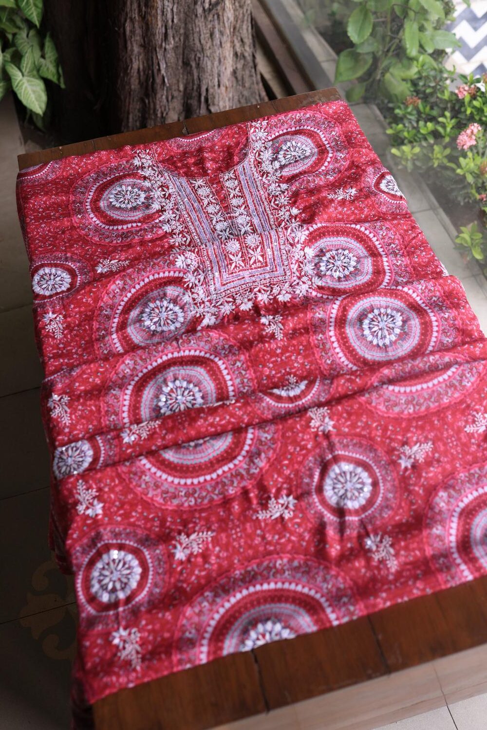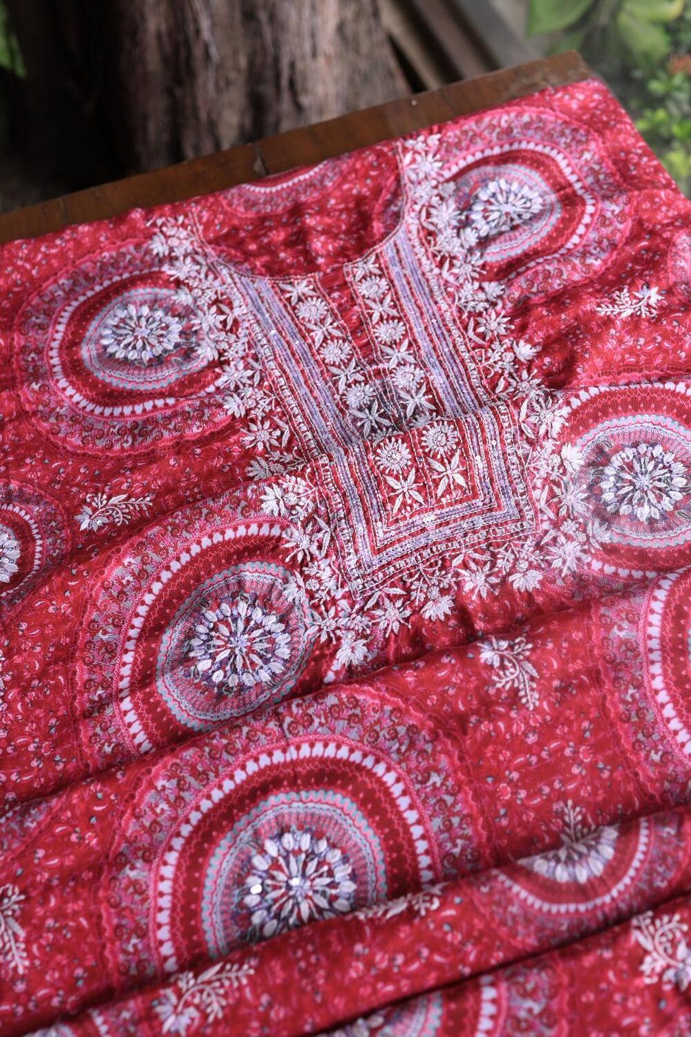 Hot Pink Muslin Chikankari Unstitched Kurta Fabric