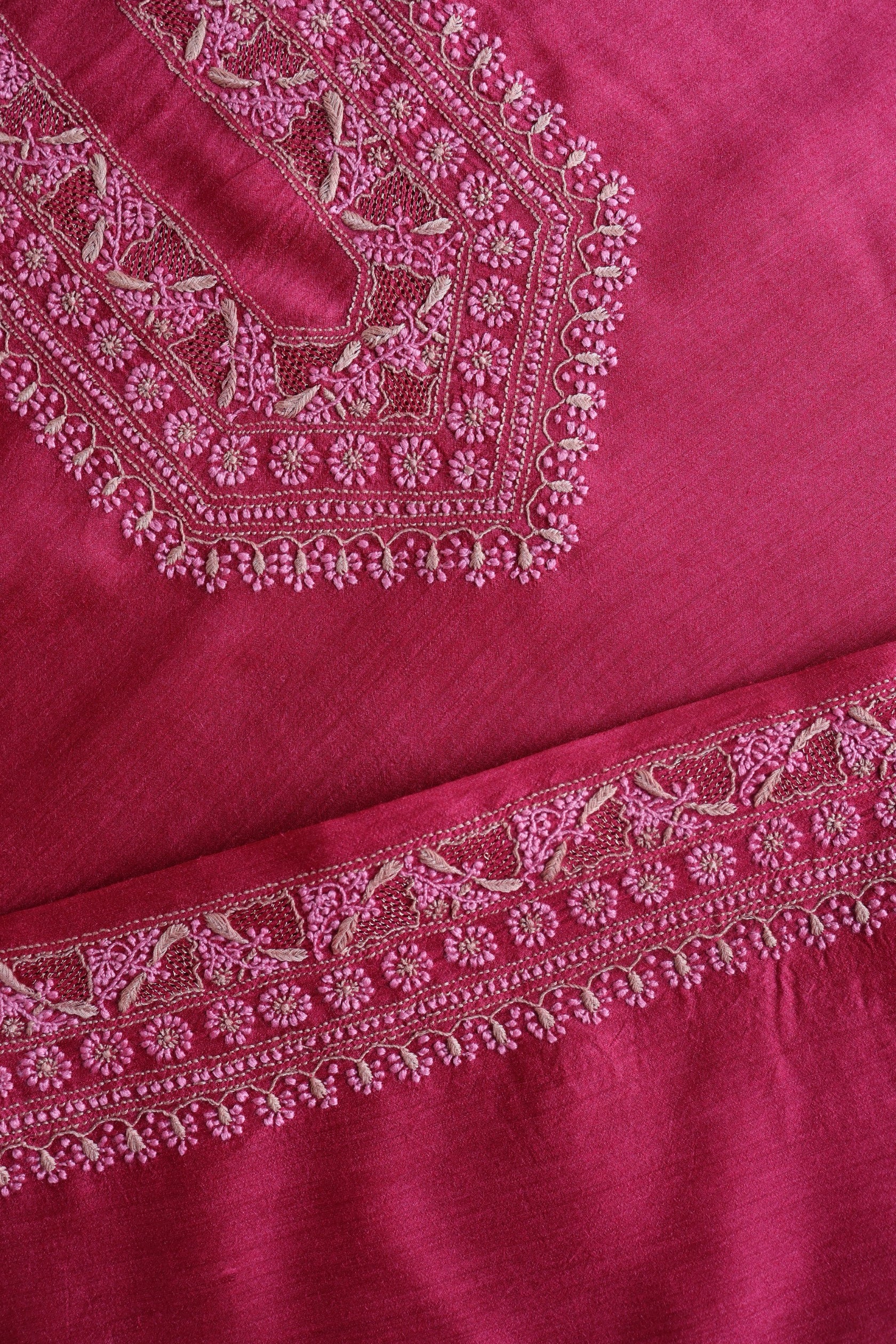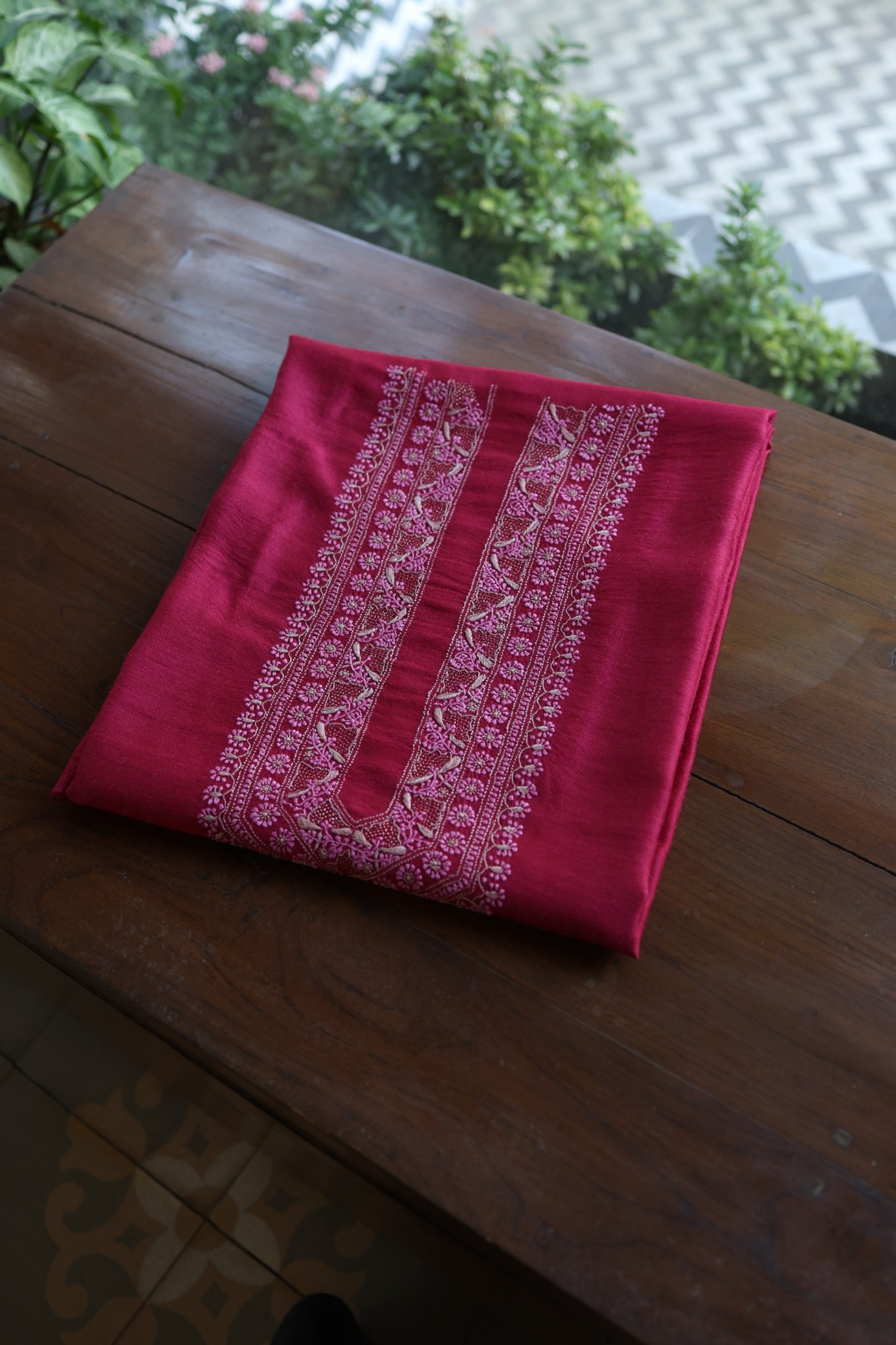 Hot Pink Shade Moonga Silk Chikankari Unisex Kurta Fabrics