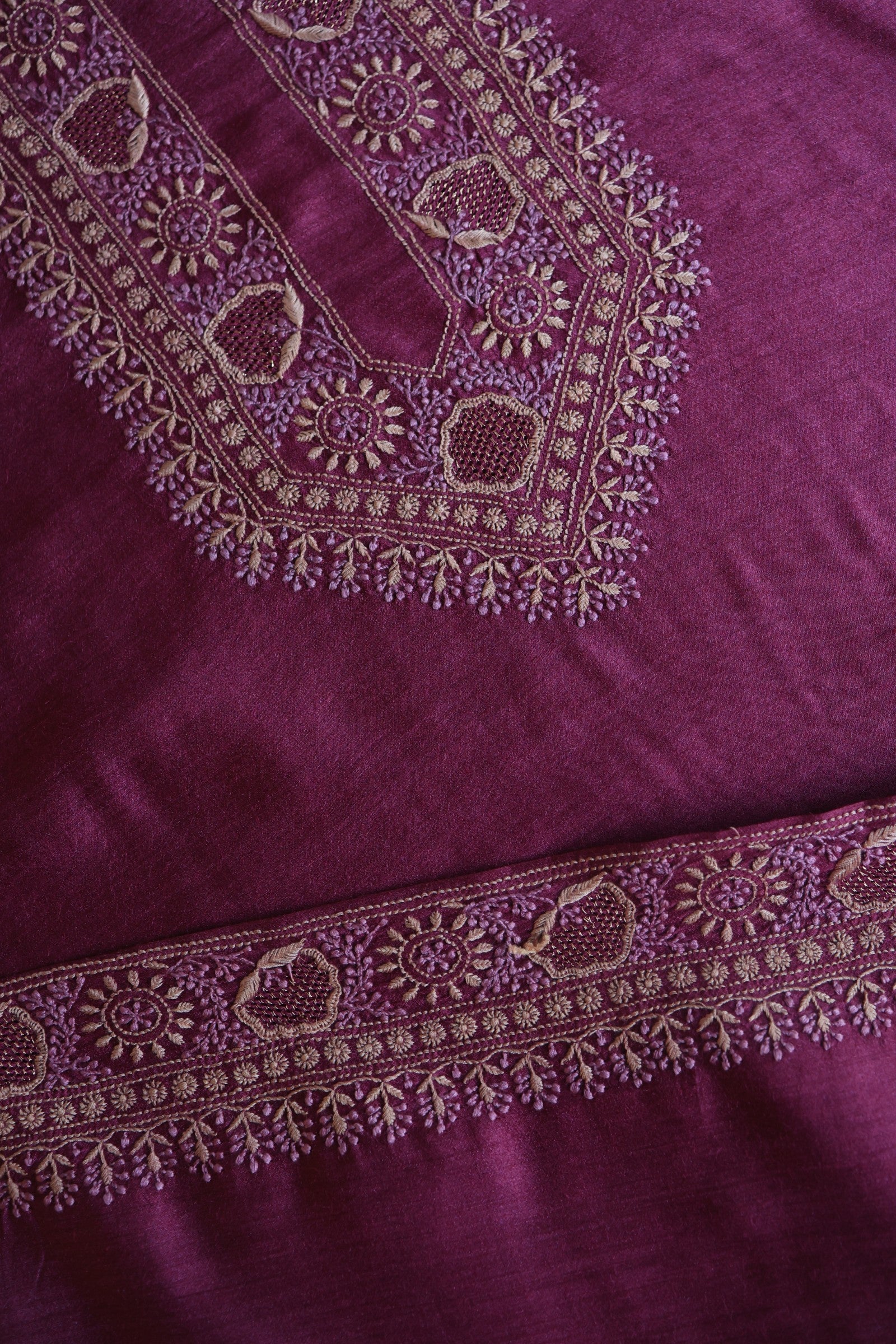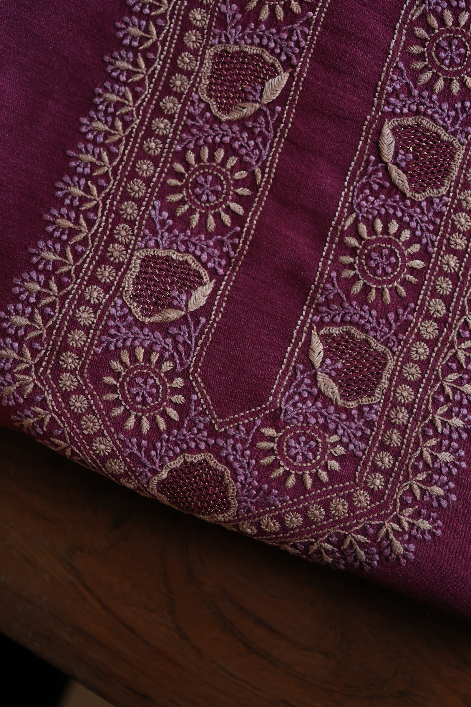 Plum Purple Shade Moonga Silk Chikankari Unisex Kurta Fabrics