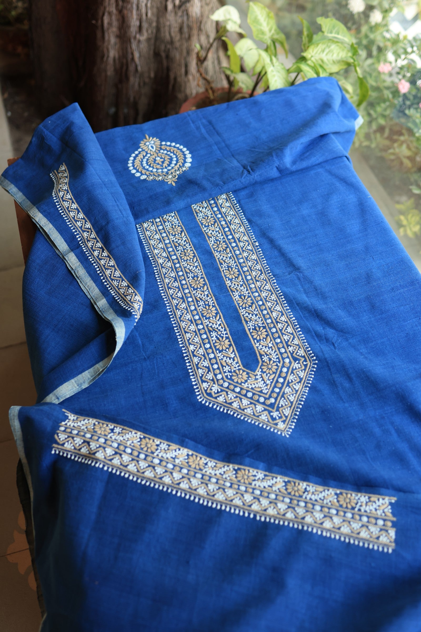 Ink Blue Malkha Handspun Khadi Kurtas Unisex Fabric
