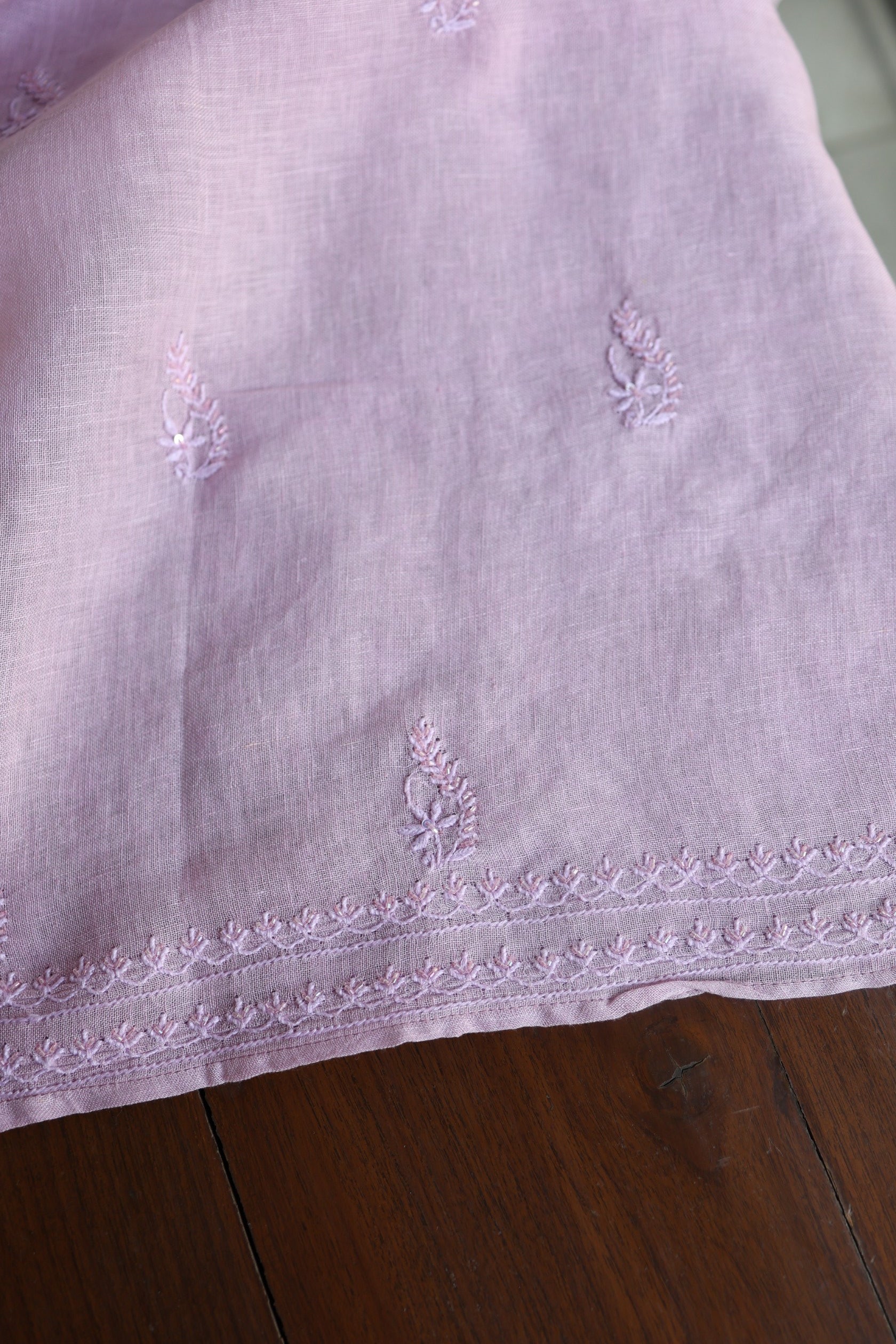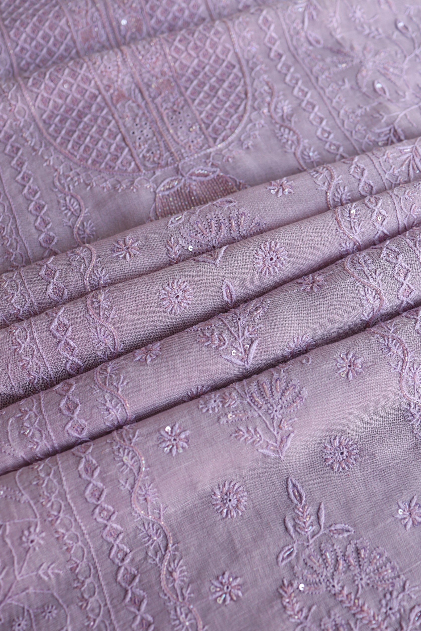 Lavender Shade Rasm Silk Chikankari With Ari Work Unstitched Kurta Dupatta Set