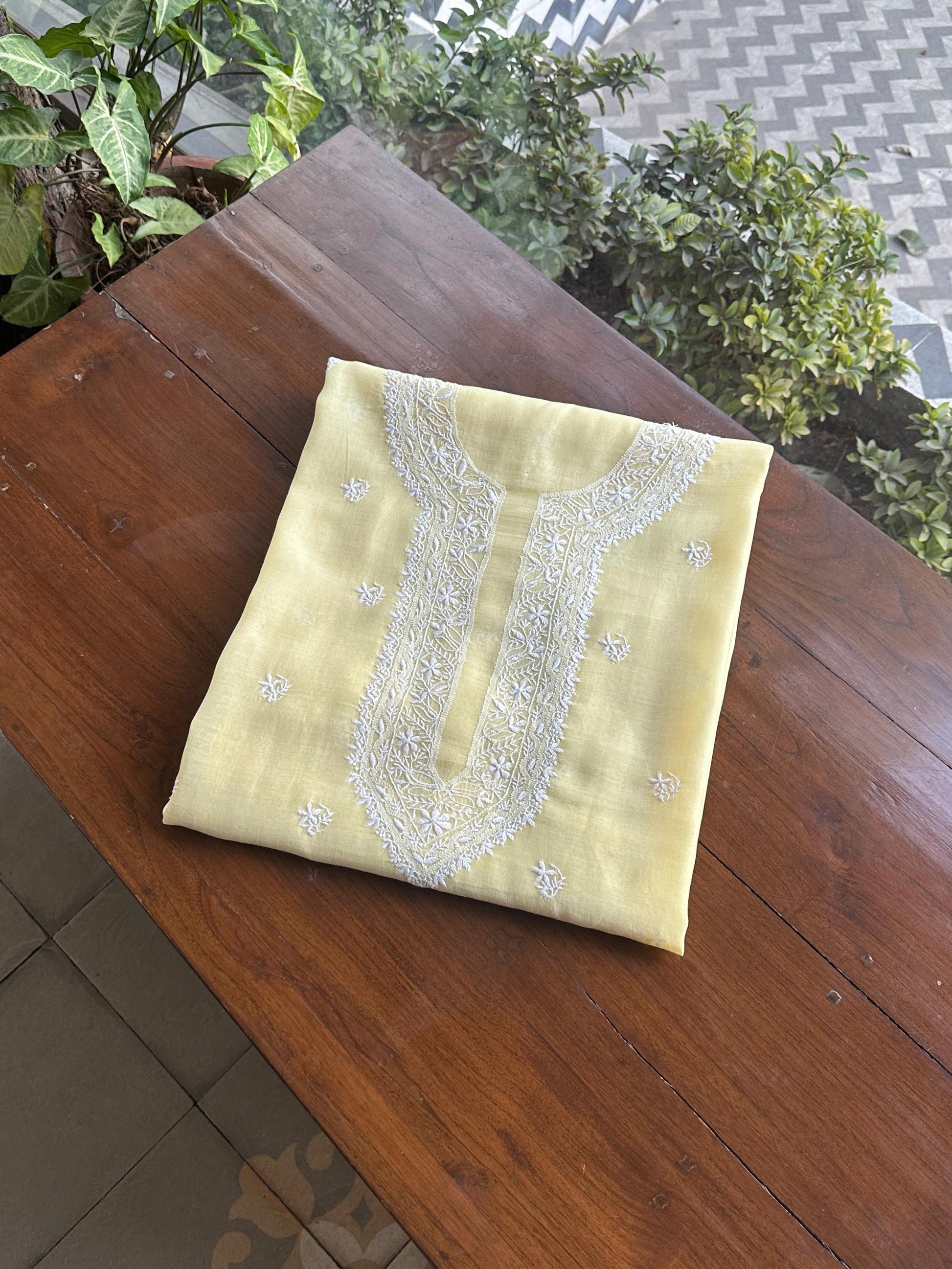Lemon Yellow Mulmul Chikankari Unstitched Men's Kurtas Fabric