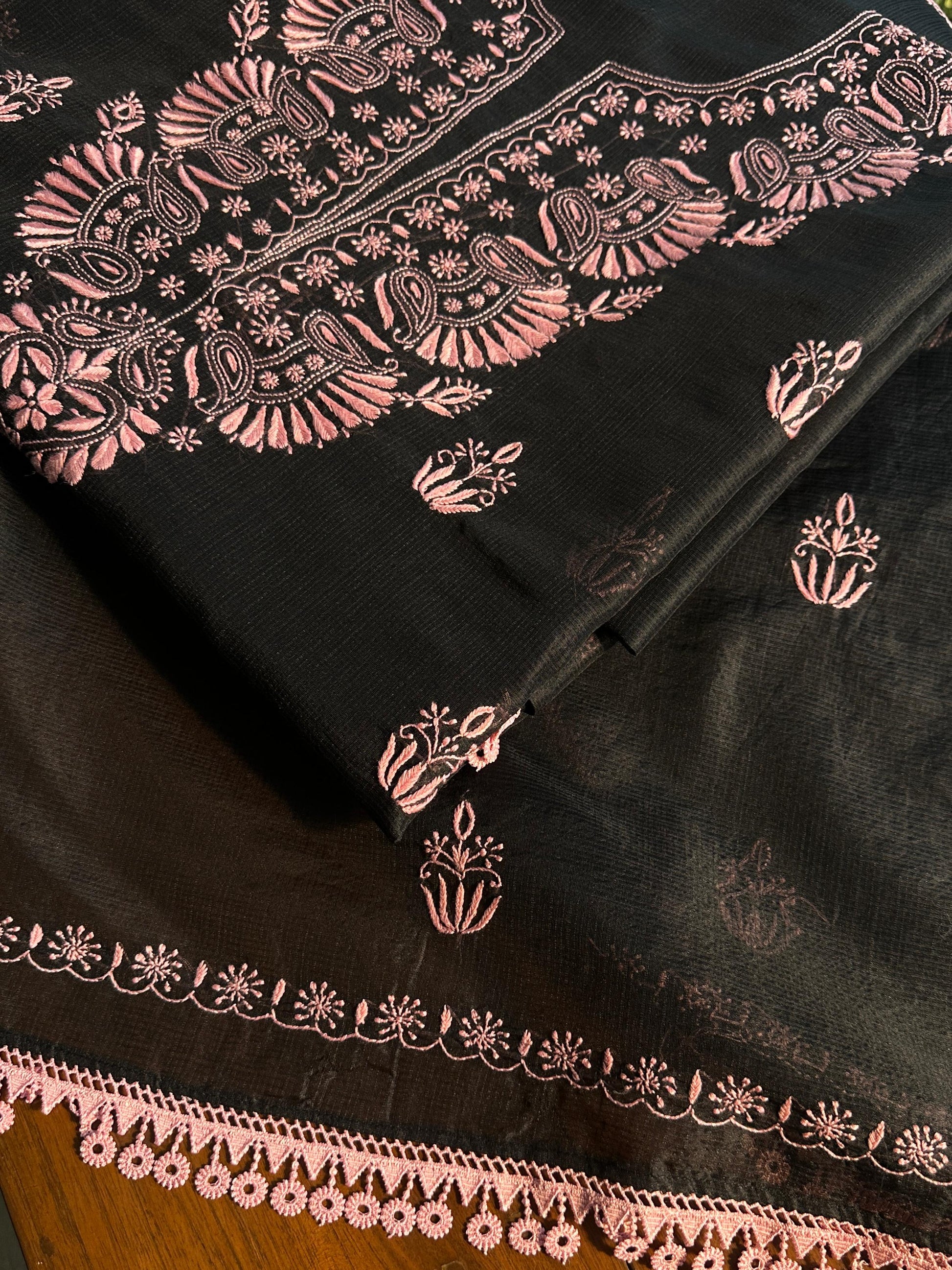 Breathe easy in style with our Kota Chikankari Unstitched Kurta Dupatta Set. Crafted from airy Kota fabric and adorned with delicate with Chikankari embroidery, this ensemble blends traditional artistry with everyday elegance.
