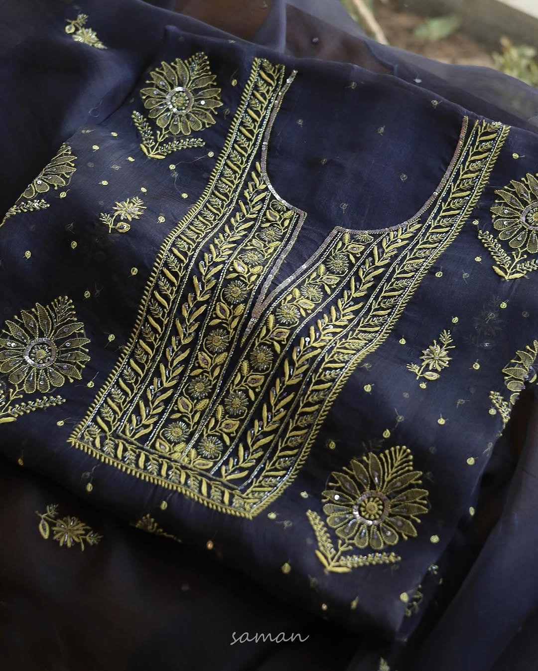 Each piece is crafted with intricate hand-embroidered Chikankari, featuring different traditional embellishments: