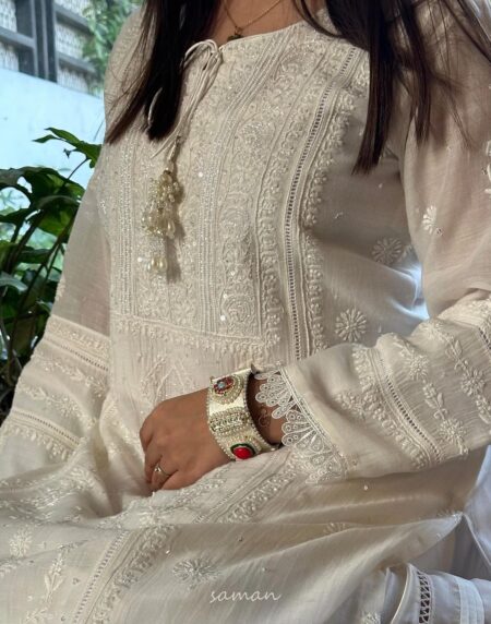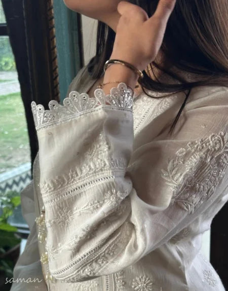 Mulmul Pearl White Chikankari Ready to Wear Kurta Set