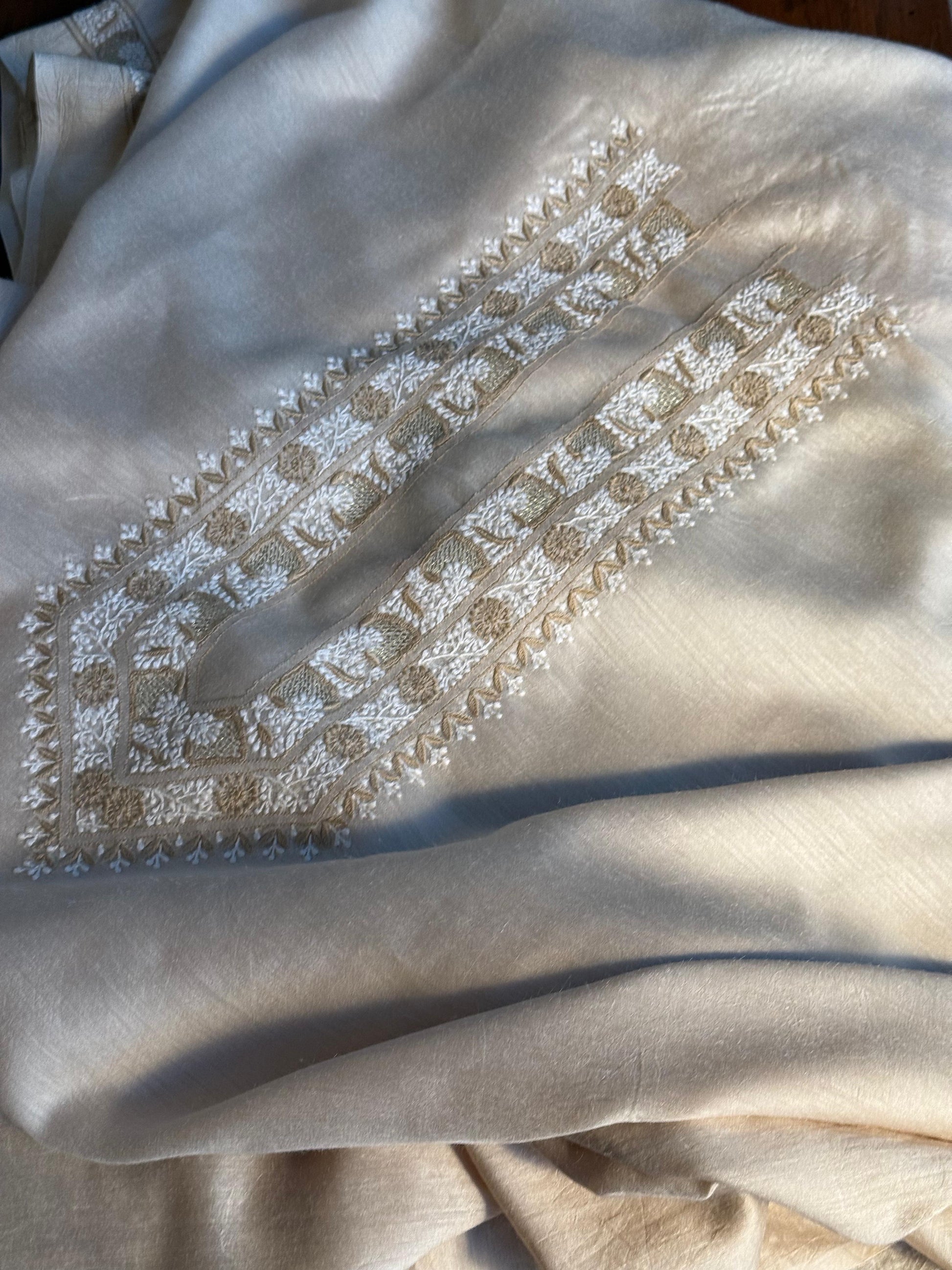 Natural Beige Moonga Silk Chikankari Men’s Kurta Fabrics