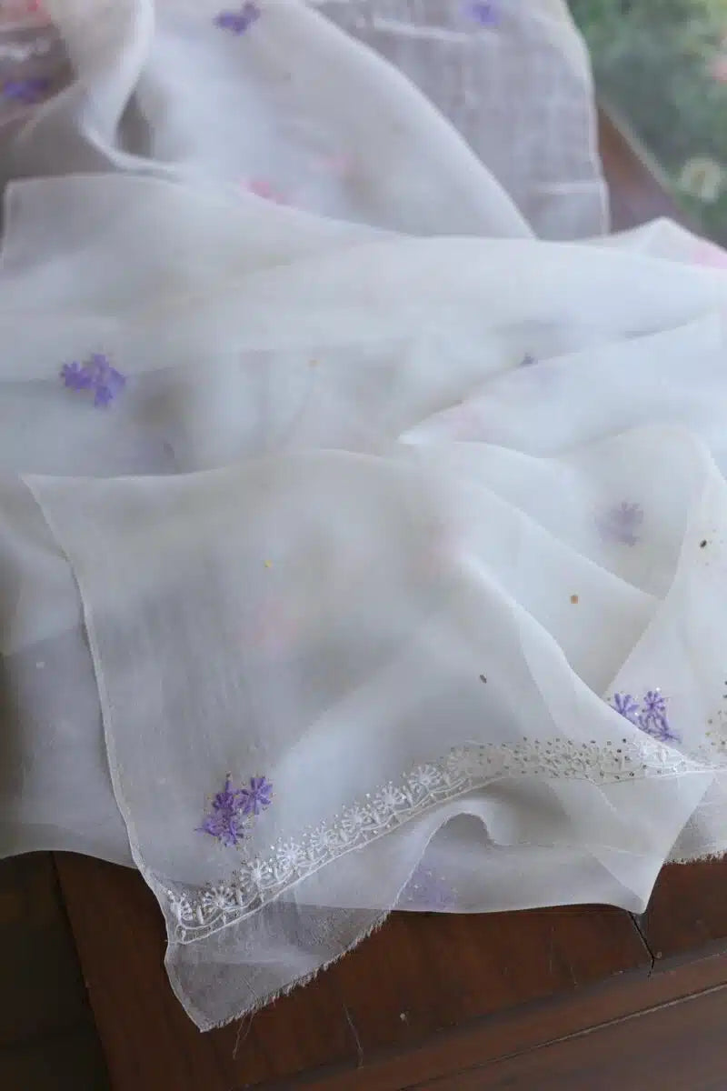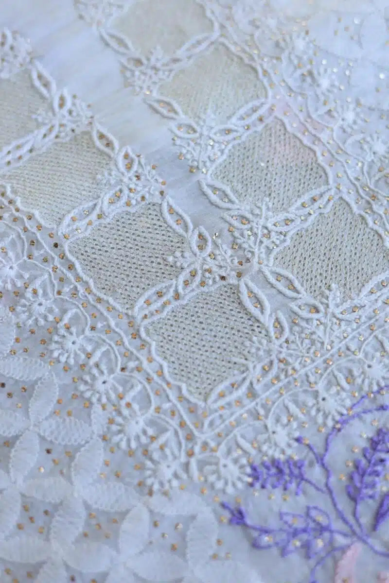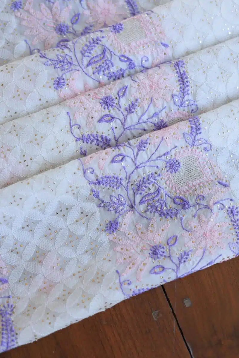 Noor Organza Silk Chikankari With Mukaish Kamdani Fabric