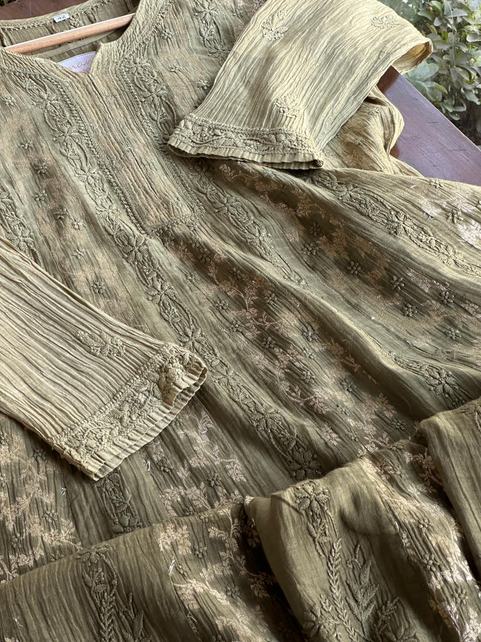 Mehndi Green Chanderi Kurta – Ready to Wear