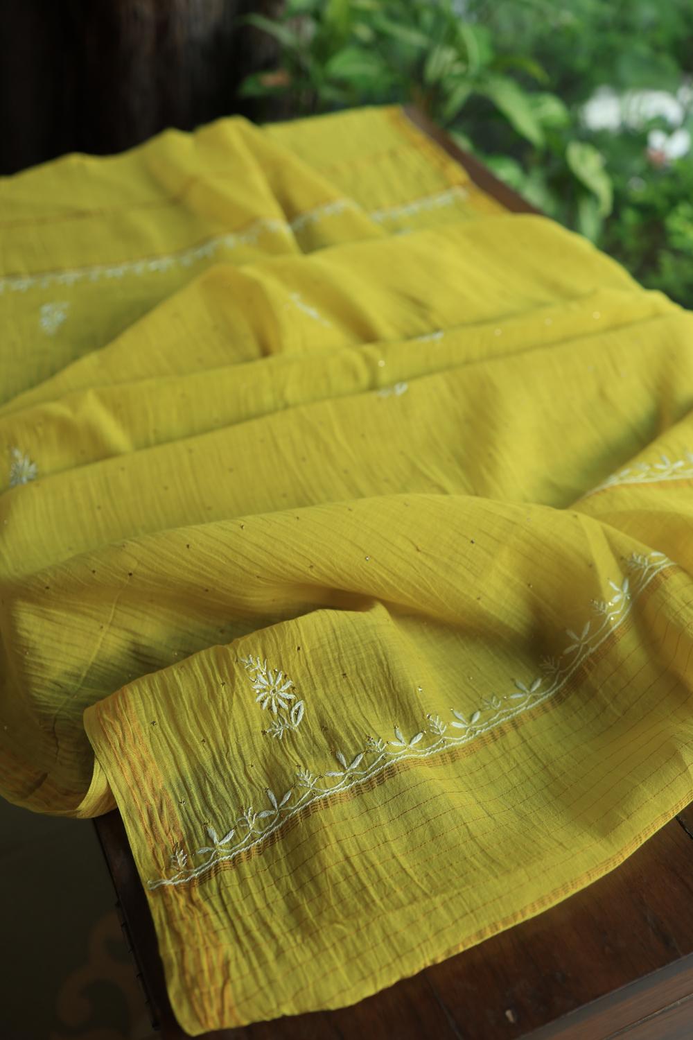 This soft malmal kurta features intricate Chikankari embroidery accentuated with delicate Mukaish work. Lightweight and breathable, the fabric offers all-day comfort with a graceful drape. Paired with a beautifully detailed mal dupatta, also adorned with Chikankari and Mukaish embellishments, this ensemble brings a refined and minimal look—perfect for both casual charm and intimate gatherings.