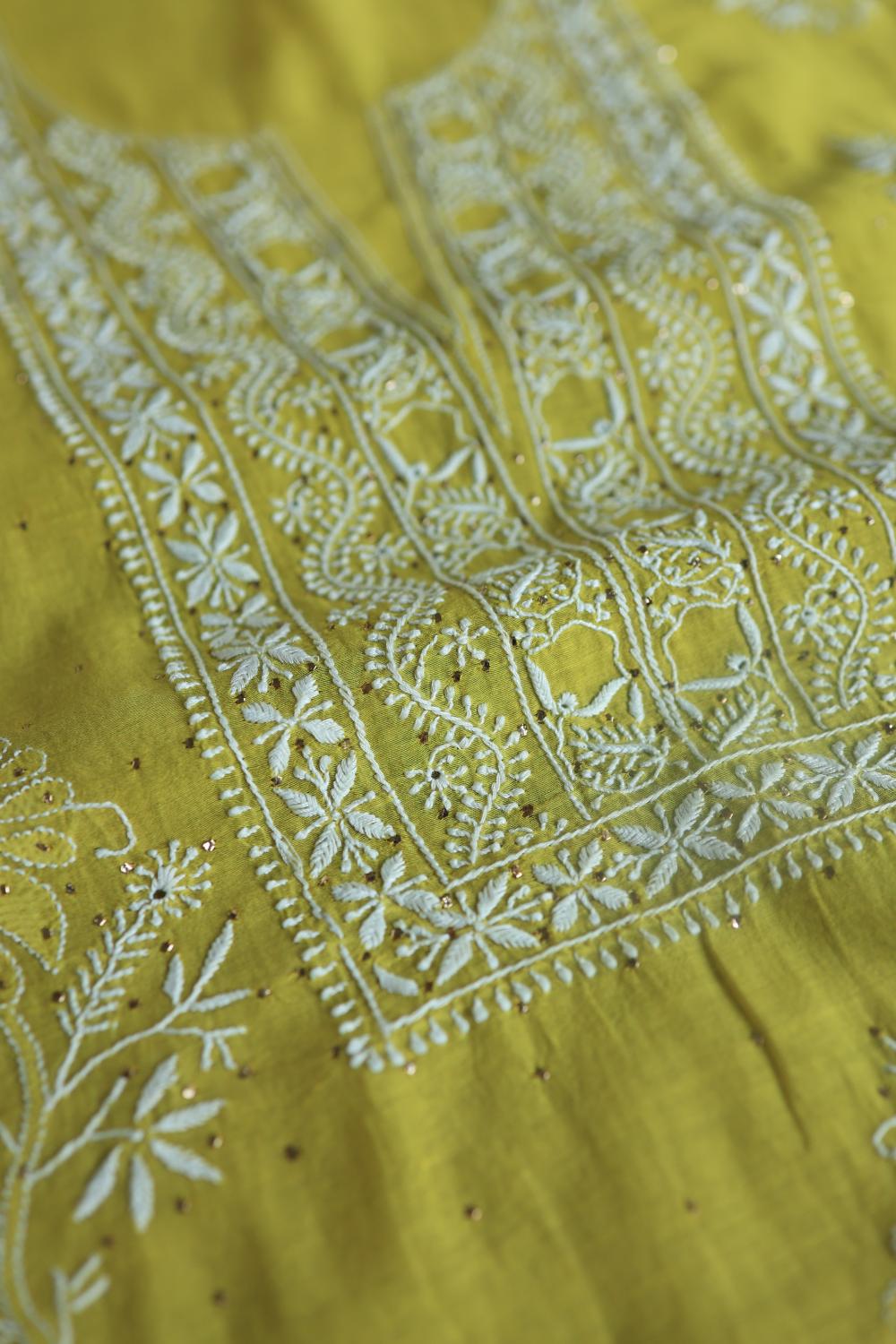Each piece is crafted with intricate hand-embroidered Chikankari, featuring different traditional embellishments: