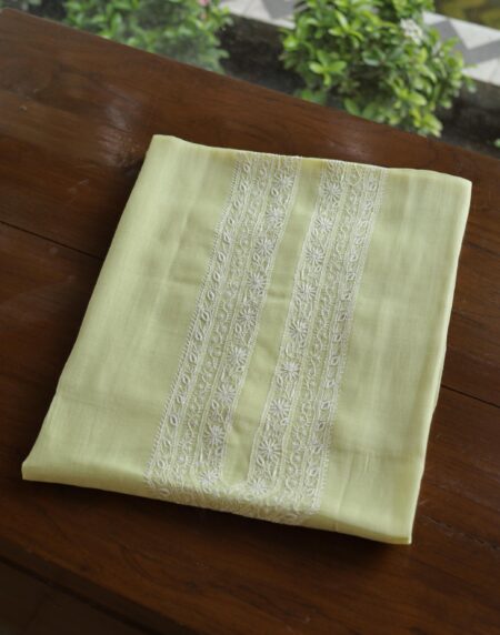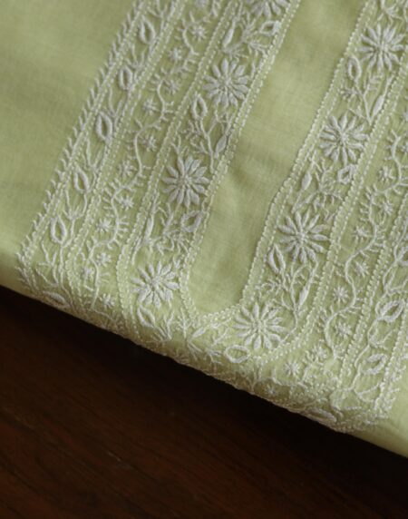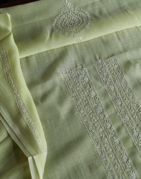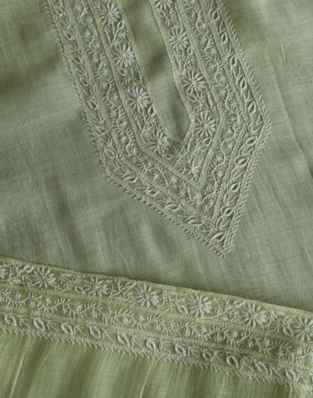 Olive Green Mulmul Chikankari Unstitched Men's Kurtas Fabric
