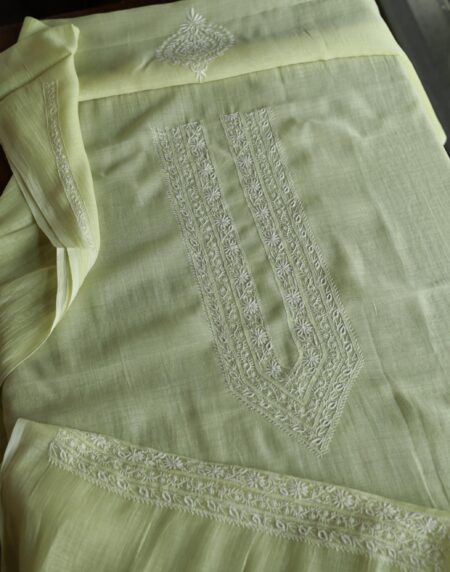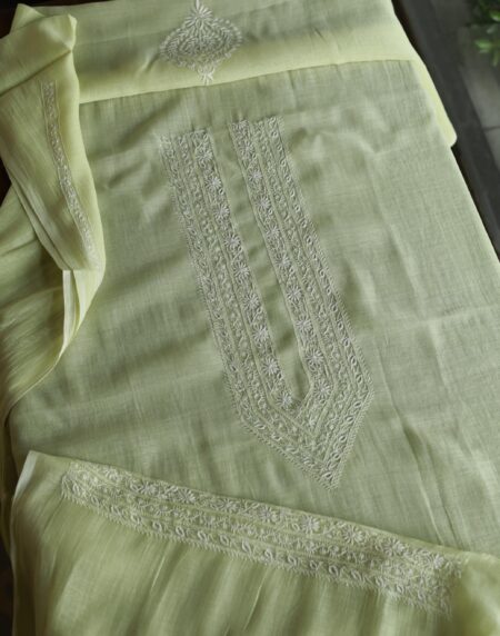 Each piece is crafted with intricate hand-embroidered Chikankari, featuring different traditional embellishments: