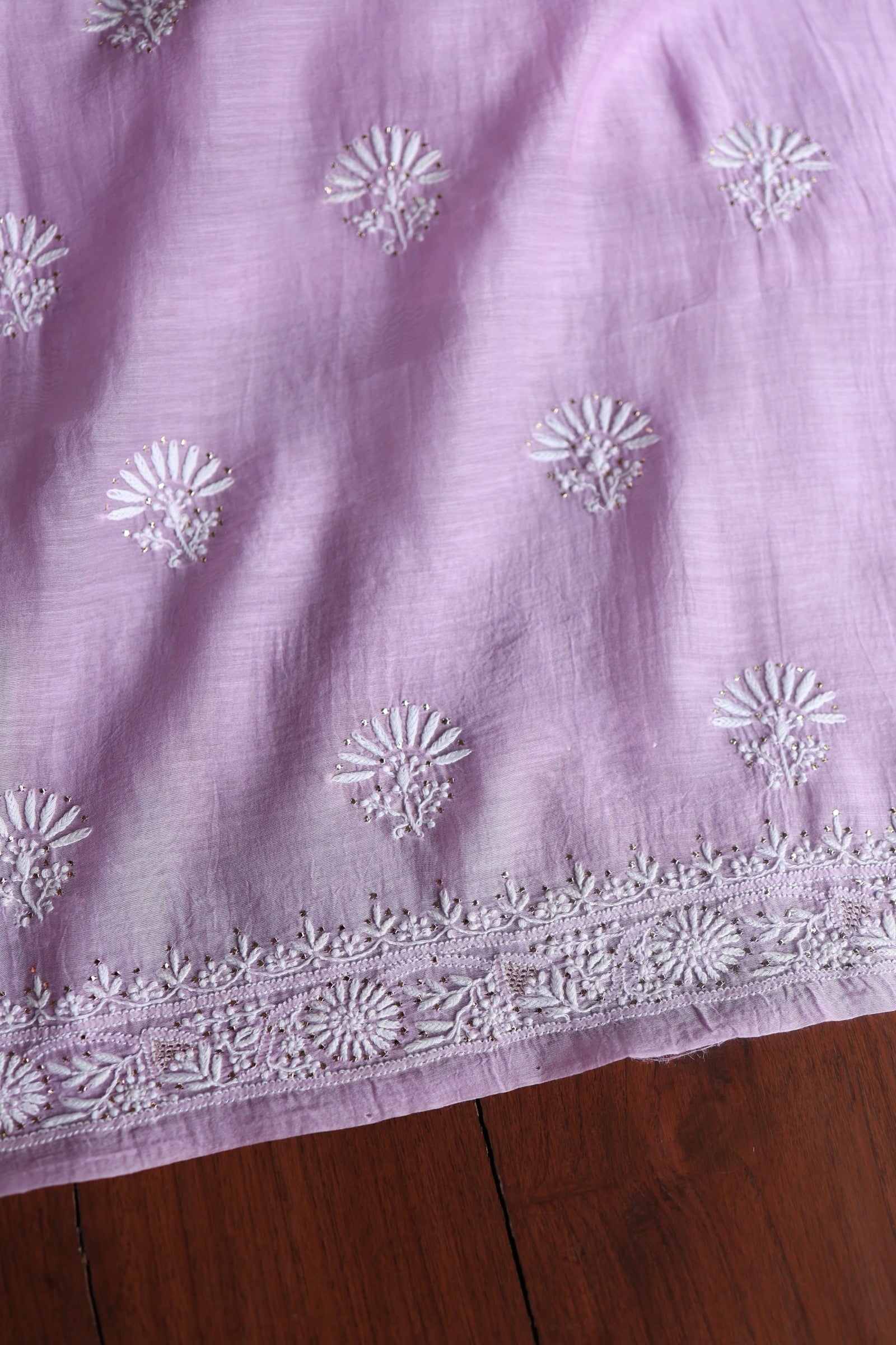 Opera Mauve Mal Cotton Chikankari Unstitched Fabrics With Kamdani