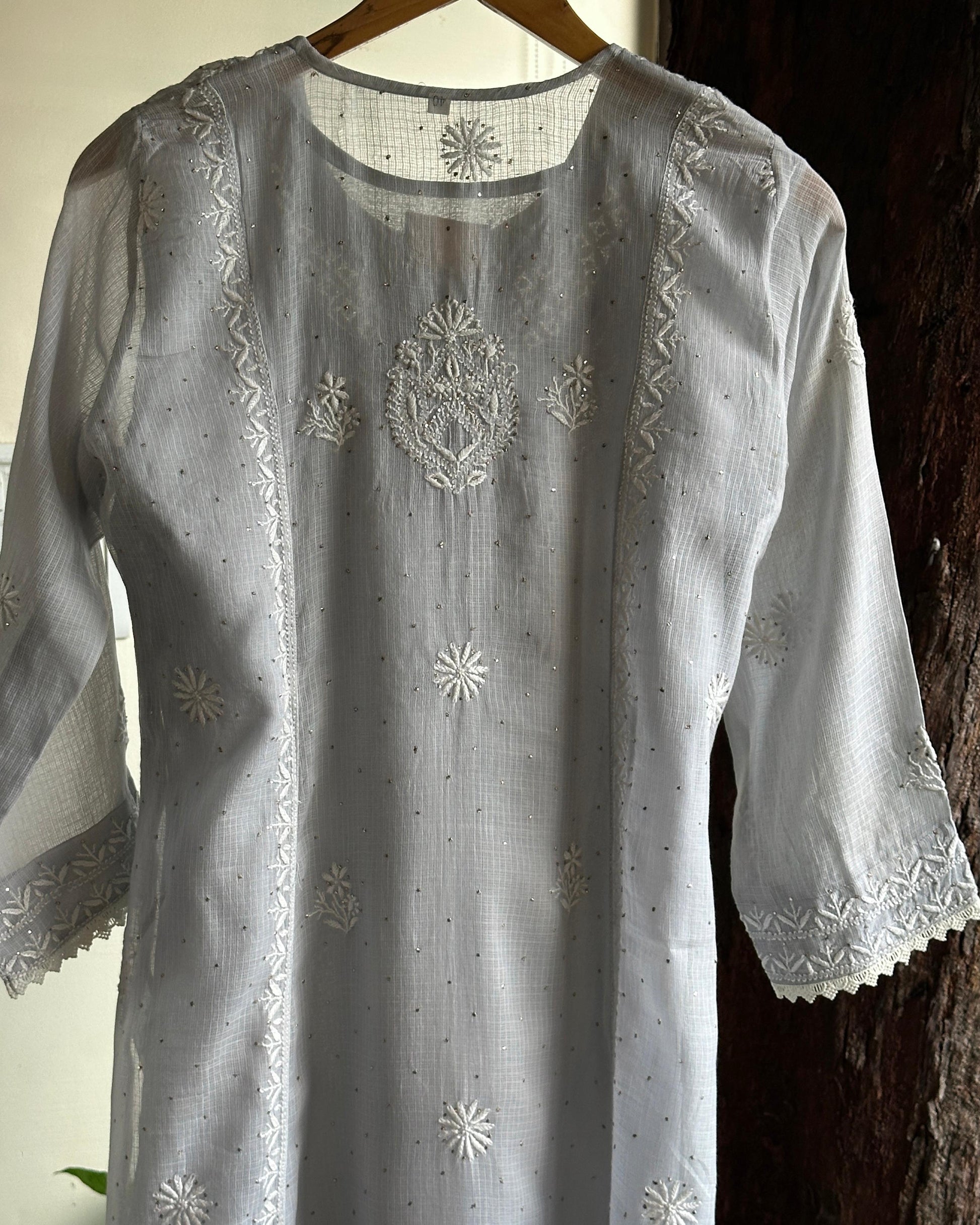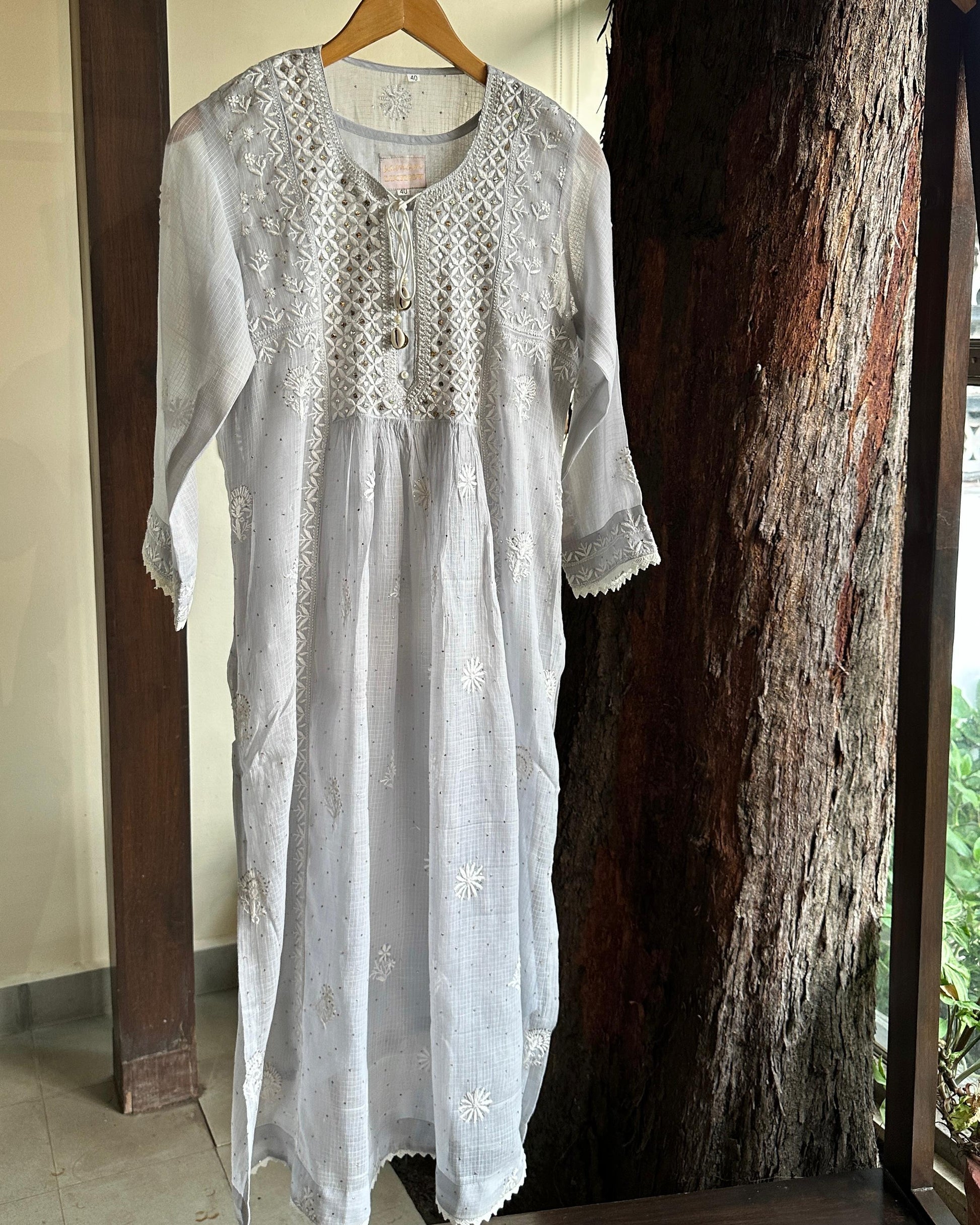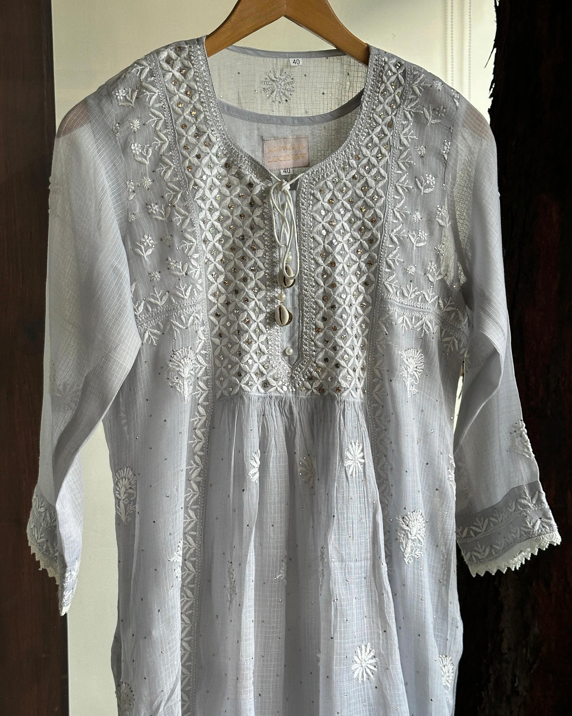 Grey Blue Kota Chikankari with Mukaish Kamdani Tunics